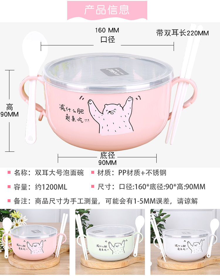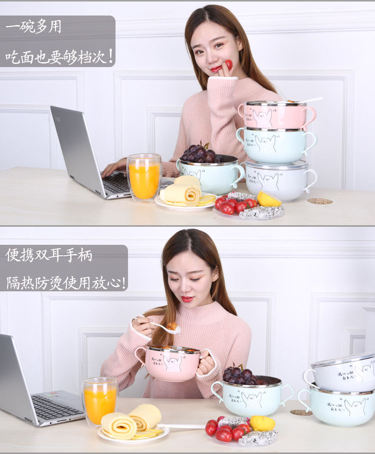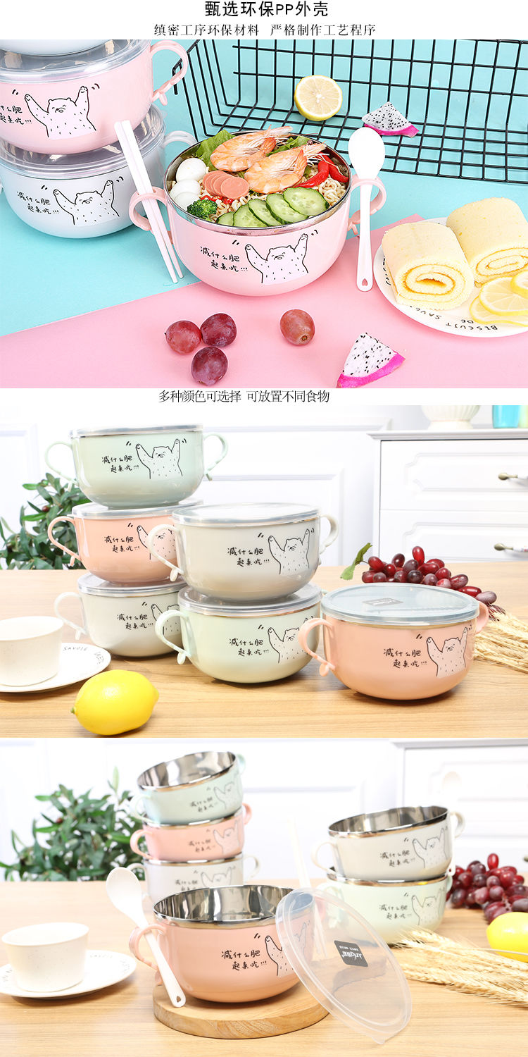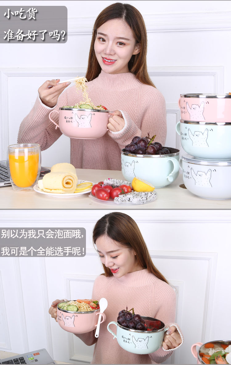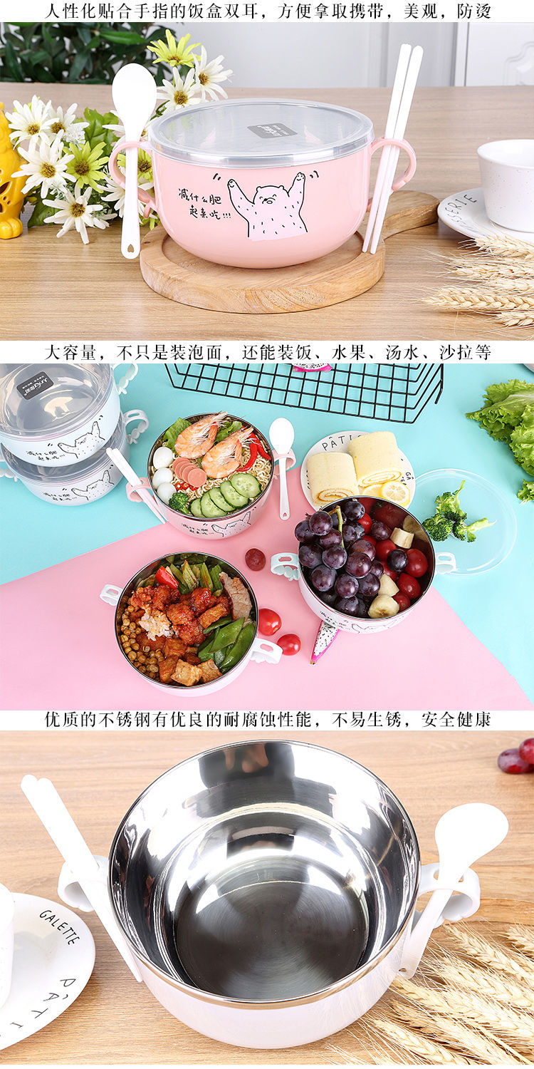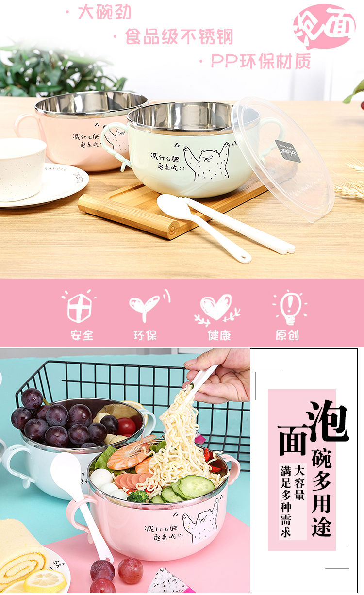 不锈钢泡面碗带盖大号女学生宿舍便当盒子方便面碗防烫汤碗吃饭碗