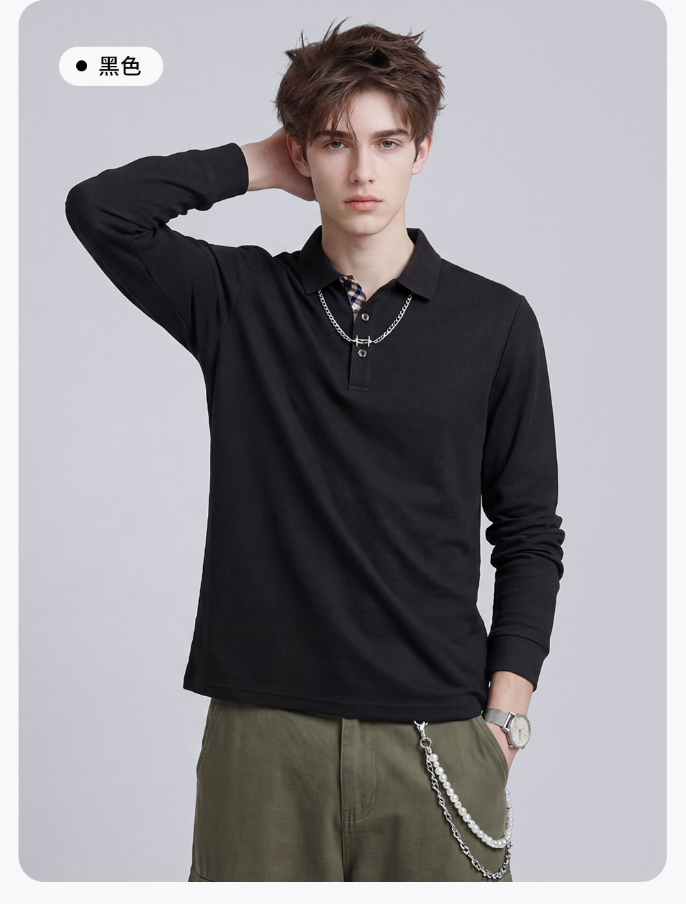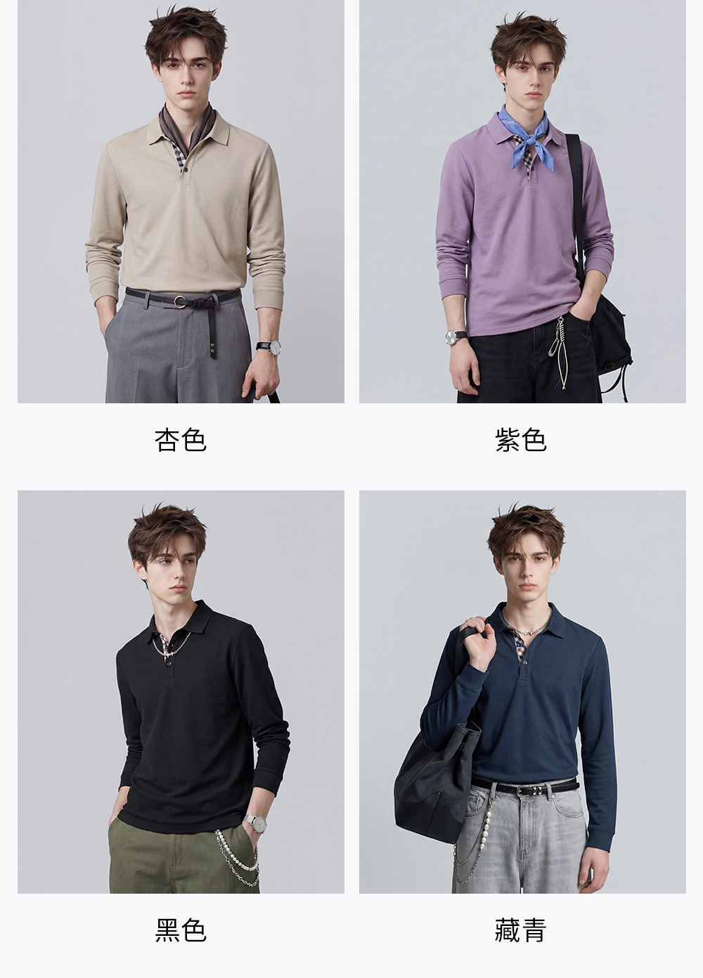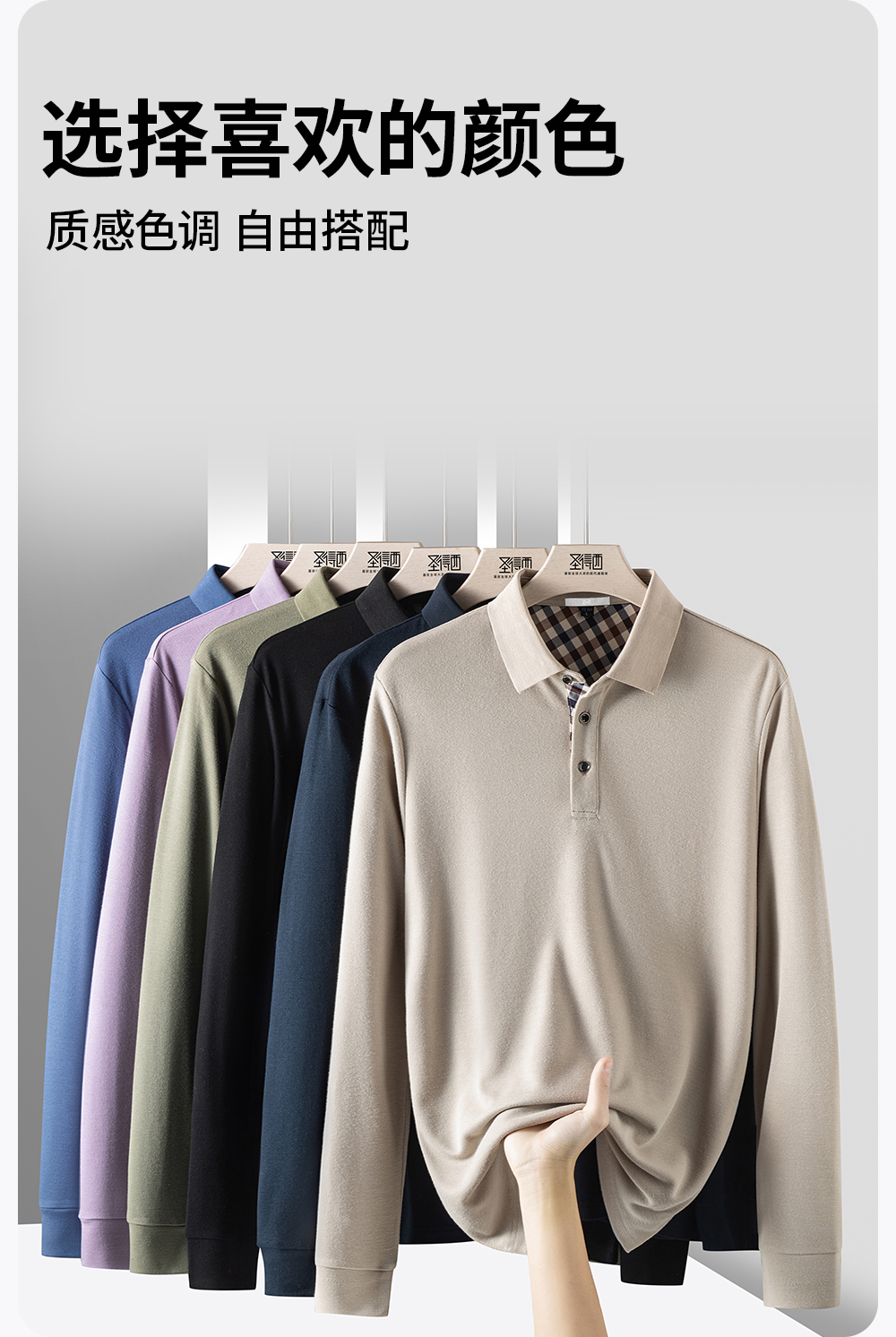 【含桑蚕丝】圣得西男50S纱线针织POLO衫2025秋季款经典翻领上衣