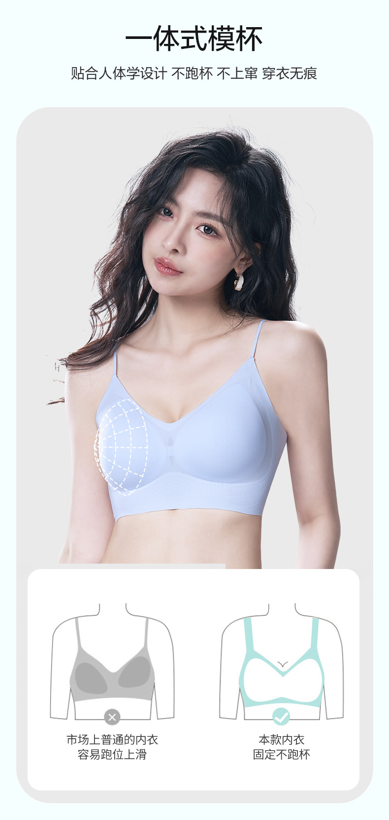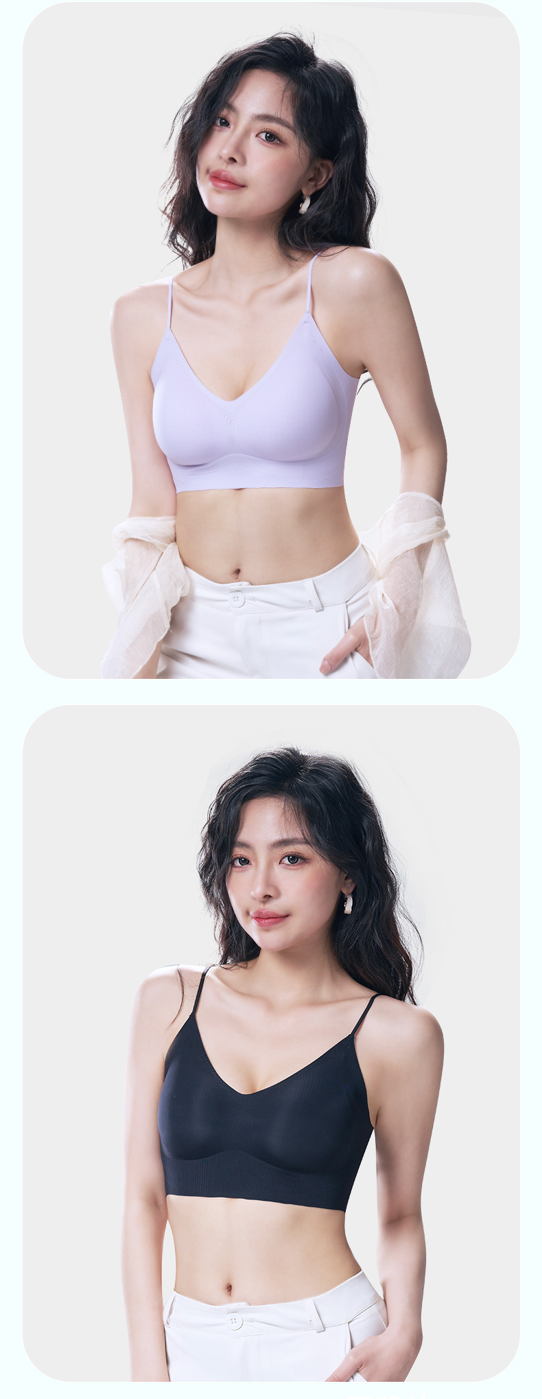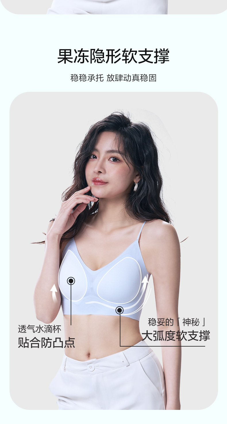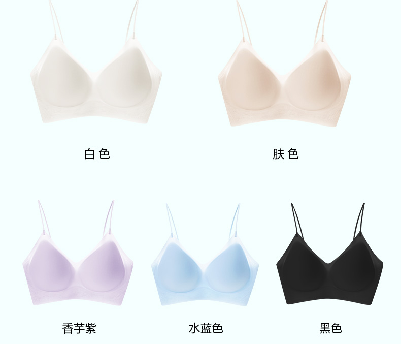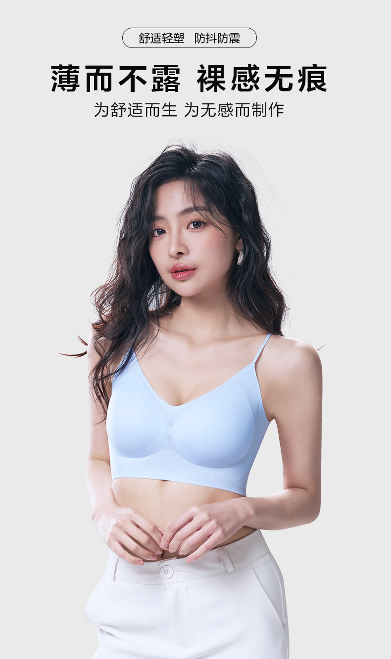 舒适百搭细肩带文胸 12D超薄凉感高弹5A抗菌 可机洗无钢圈固定杯后背一体 吸湿排汗持续干爽 果冻胶自然托胸薄至隐形