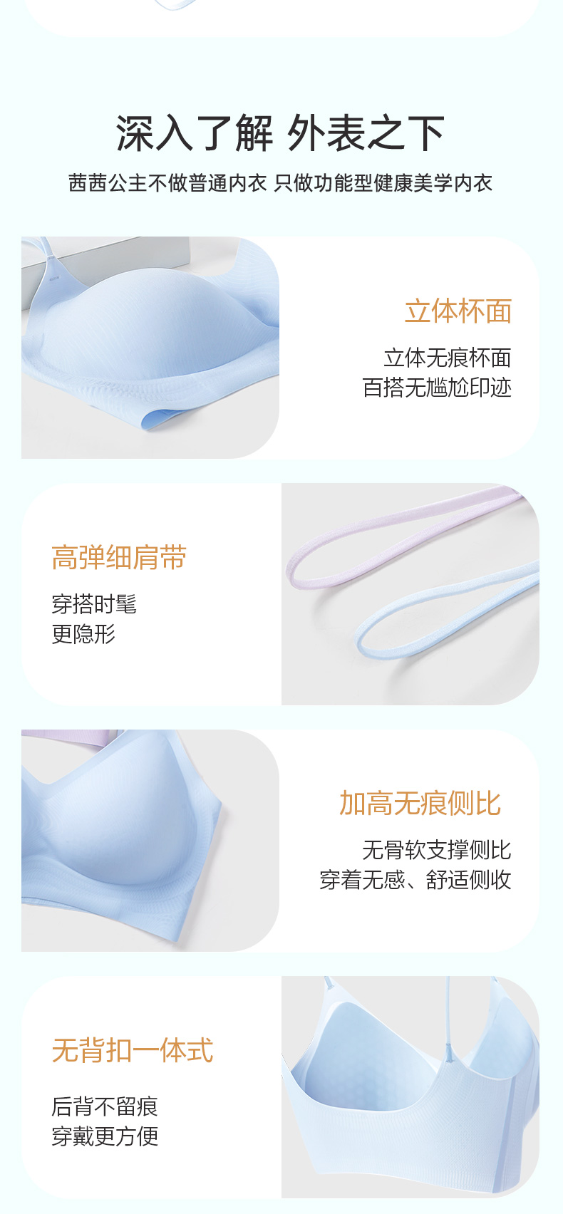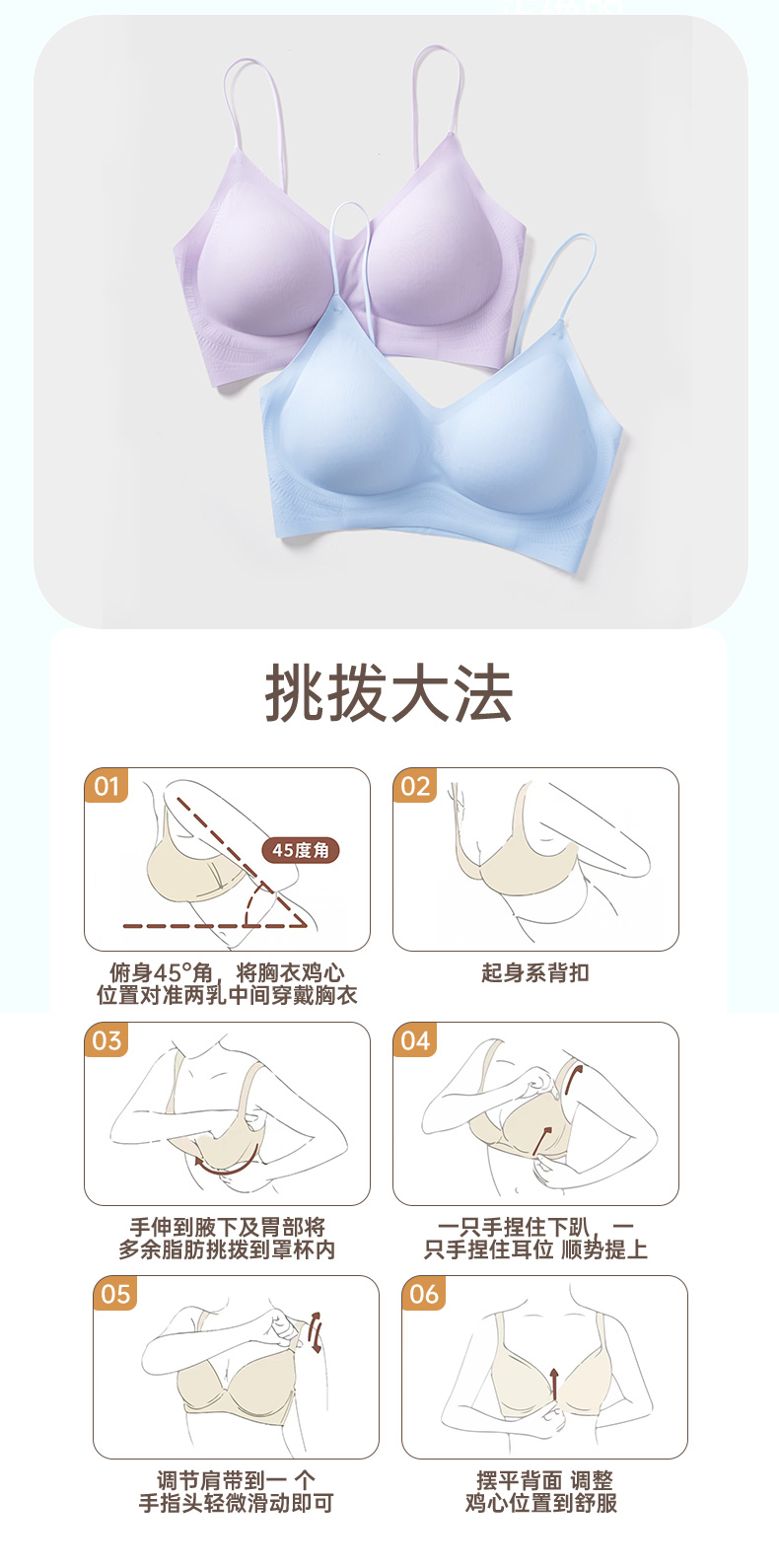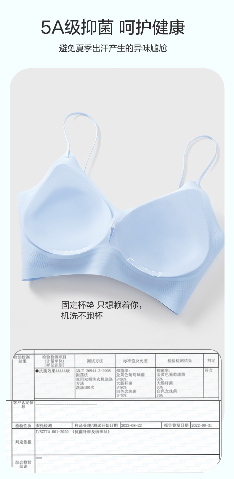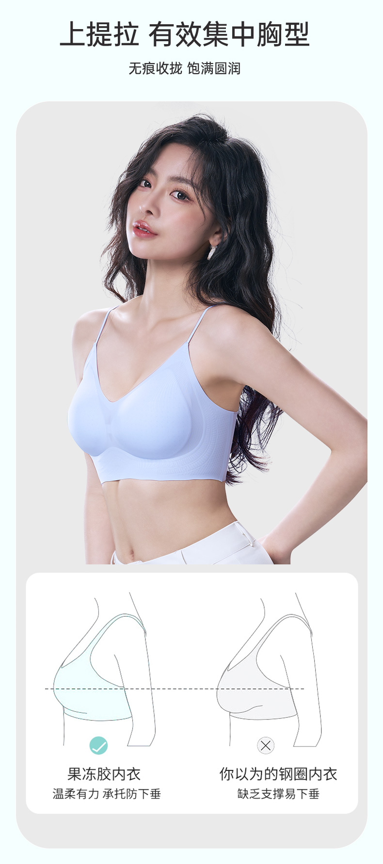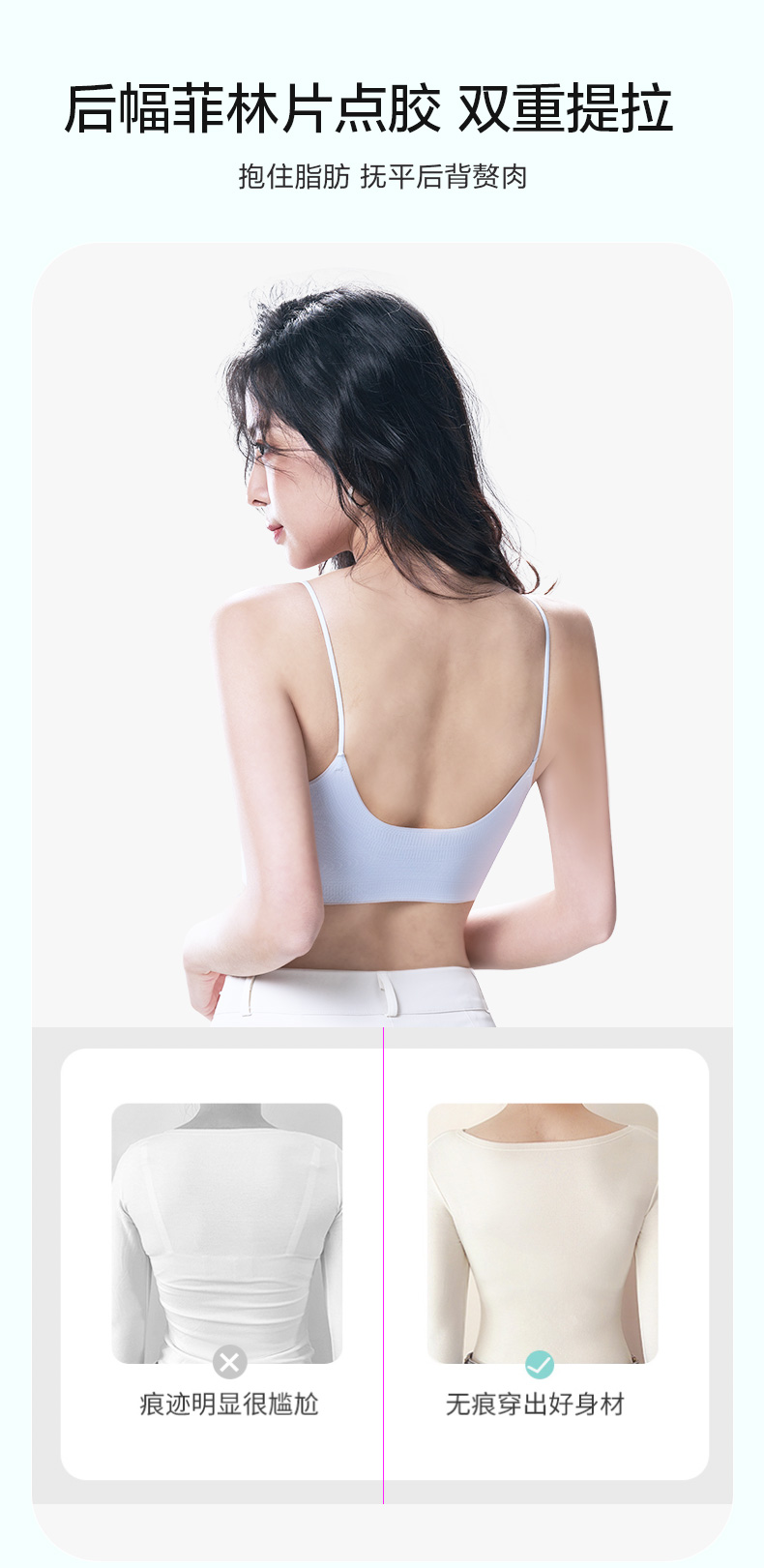 舒适百搭细肩带文胸 12D超薄凉感高弹5A抗菌 可机洗无钢圈固定杯后背一体 吸湿排汗持续干爽 果冻胶自然托胸薄至隐形