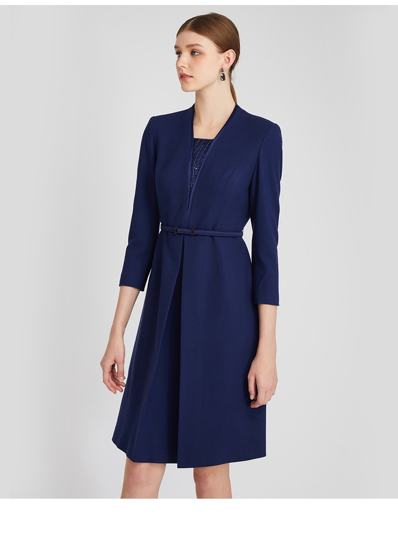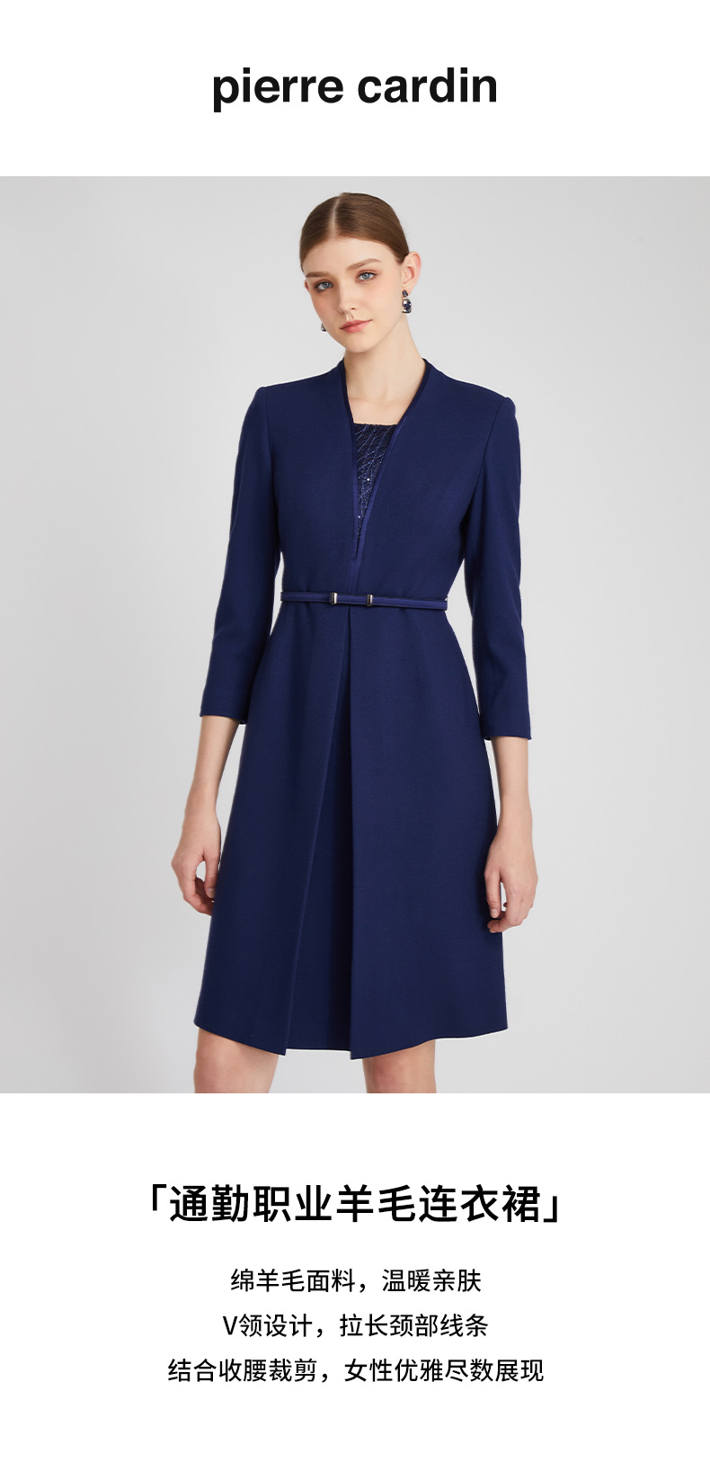 皮尔卡丹女装连衣裙春秋假两件通勤职业羊毛A字裙P2318E2845L2