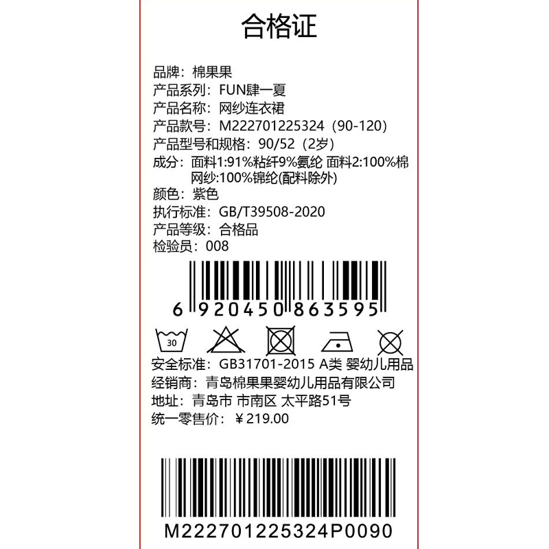 棉果果夏季商场专柜同款女童网纱连衣裙M222701225324