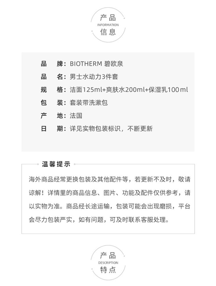碧欧泉男士水动力套装 洗面奶爽肤水乳液 三件套 清爽补水 男士套装【CDF】