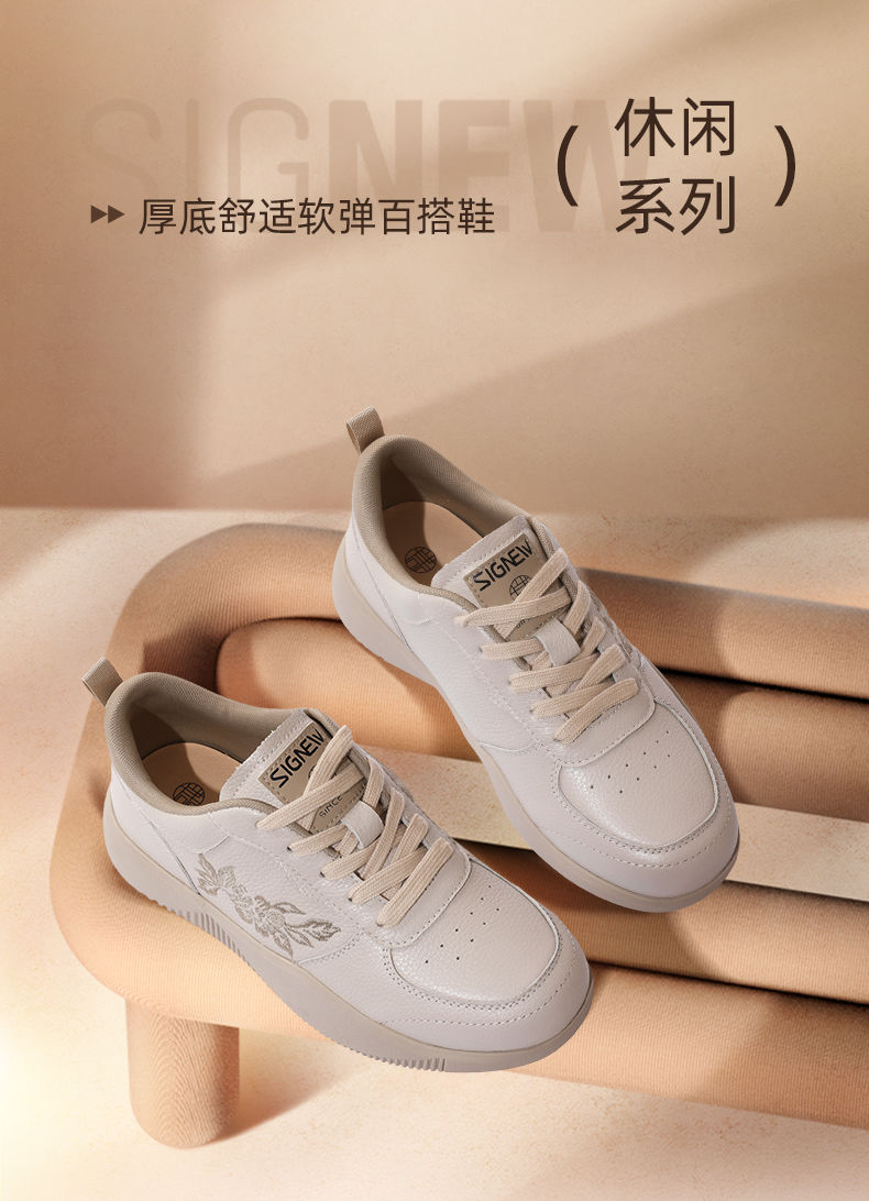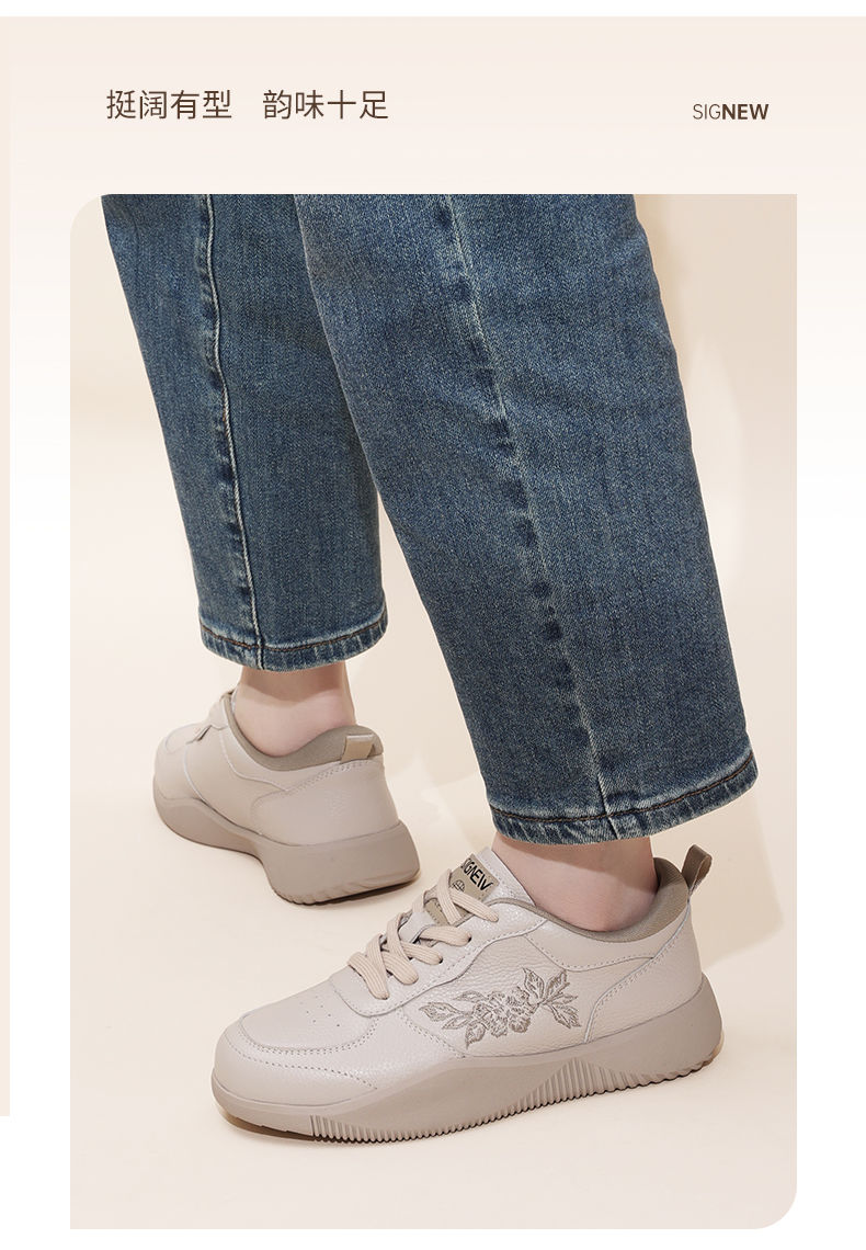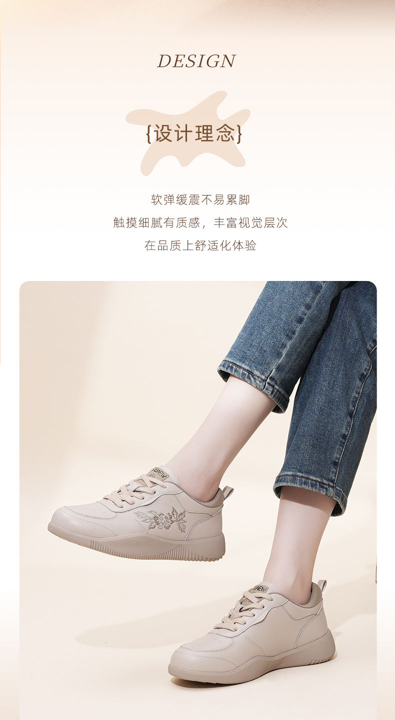 信诺真皮舒适女鞋2024新款秋季百搭软底运动中老年妈妈鞋旅游皮鞋Q5706-1