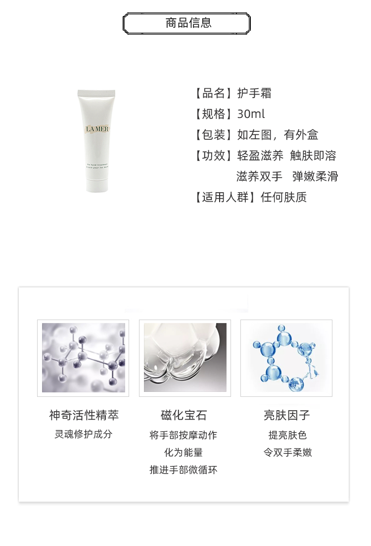 【专柜小样】法国 LA MER海蓝之谜 修护手霜 30ml