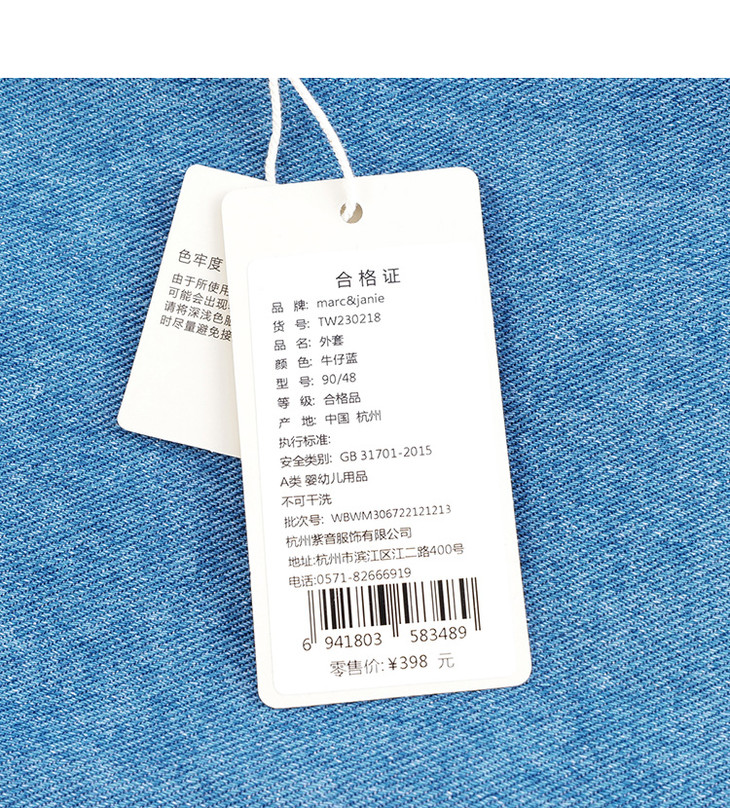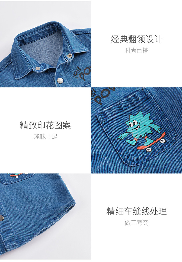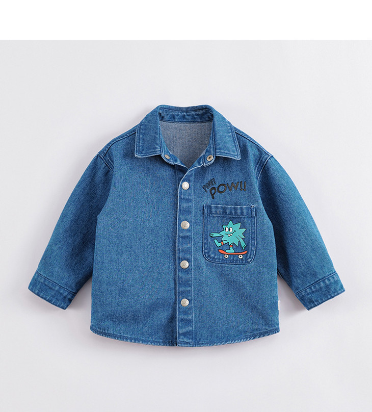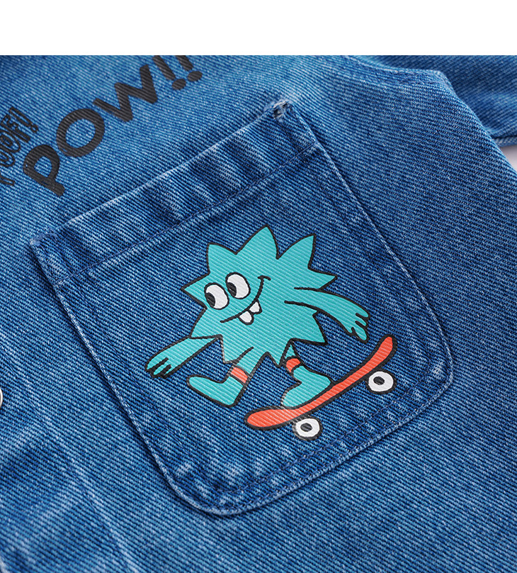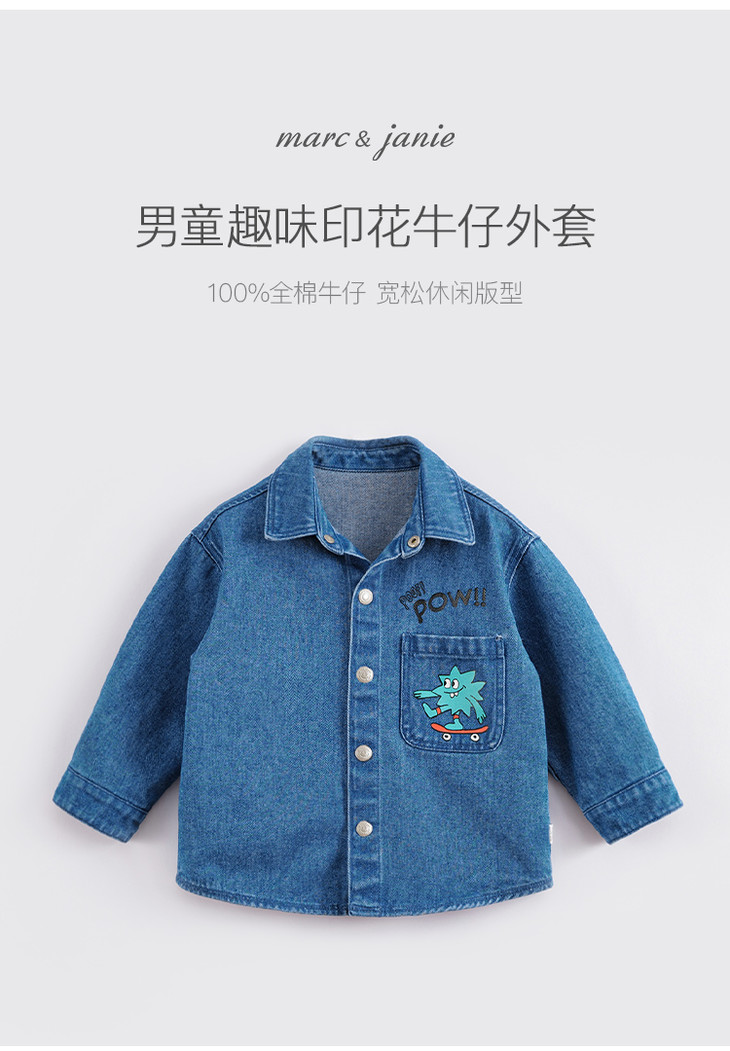马克珍妮春装新款 男童口袋印花全棉牛仔外套230218