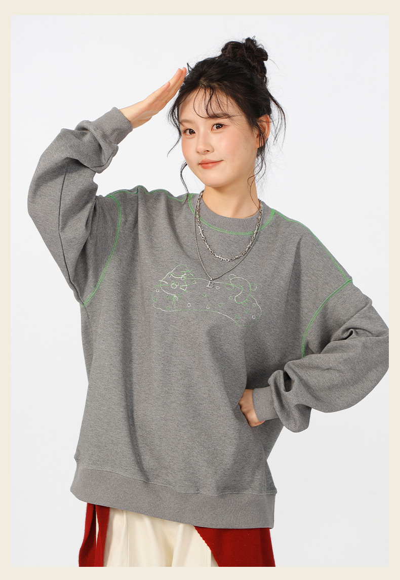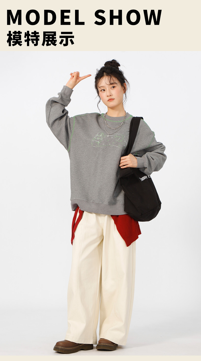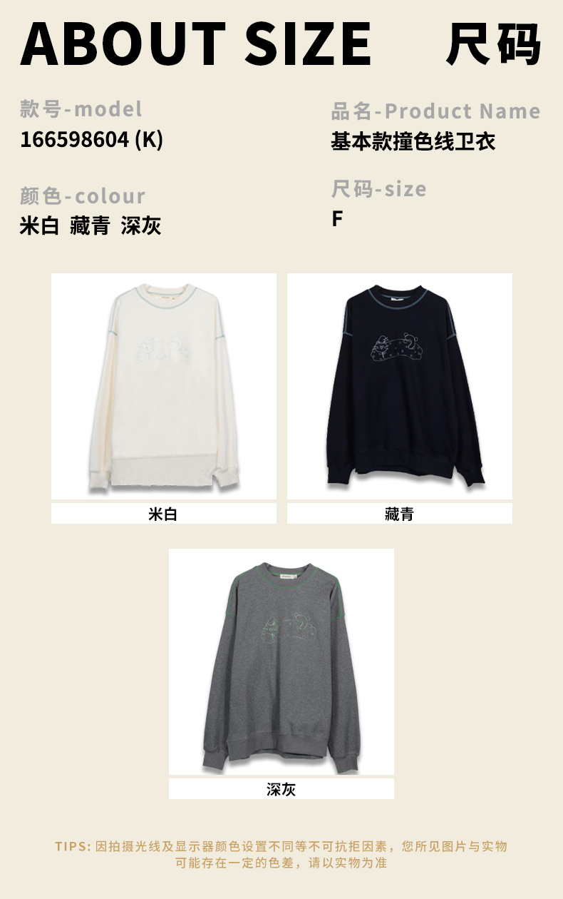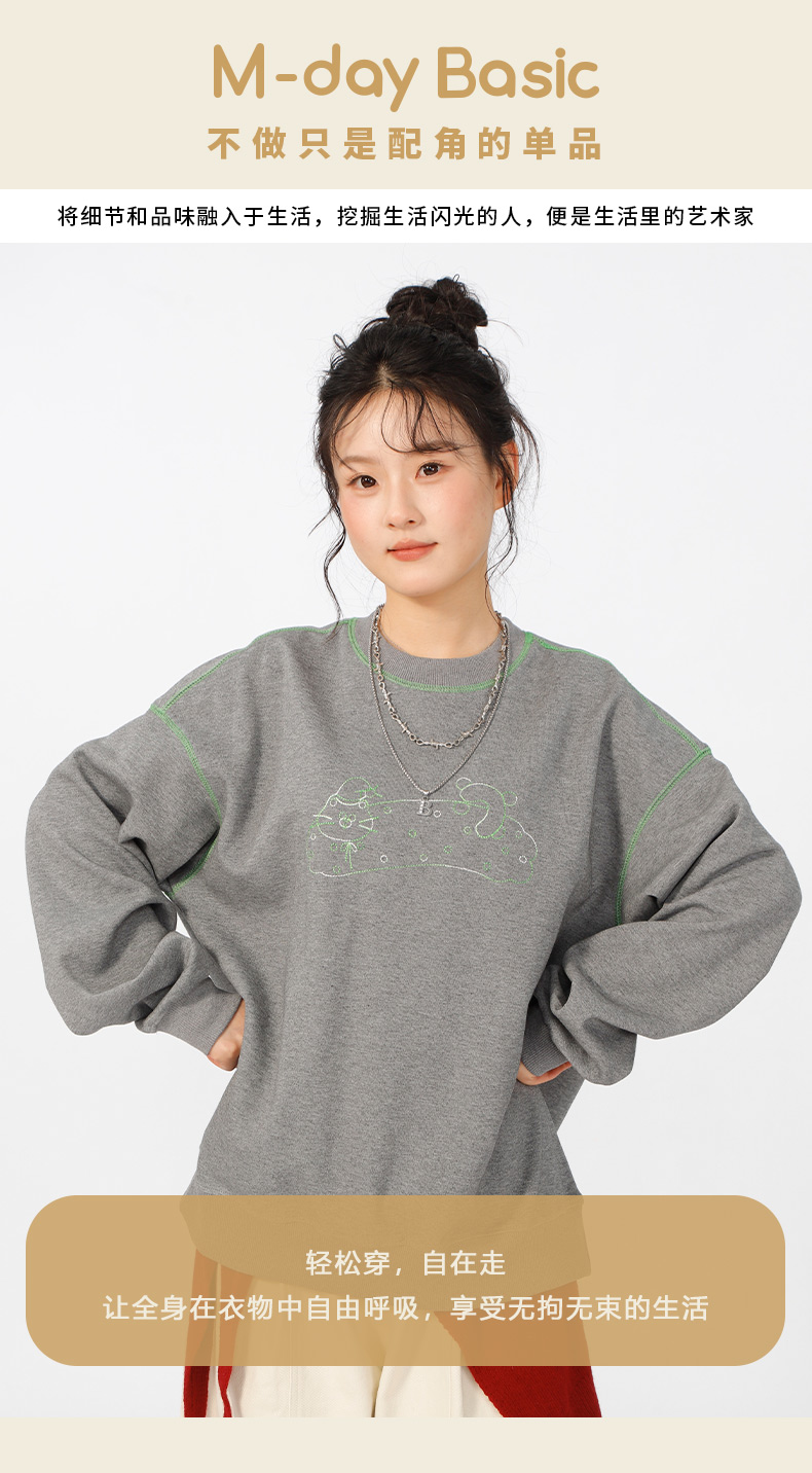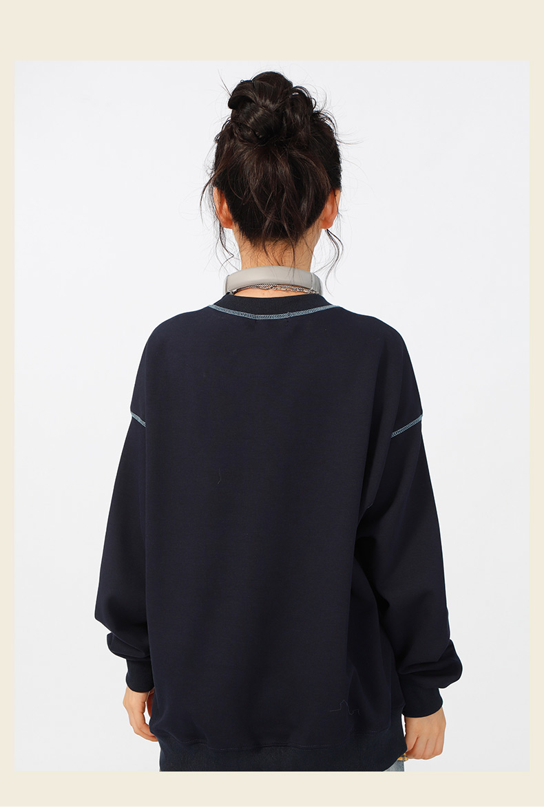 宽松落肩休闲圆领撞色线卫衣-纪念日百货门店同款166598604