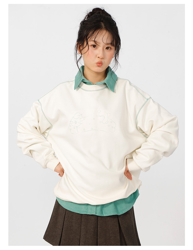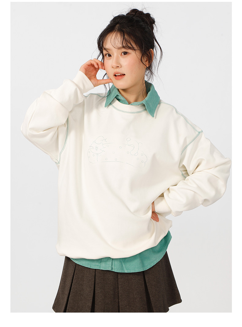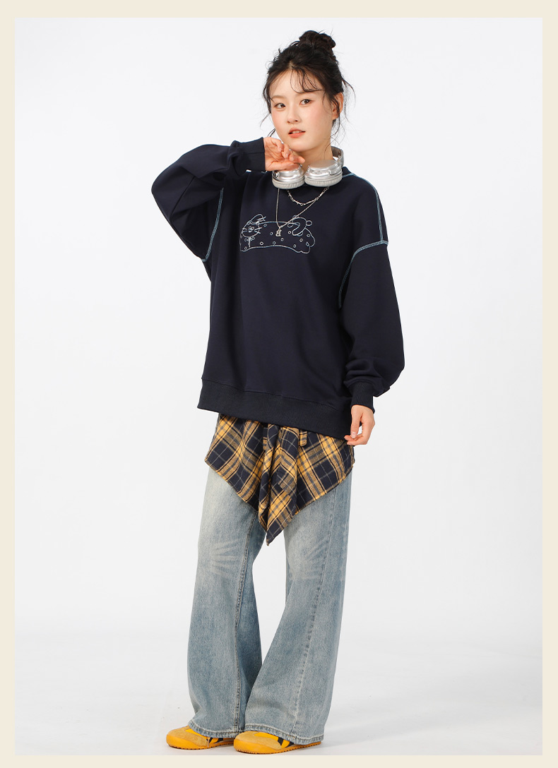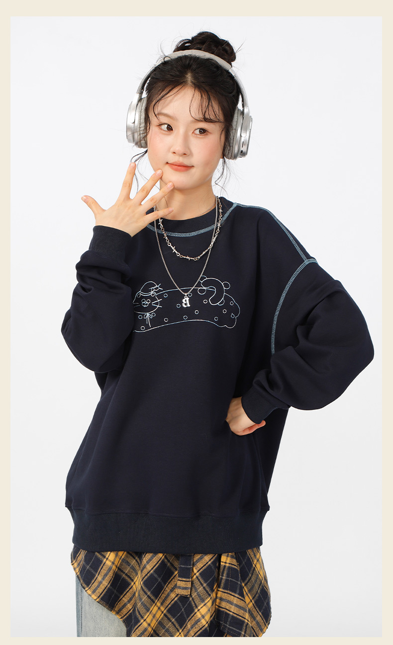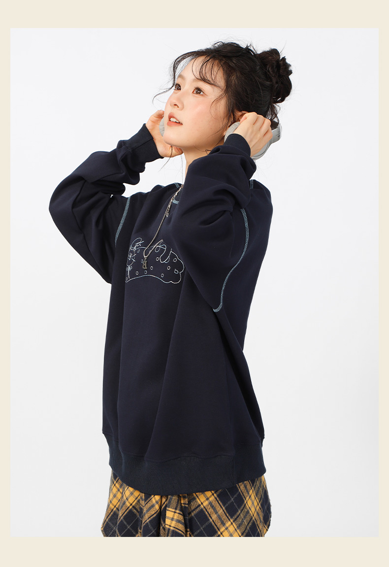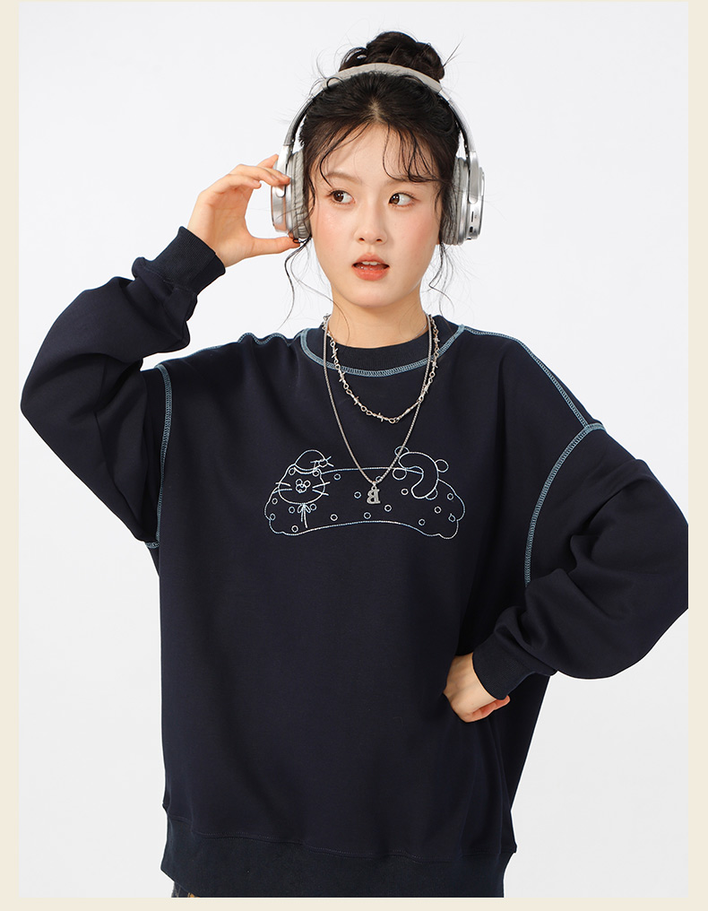宽松落肩休闲圆领撞色线卫衣-纪念日百货门店同款166598604