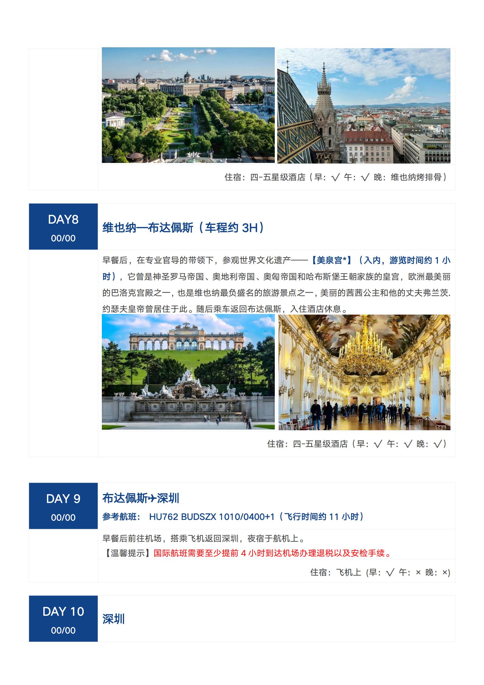 【五一、暑假、国庆】<东欧:匈牙利+奥地利+捷克+斯洛伐克10天经典之旅-深圳直飞往返> 签证小费全含、升级2晚五星酒店+1晚湖区特色酒店