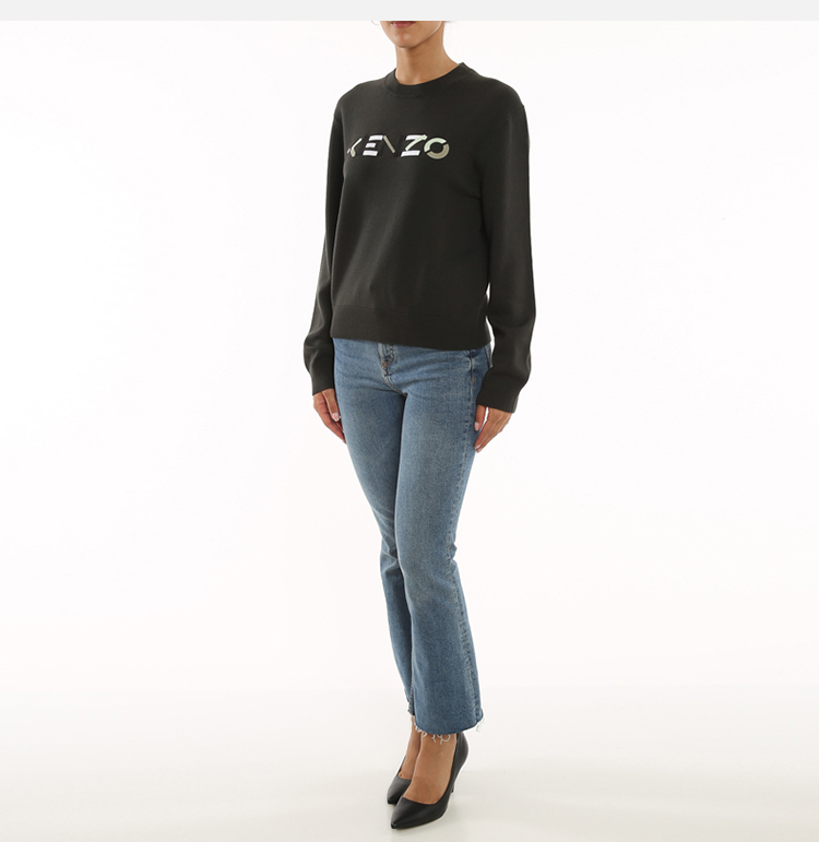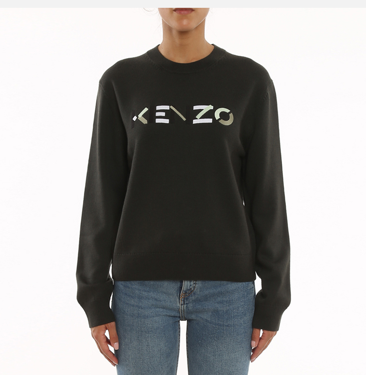 KENZO 高田贤三 女士字母徽标提花羊毛长袖针织衫 灰色 FB62 PU639 3LA 97