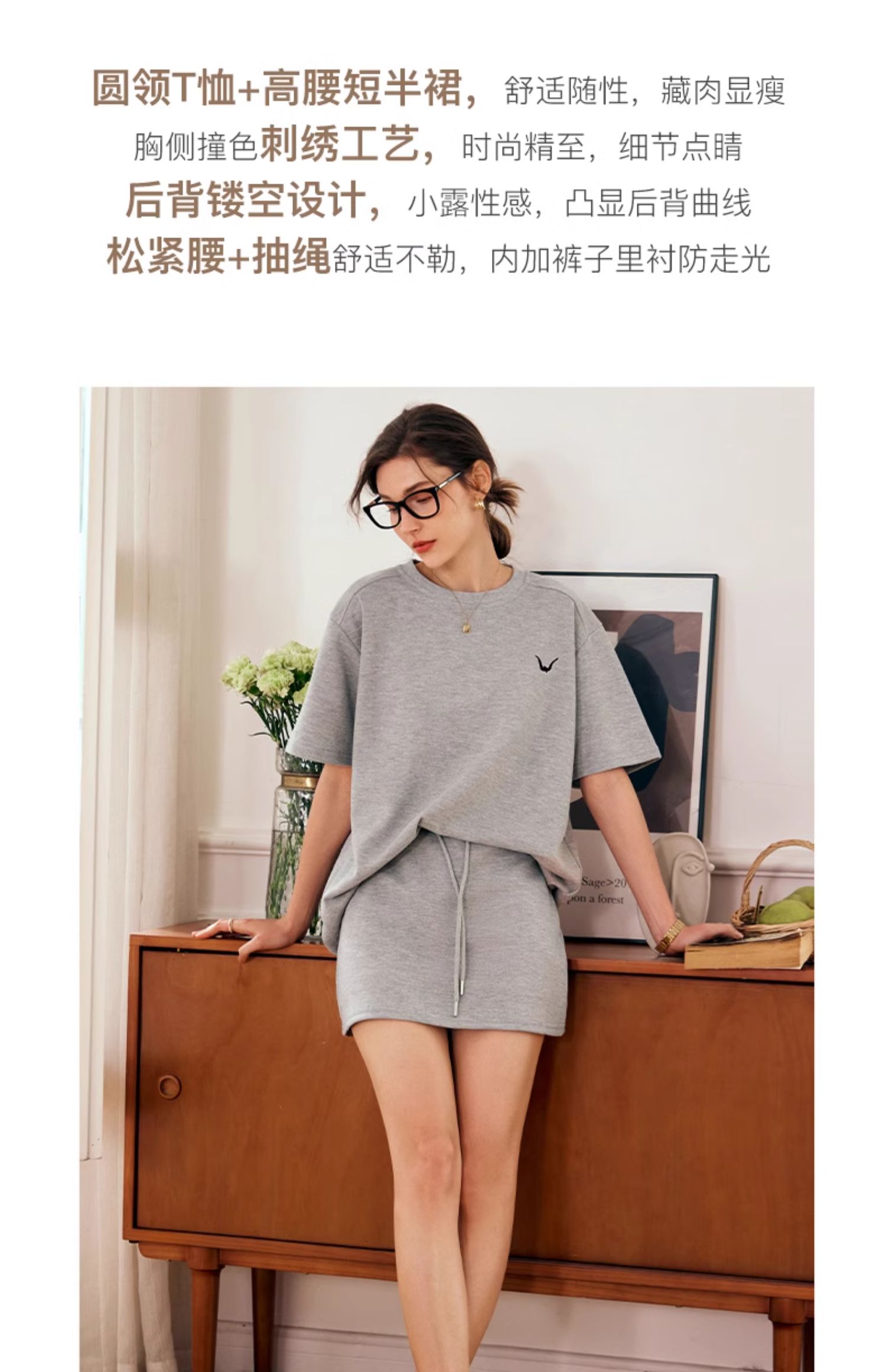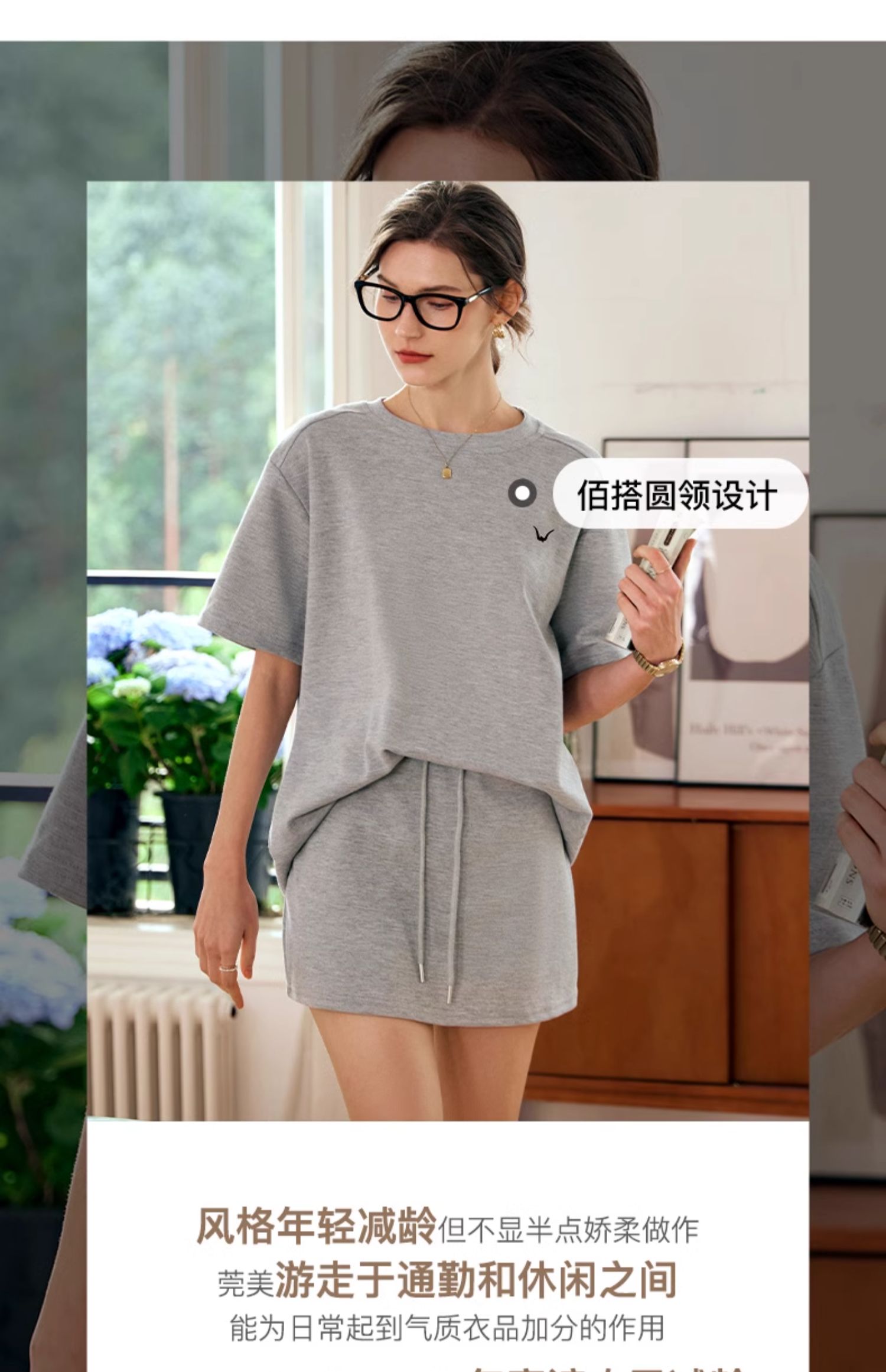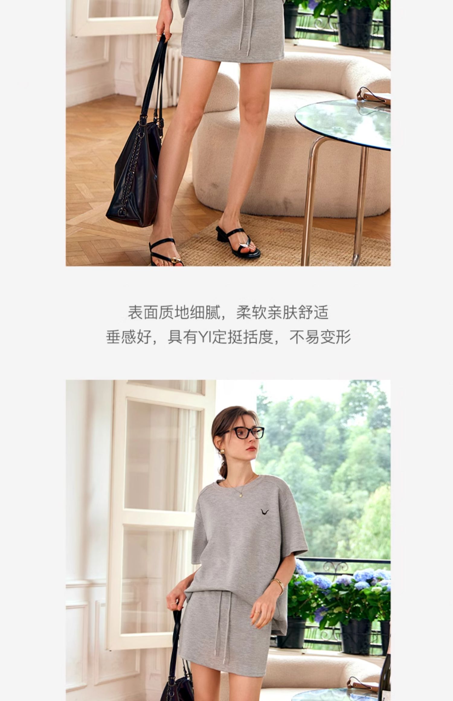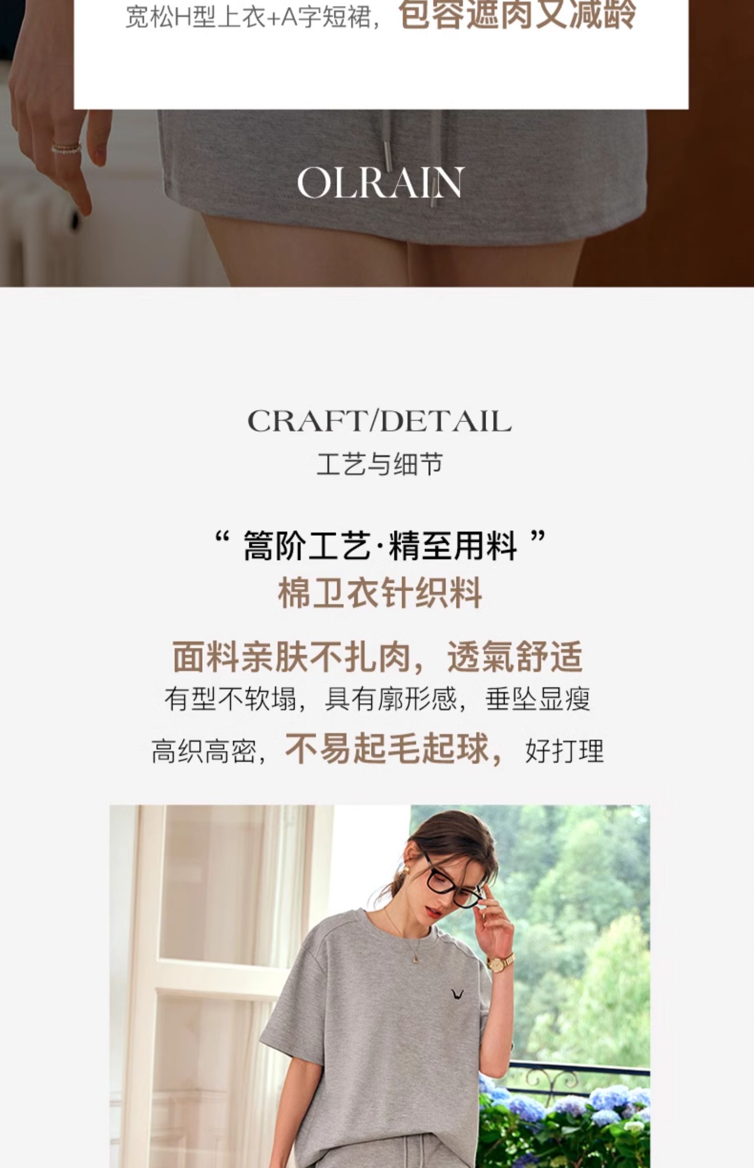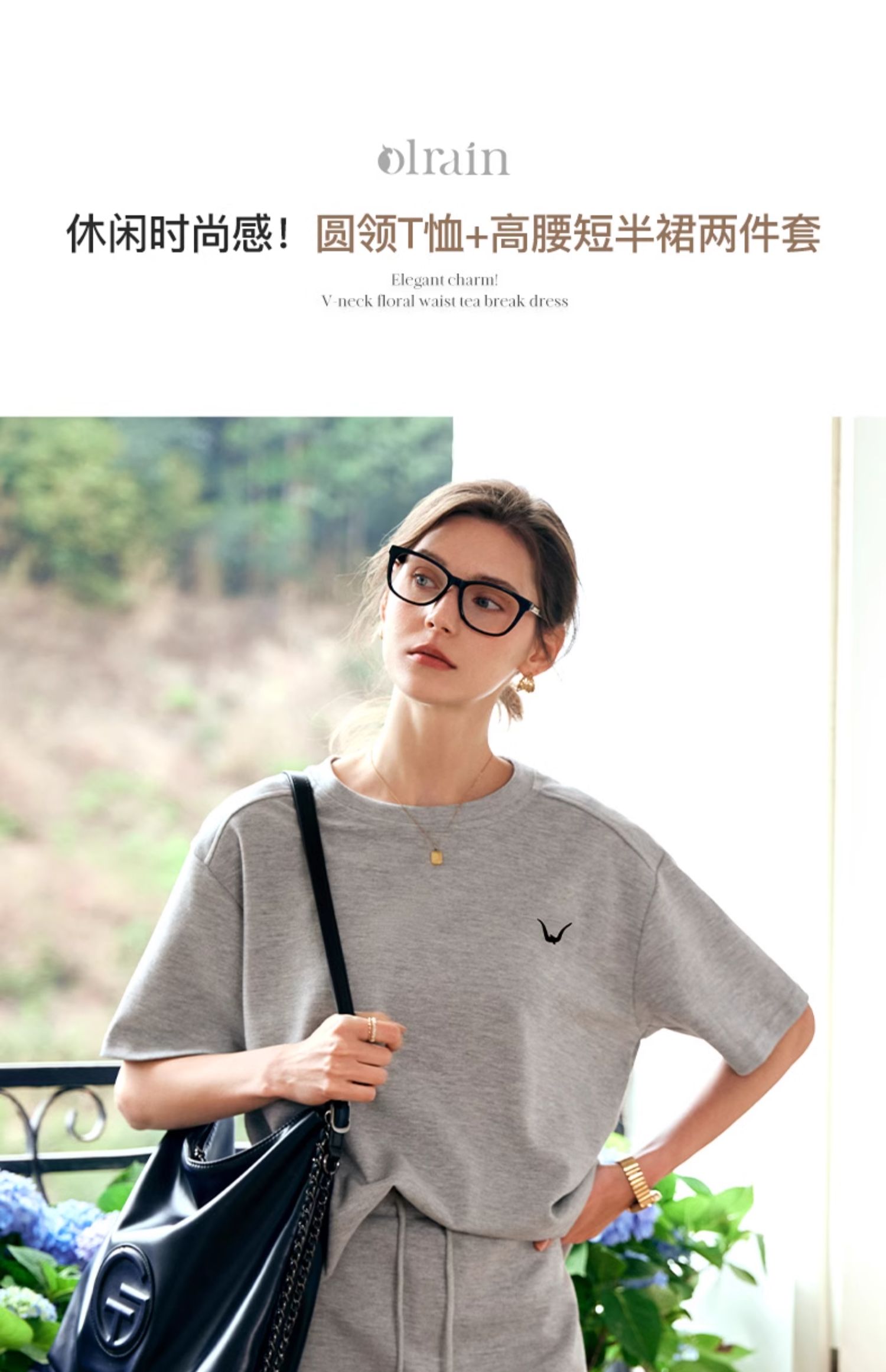 OLrain欧芮儿灰色时尚套装女春季2024年新款圆领T恤半身裙两件套