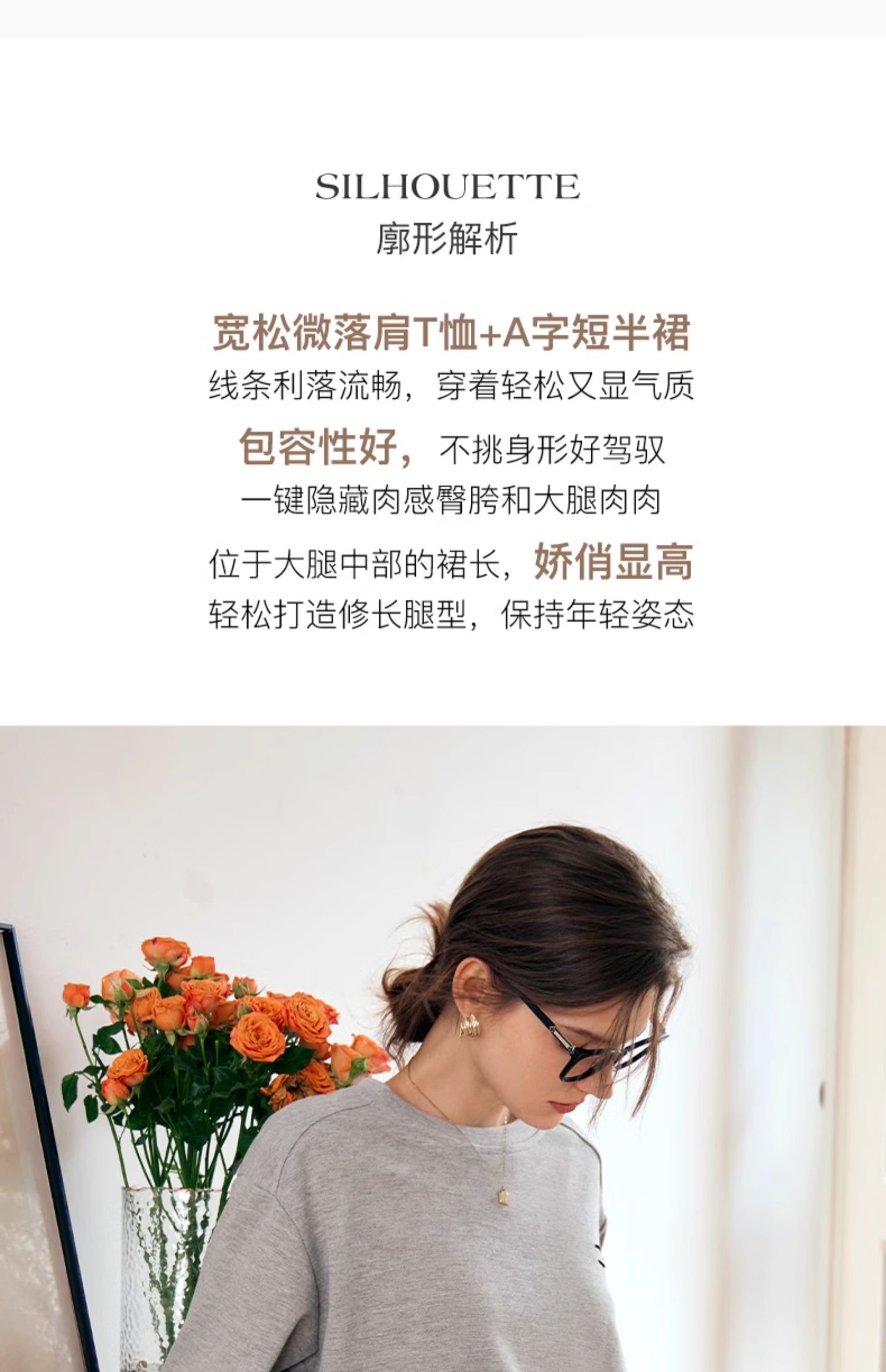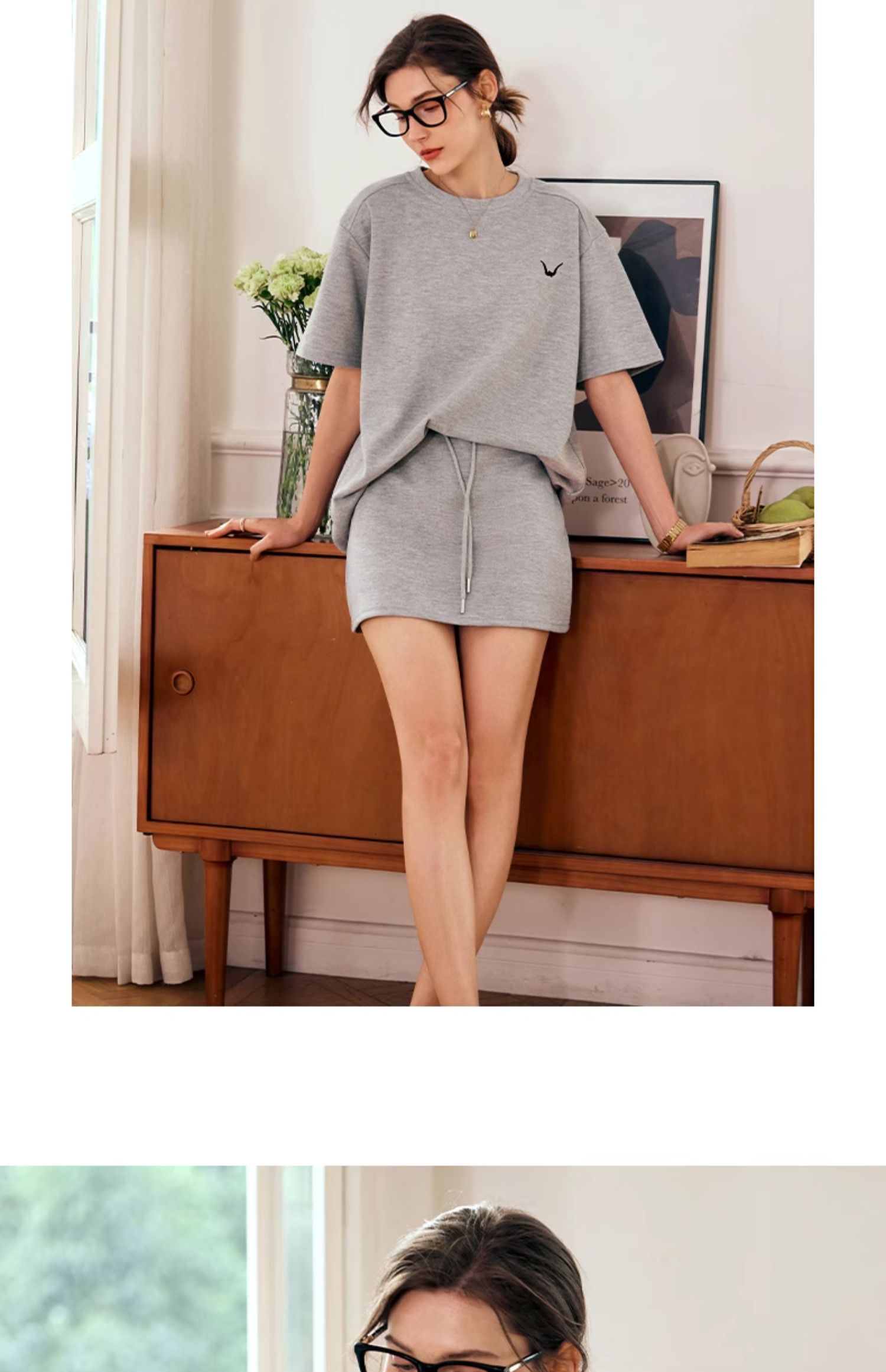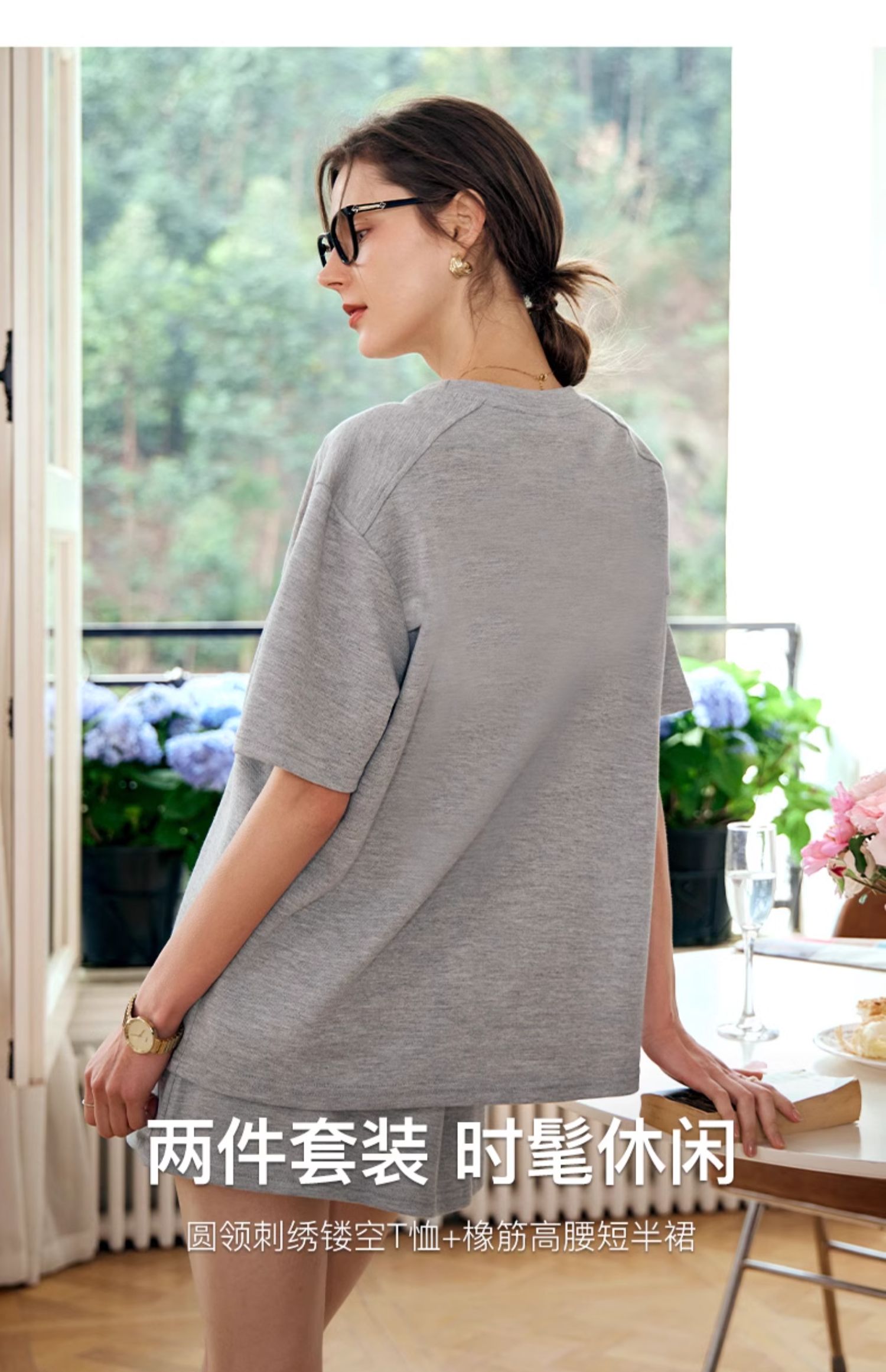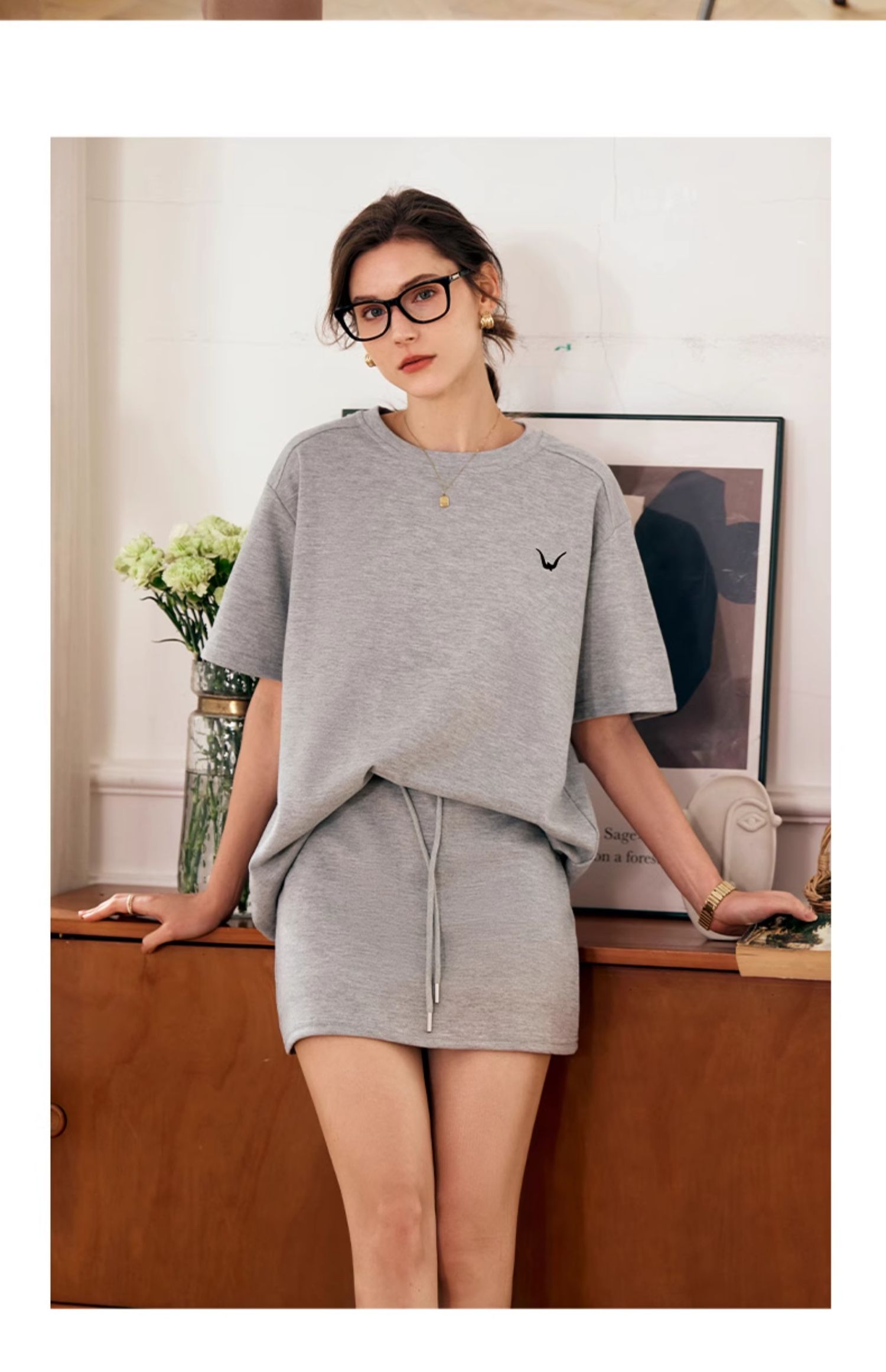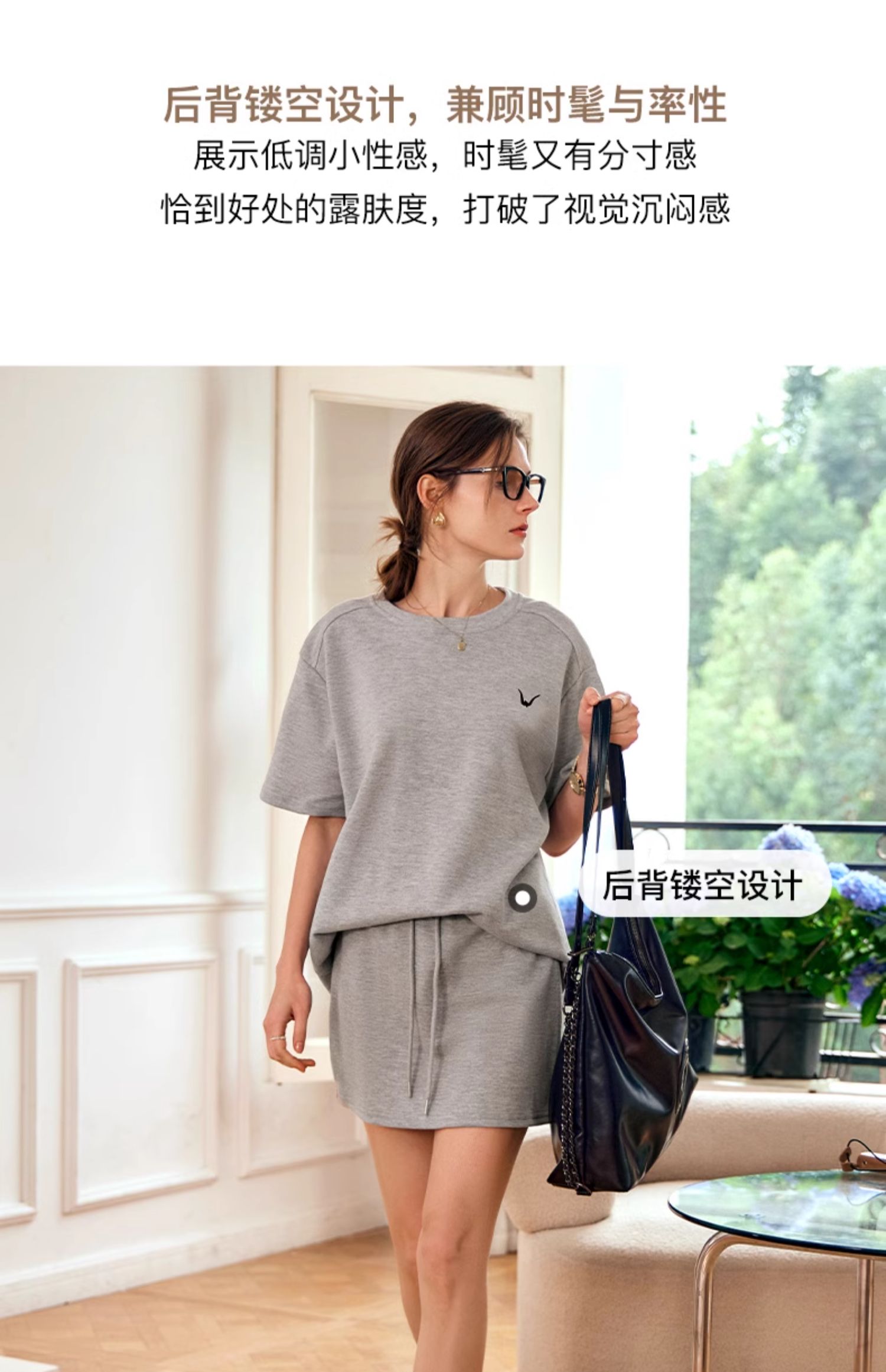 OLrain欧芮儿灰色时尚套装女春季2024年新款圆领T恤半身裙两件套