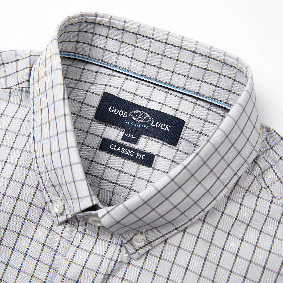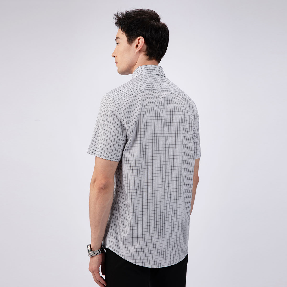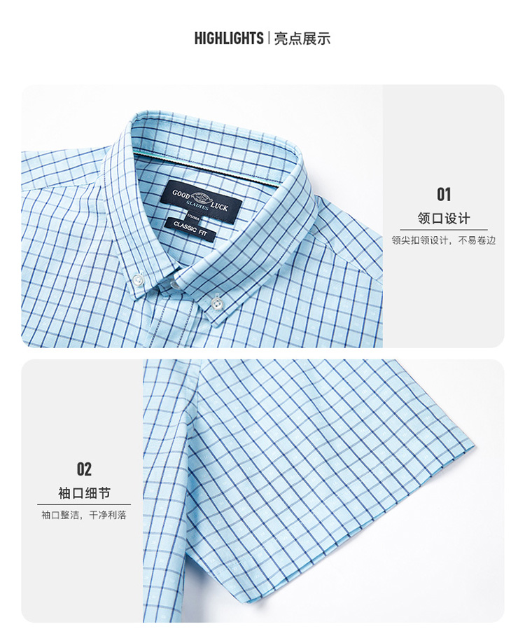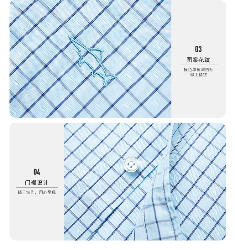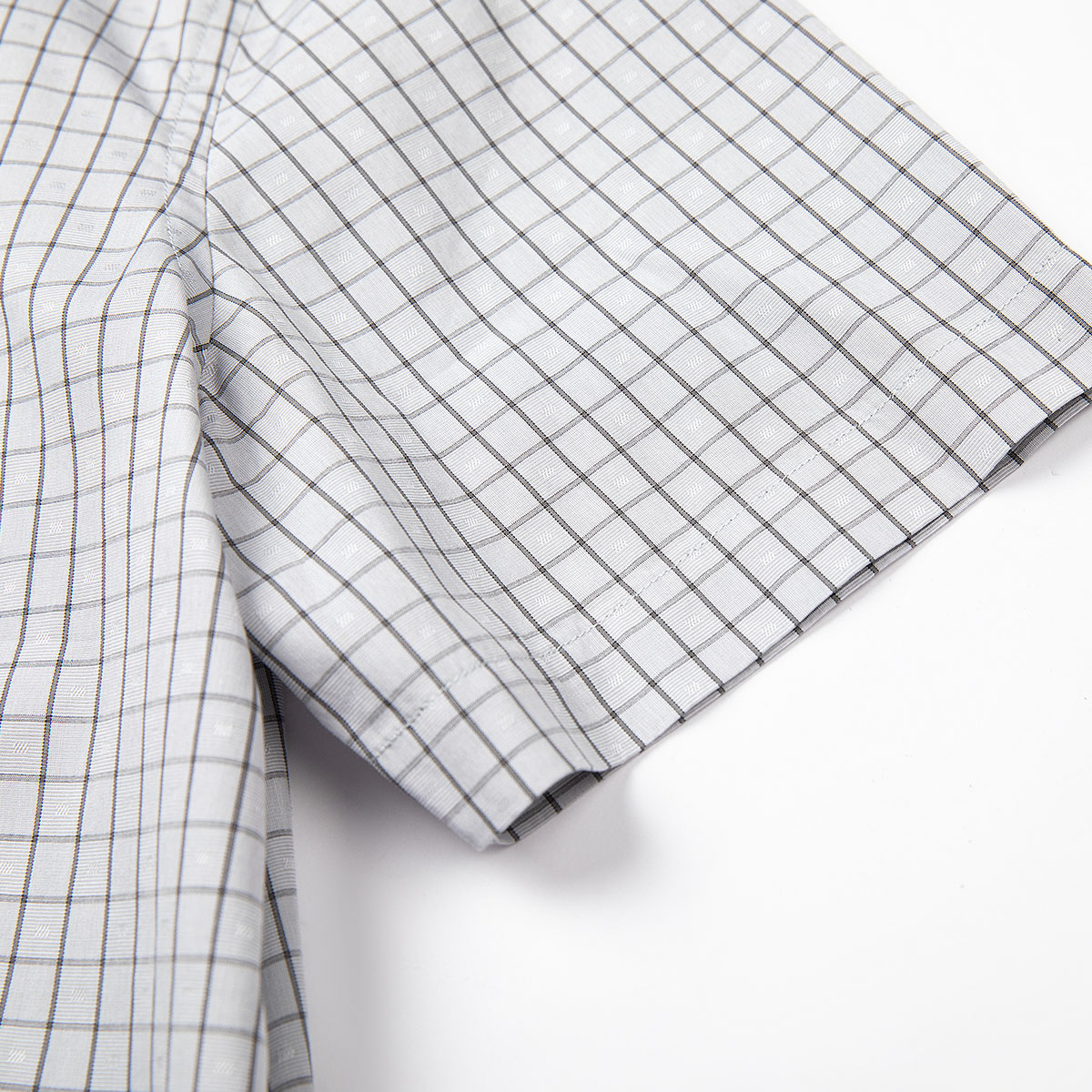 德鲨夏季纯棉短袖格子衬衫男青年时尚全棉衬衣男上衣LY21412