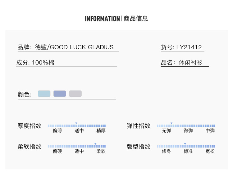 - GOOD LUCK GLADIUS品牌由“浙江德鲨服饰有限公司”引进中国市场,经过多年发展,凭借完善的终端形象,规范化的销售管理,迅速赢得消费者的认可,引领国内消费流行,是成功人士首选男装品牌。