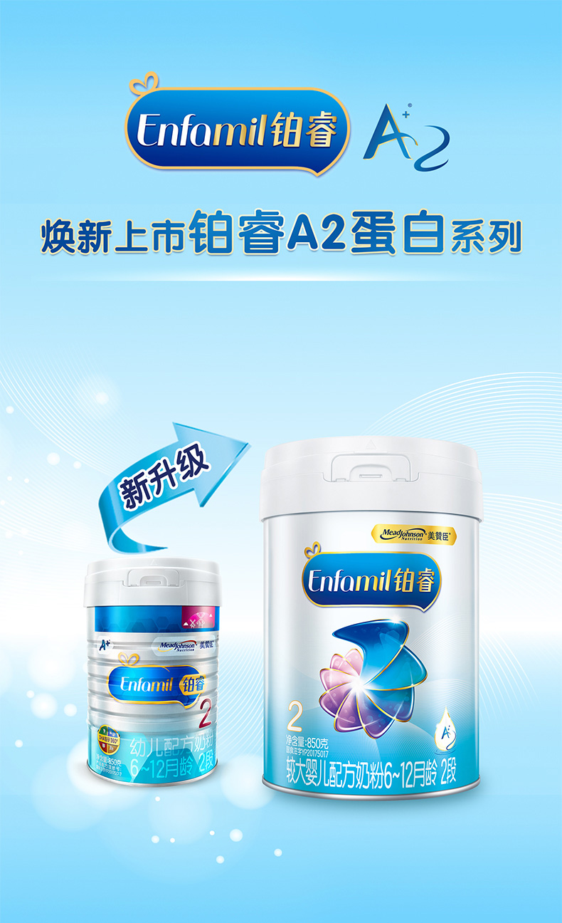 美赞臣铂睿A2蛋白2段奶粉850g一箱6桶