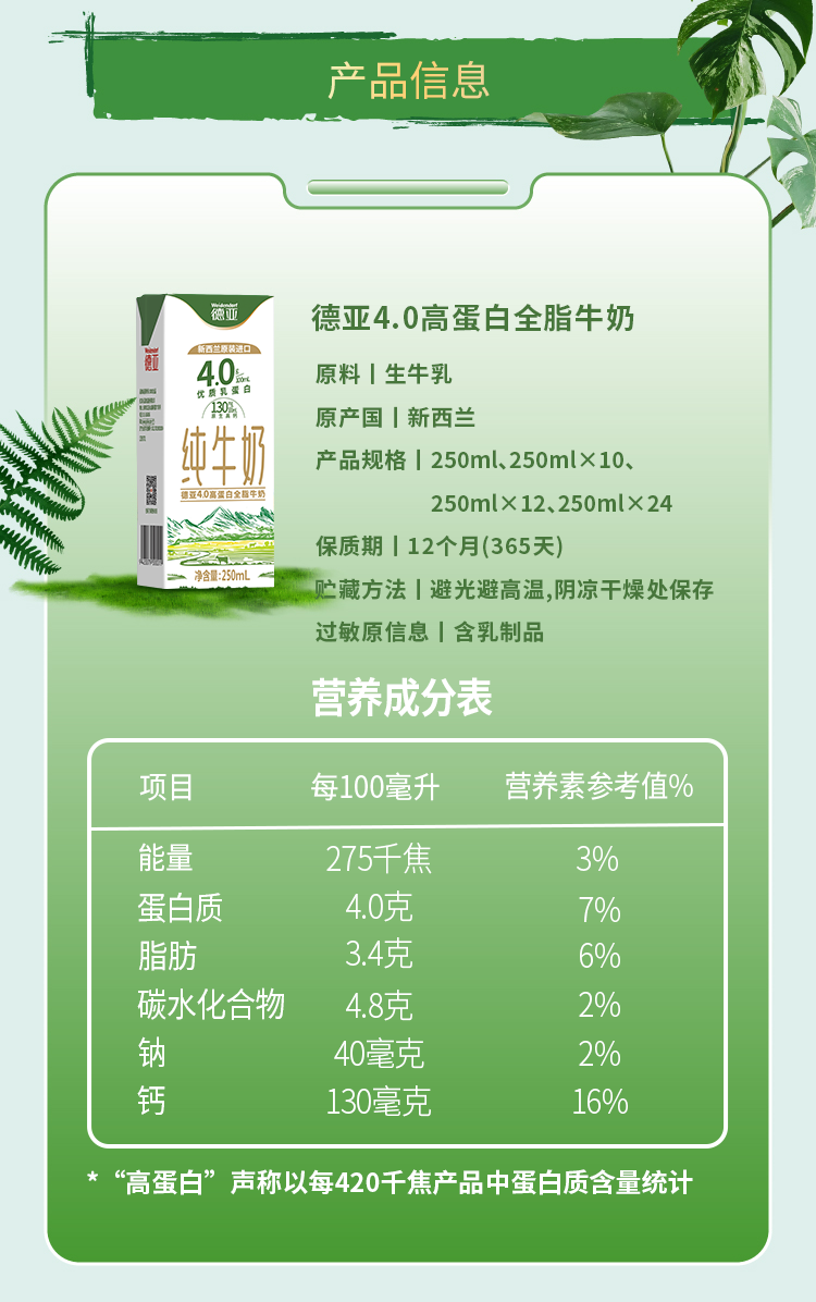 德亚4.0g 新西兰进口高蛋白全脂纯牛奶250ml*10礼盒(梦想星空版)