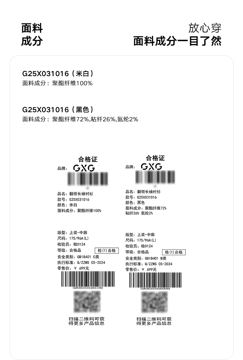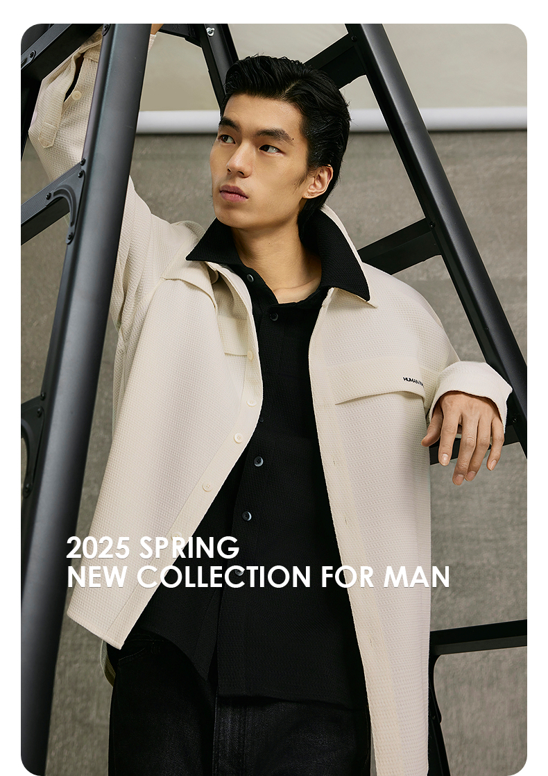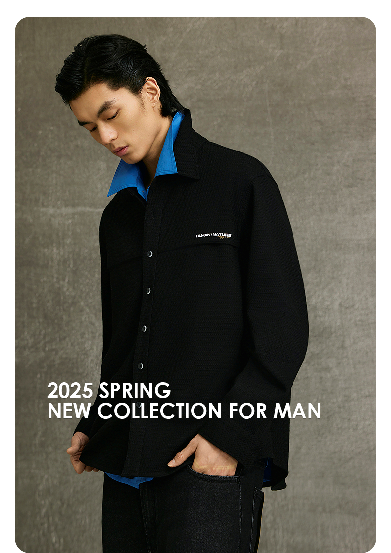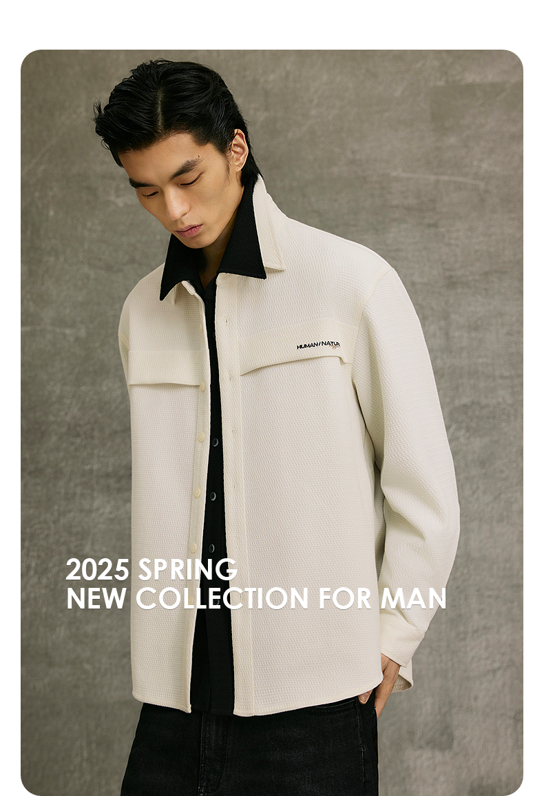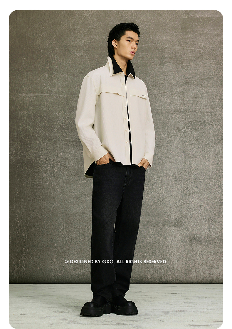 GXG男装 多色肌理感基础时尚翻领长袖衬衫25年春季热卖G25X031016