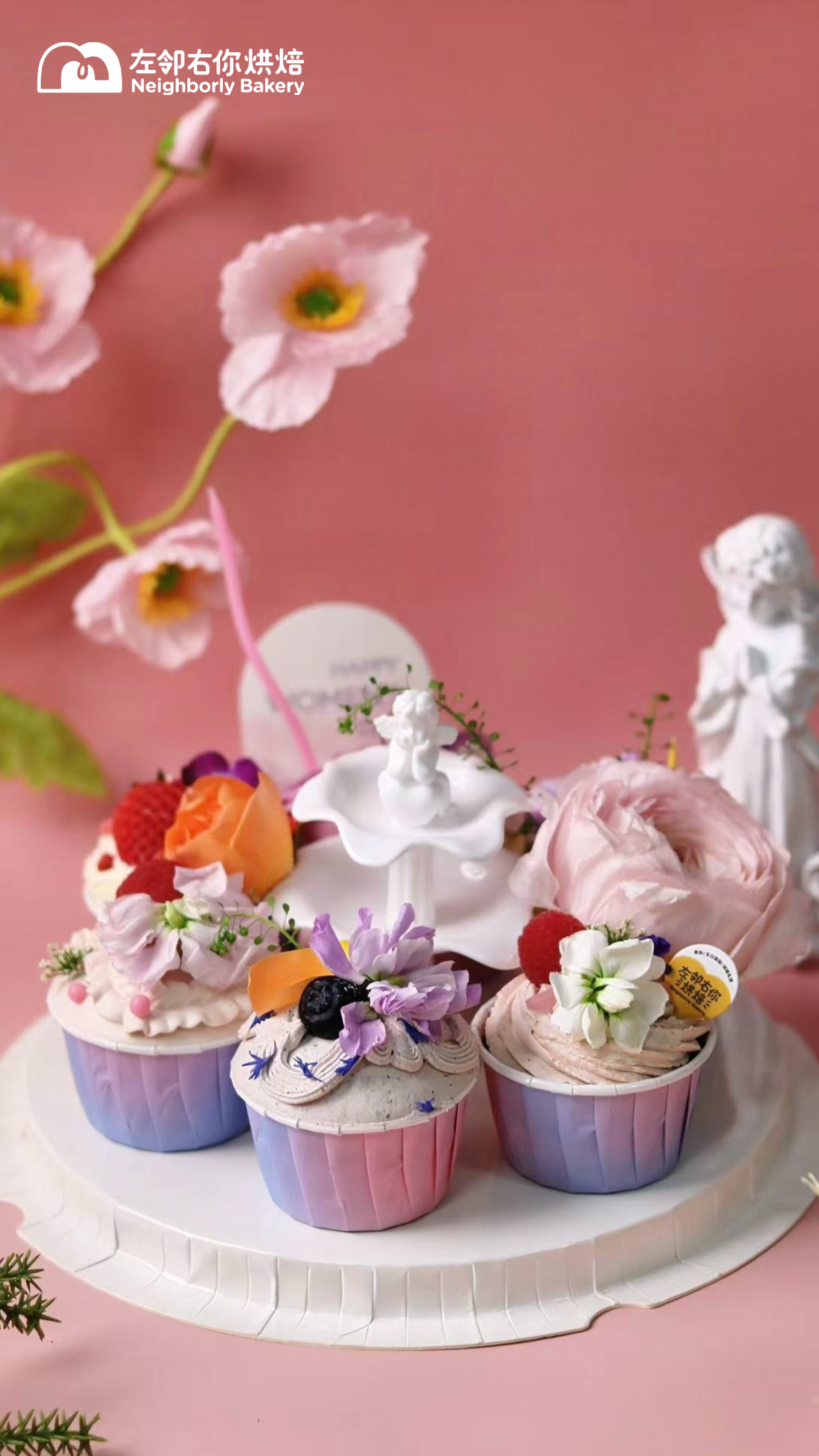 把春天的花束装进蛋糕里,