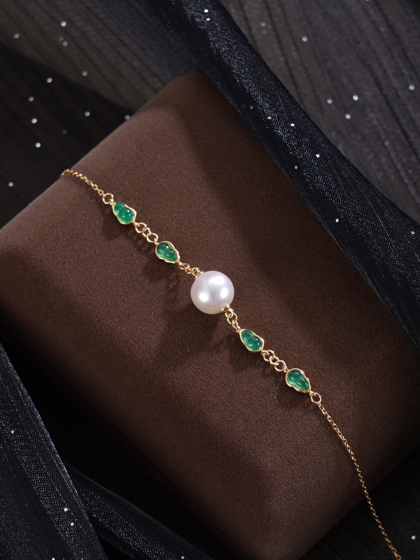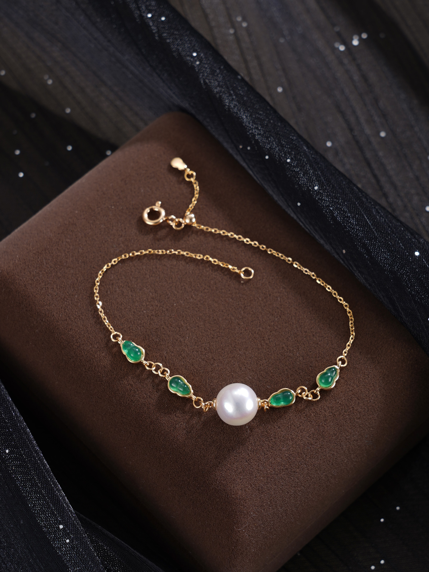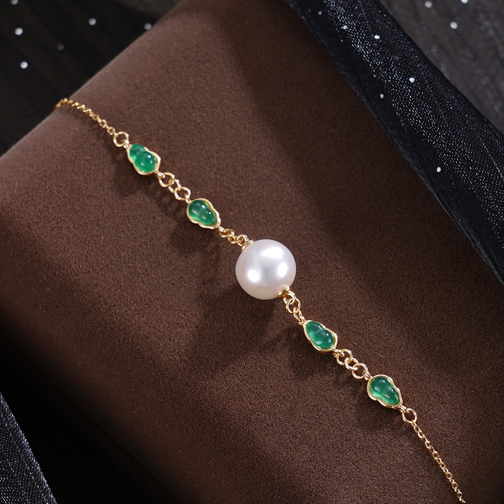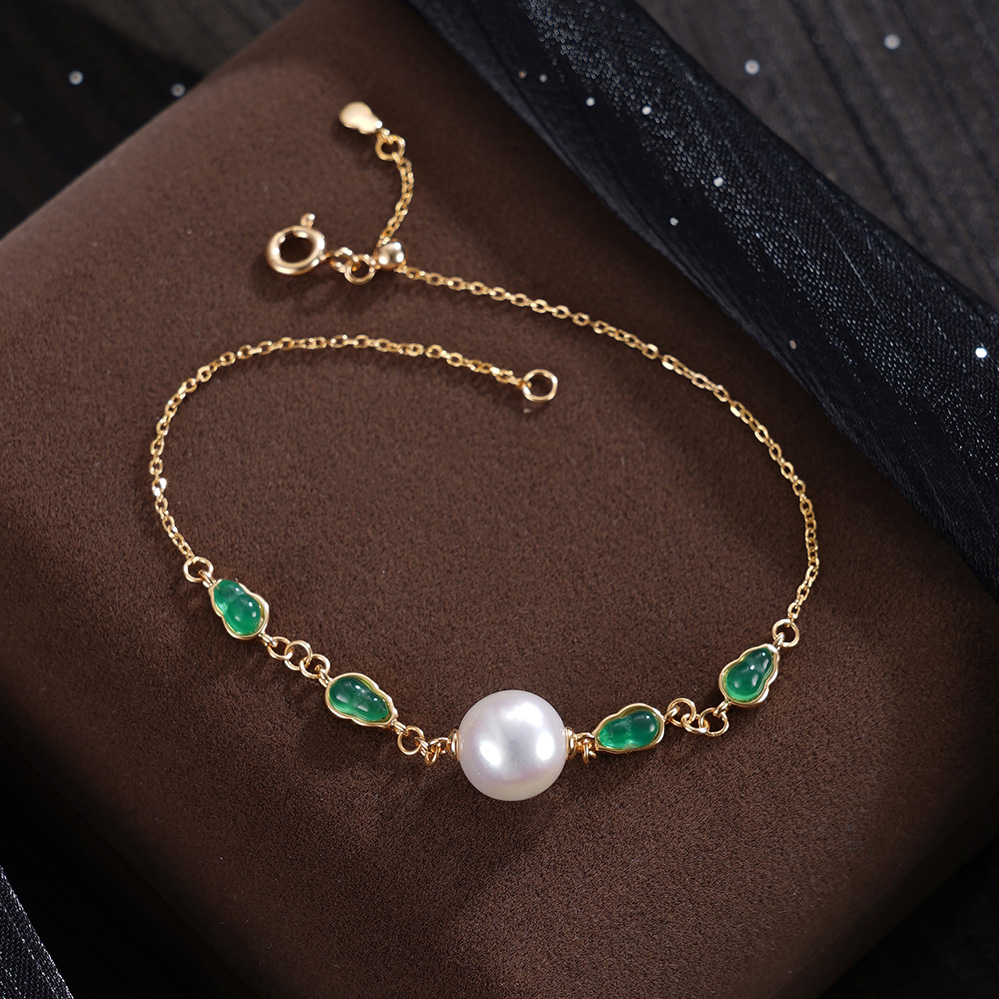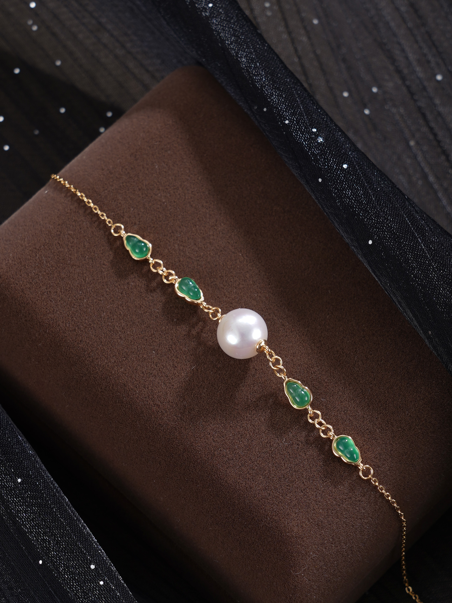 子佩集【福禄攸同】银S925珍珠惜王妃手链【MLSL007】8.4mm珠镀金葫芦绿玉髓2601