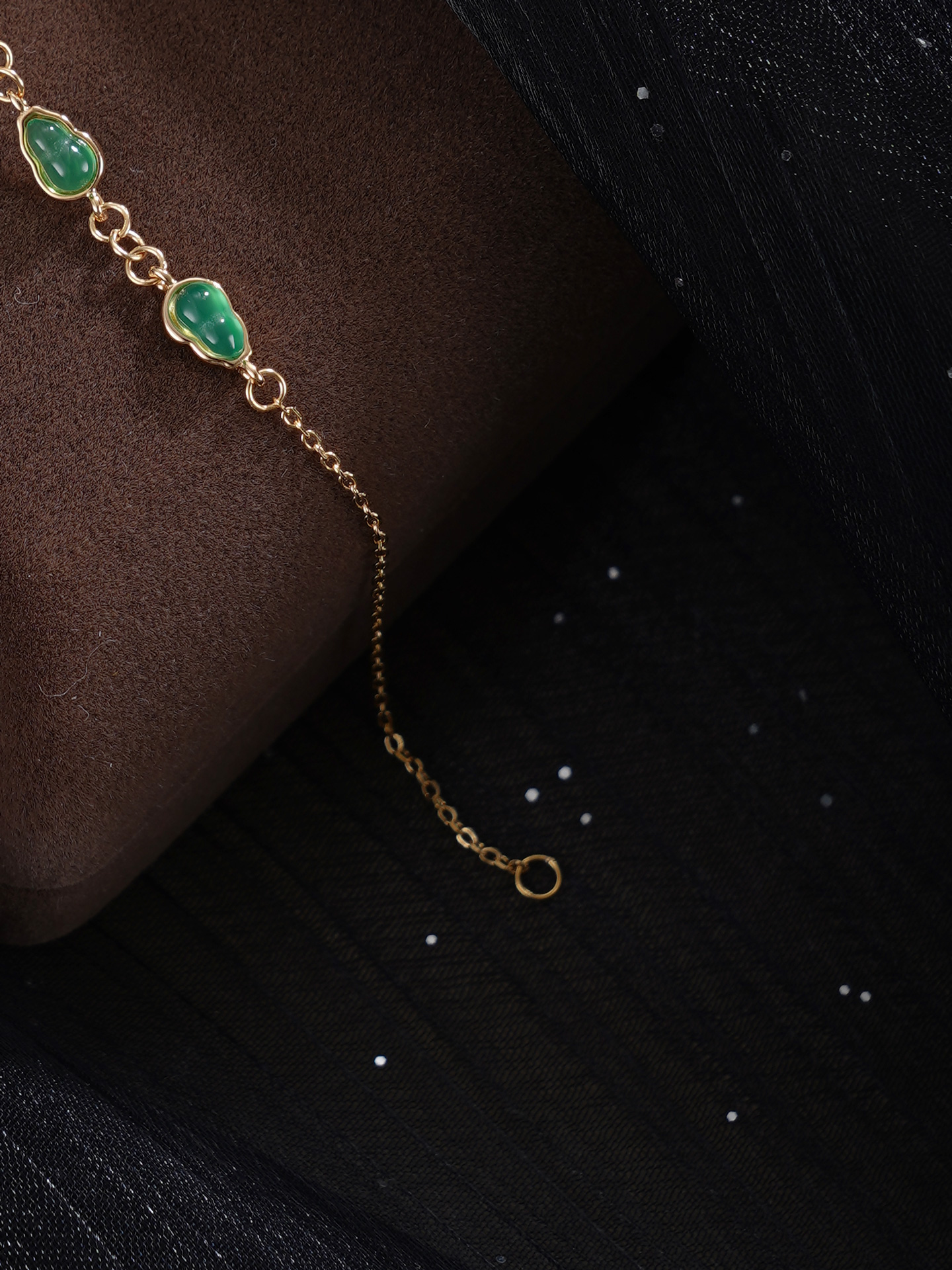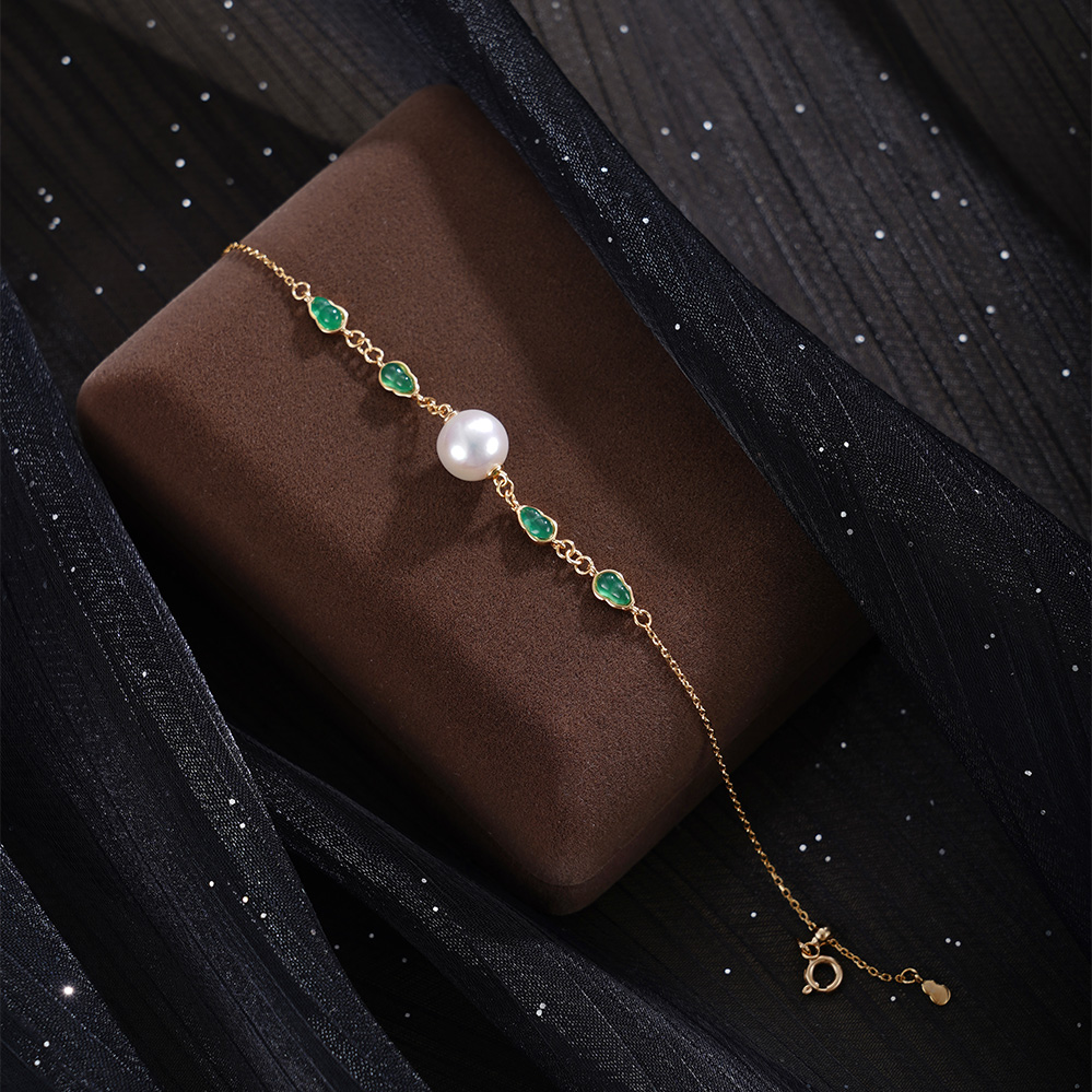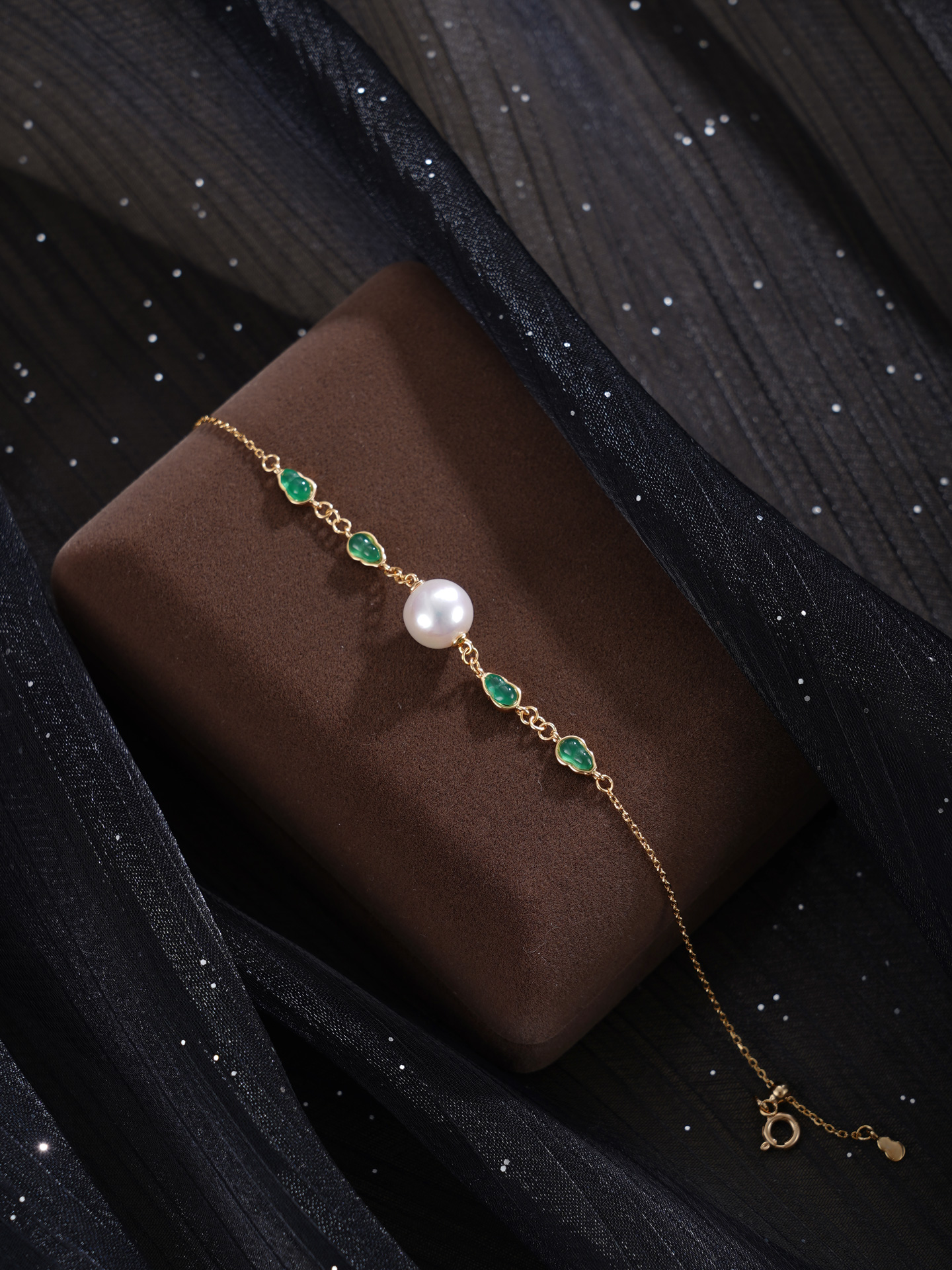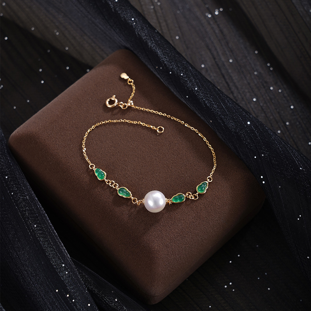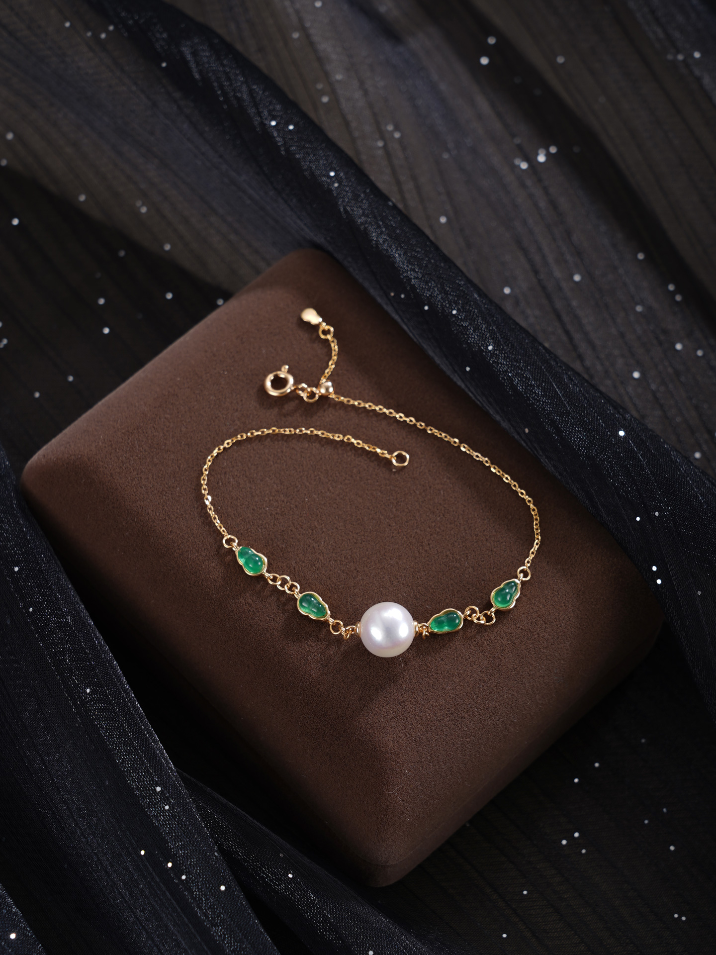 子佩集【福禄攸同】银S925珍珠惜王妃手链【MLSL007】8.4mm珠镀金葫芦绿玉髓2601