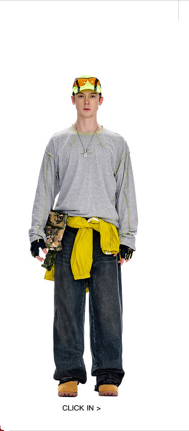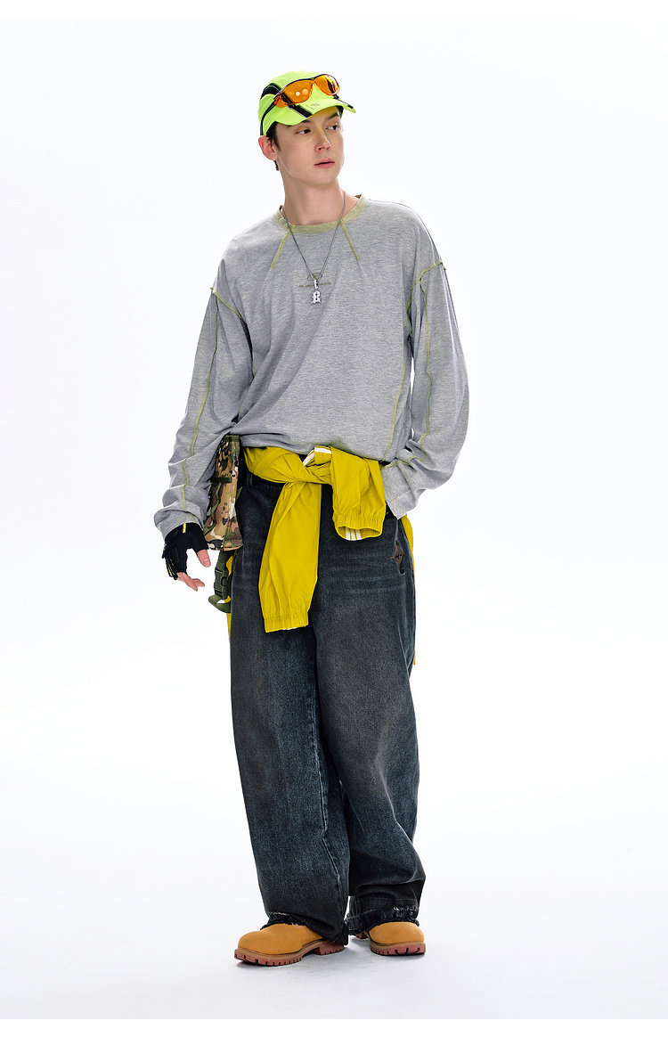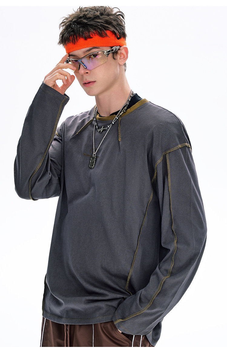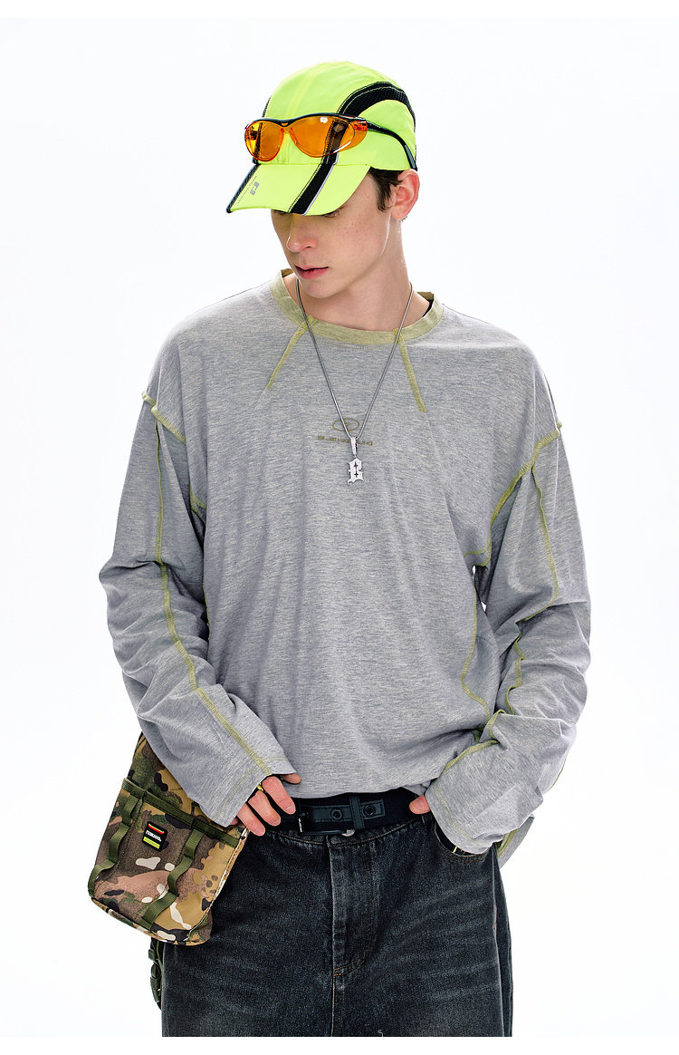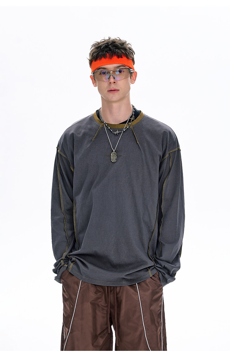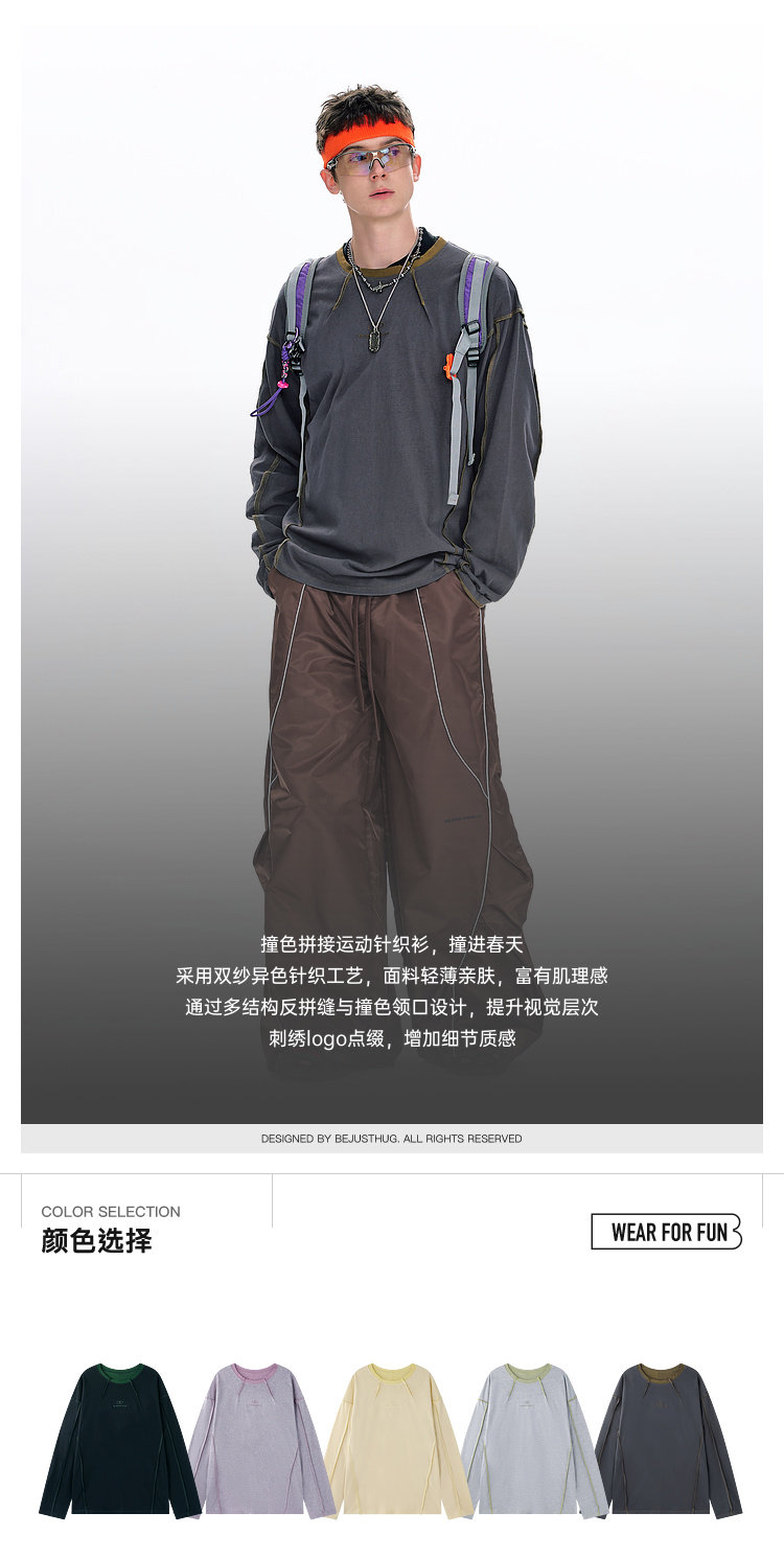 BJHG不计后果长袖t恤男款春季圆领卫衣美式宽松叠穿内搭打底衫女