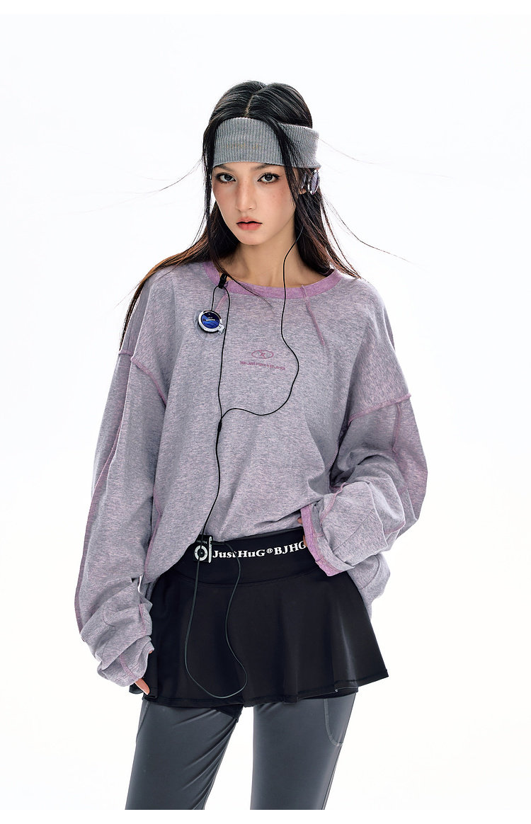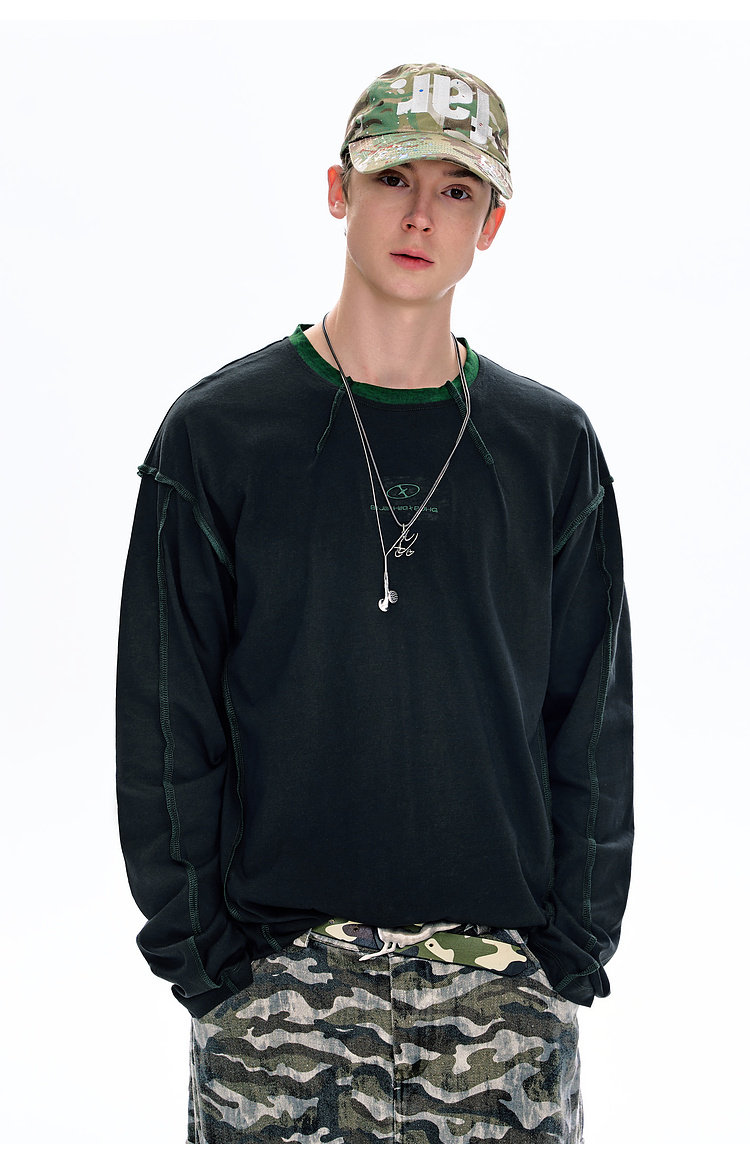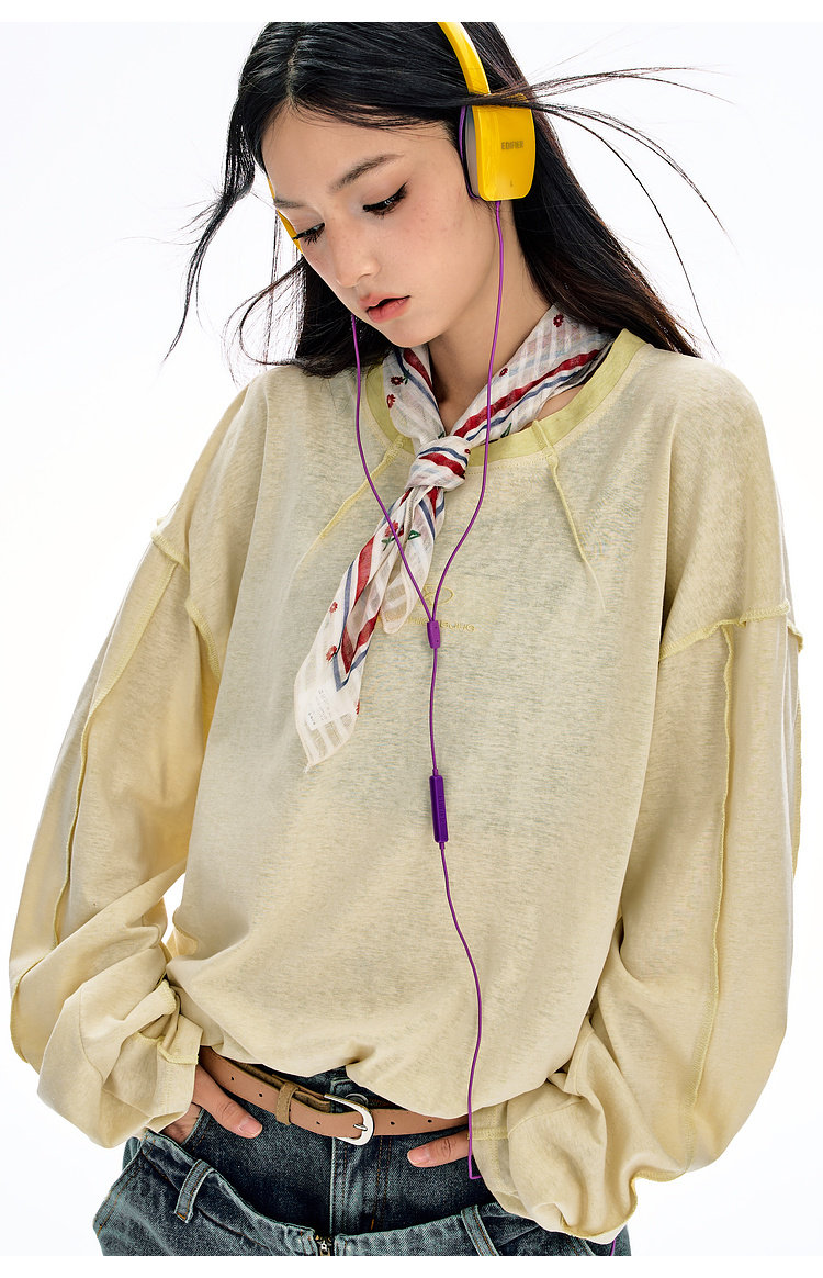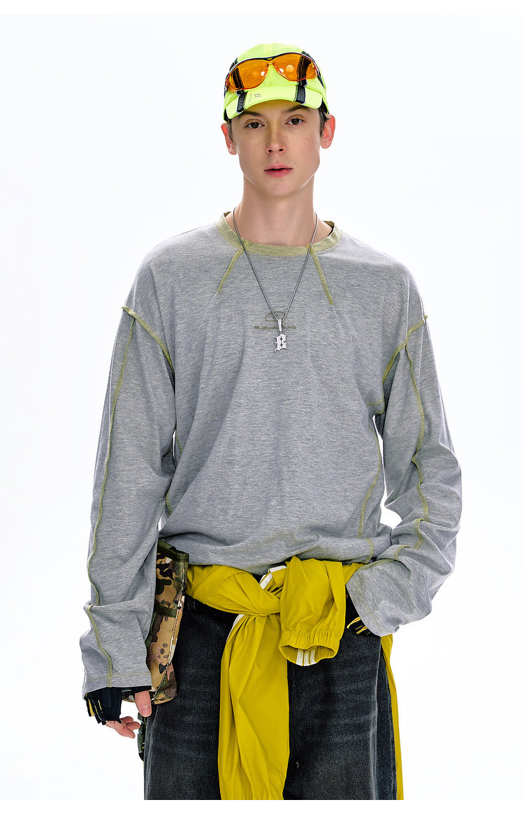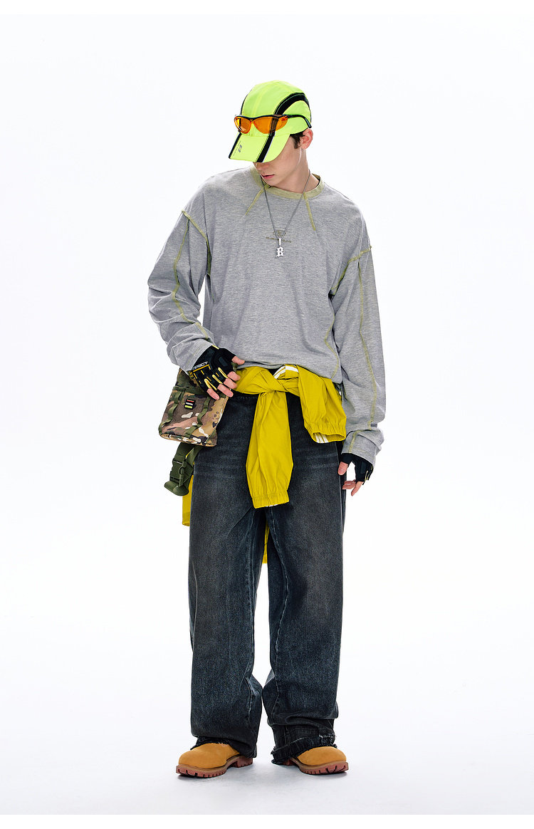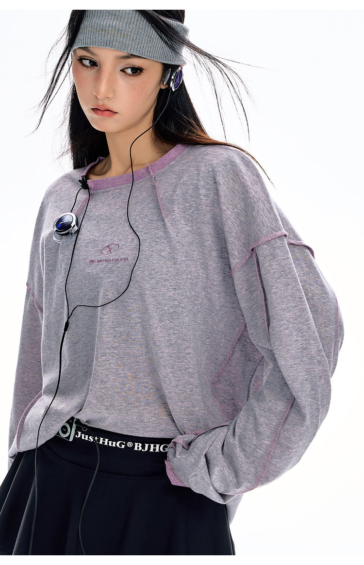 BJHG不计后果长袖t恤男款春季圆领卫衣美式宽松叠穿内搭打底衫女