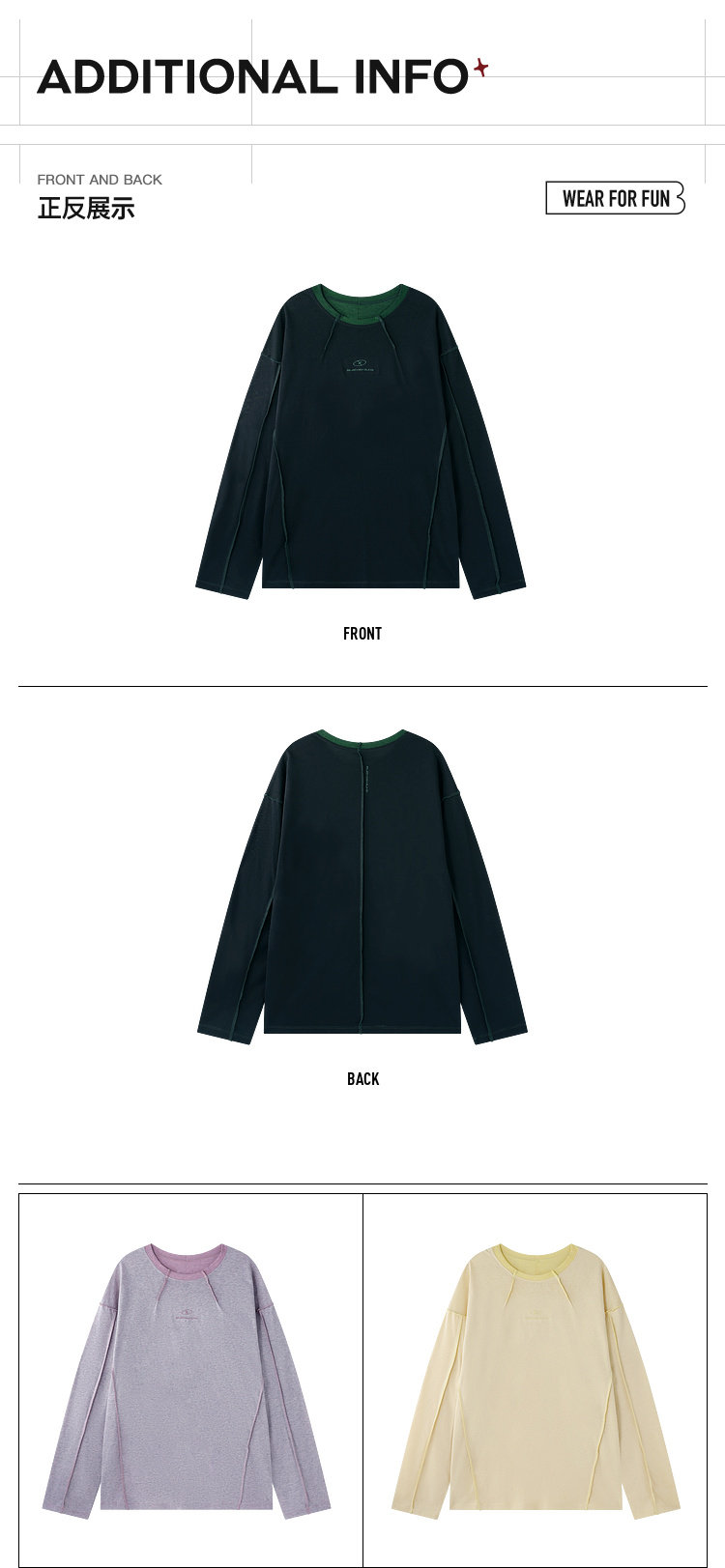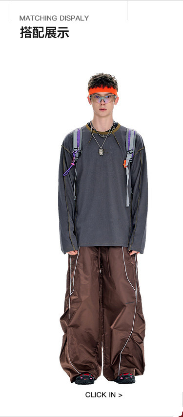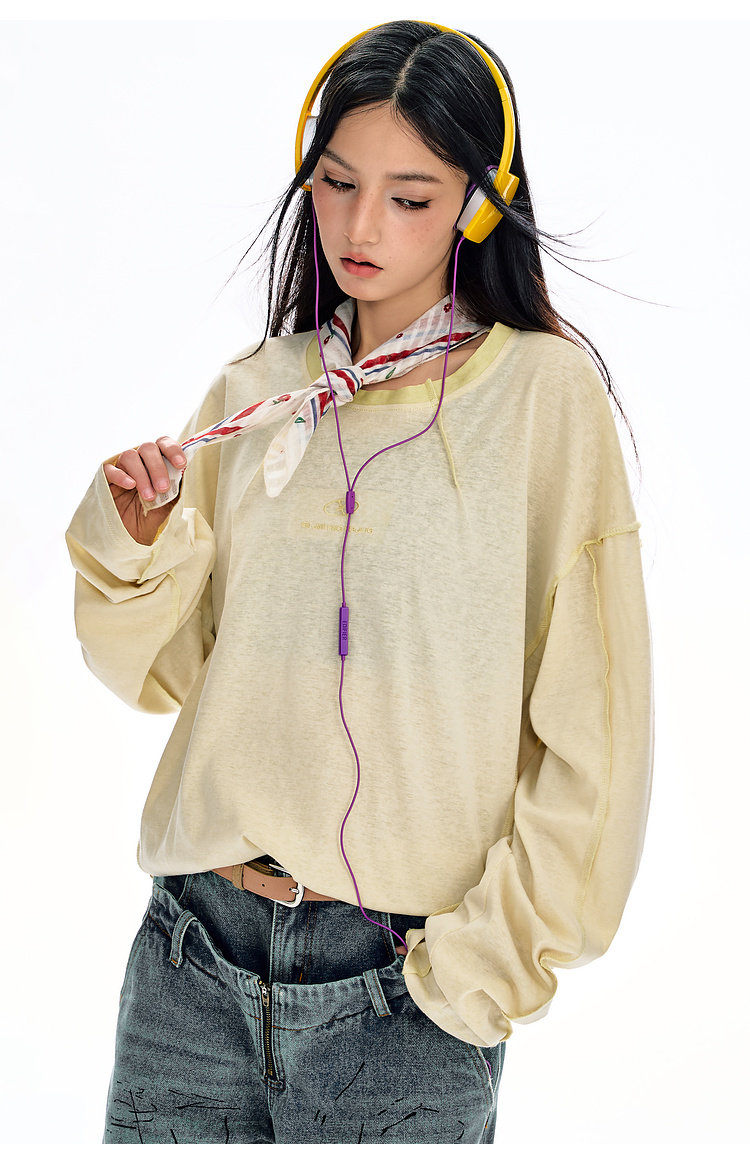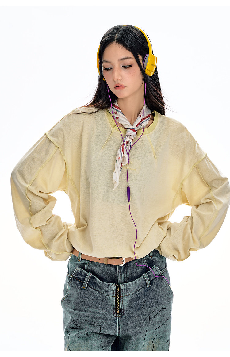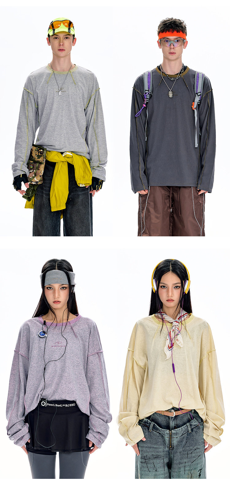 BJHG不计后果长袖t恤男款春季圆领卫衣美式宽松叠穿内搭打底衫女