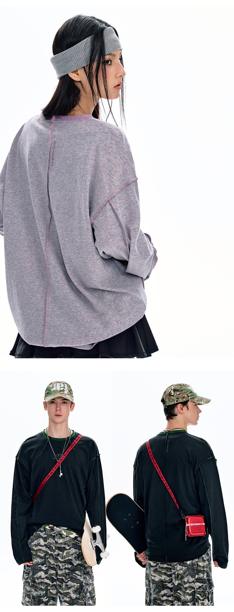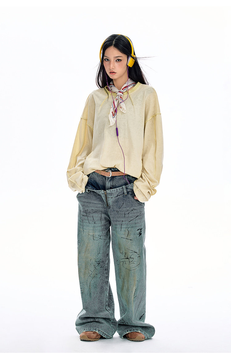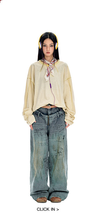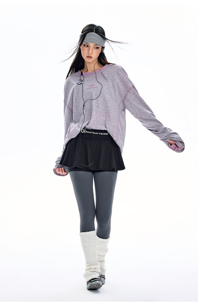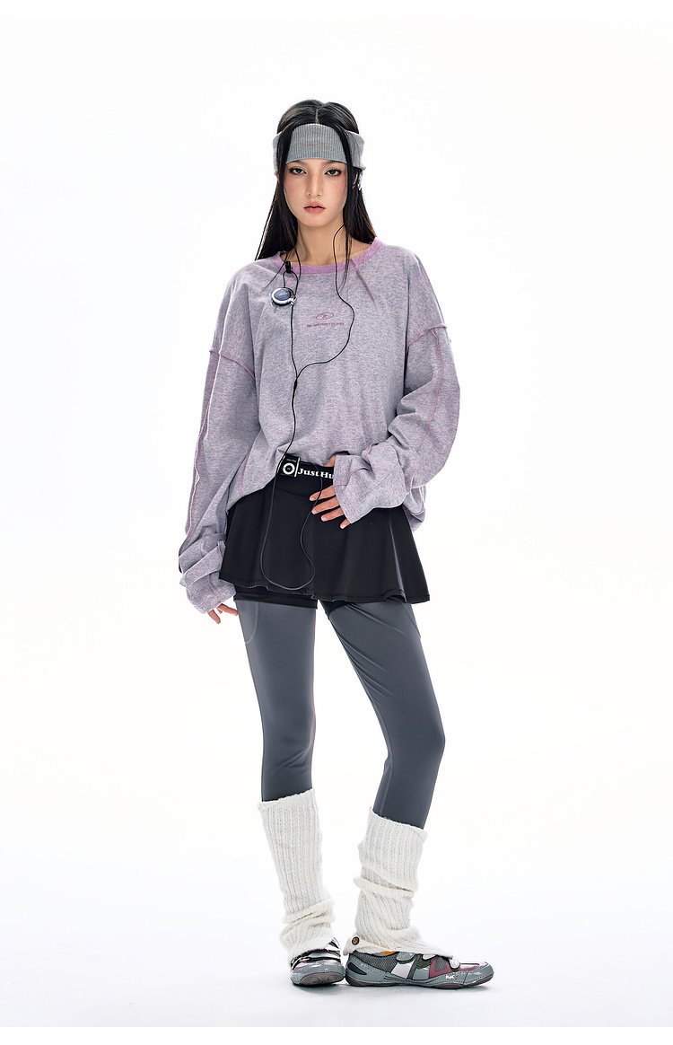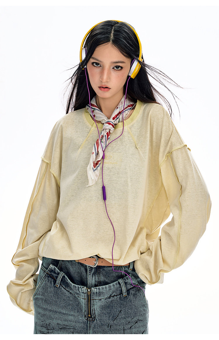 BJHG不计后果长袖t恤男款春季圆领卫衣美式宽松叠穿内搭打底衫女