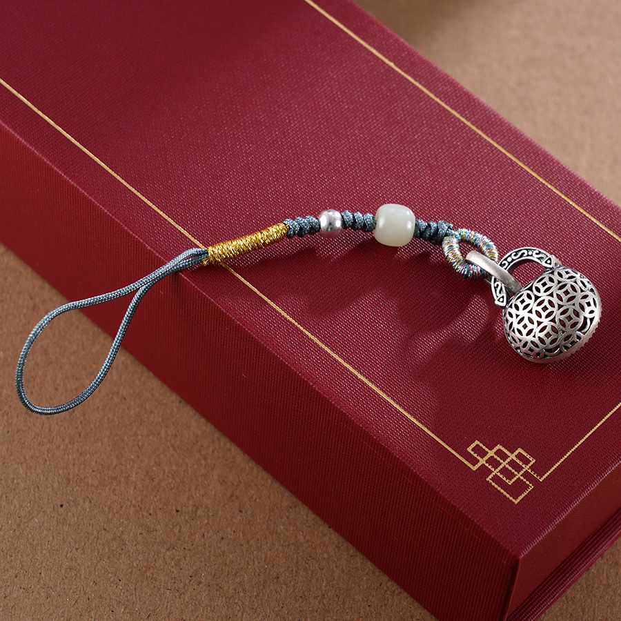 【寓意】:钥匙扣灵感源自福袋,纯银与南红材质巧妙结合,色彩明快,温馨喜庆。寓意招财纳福,代代有福。