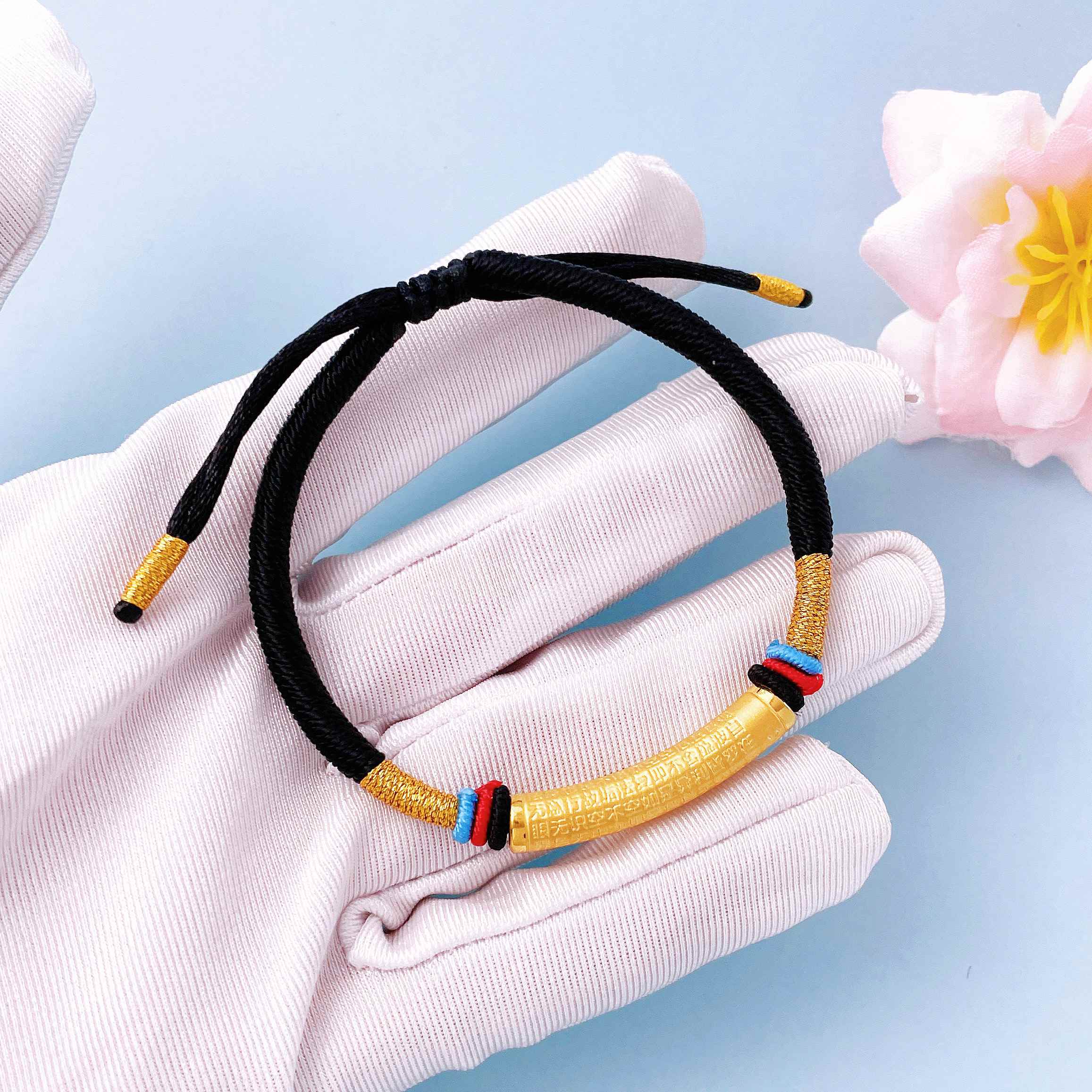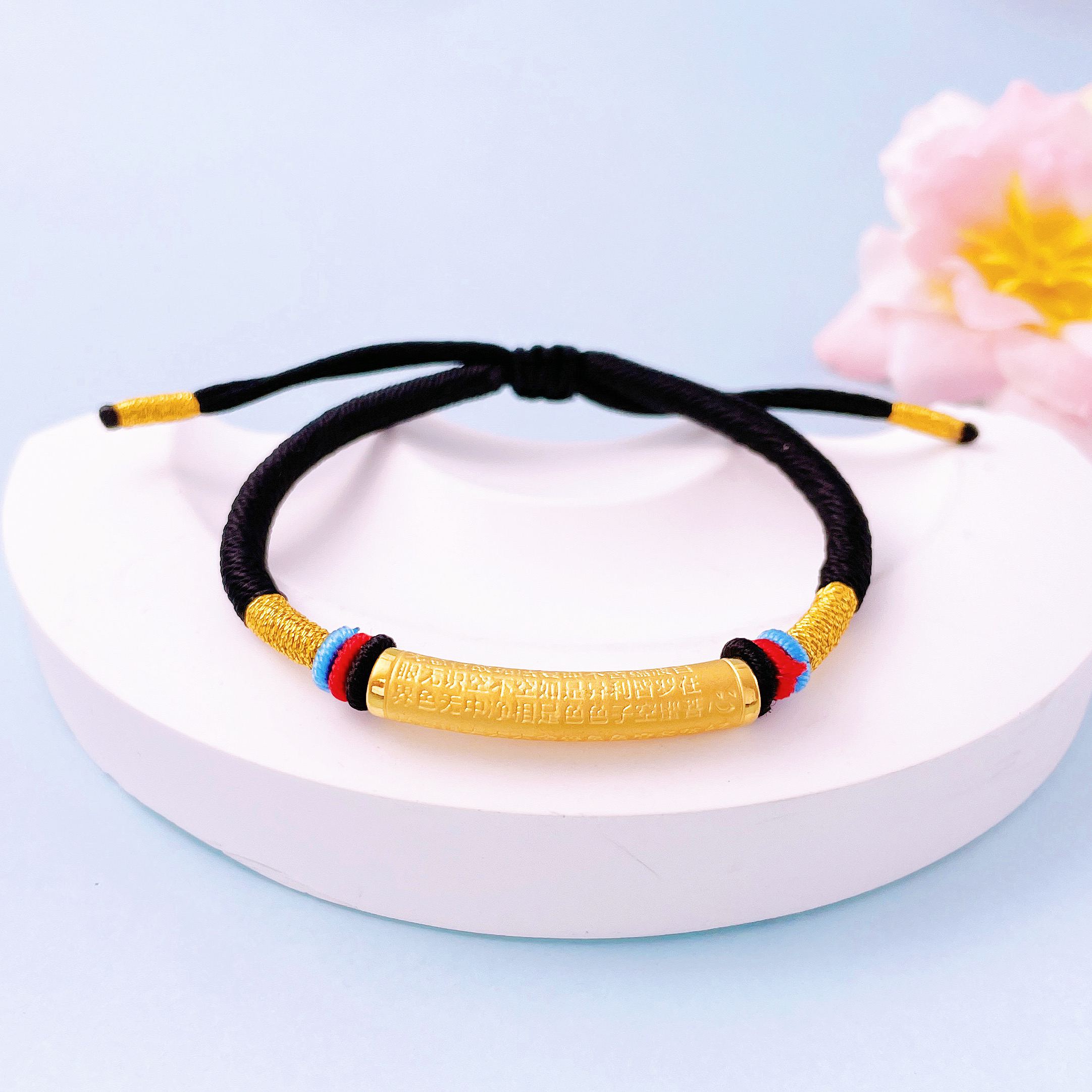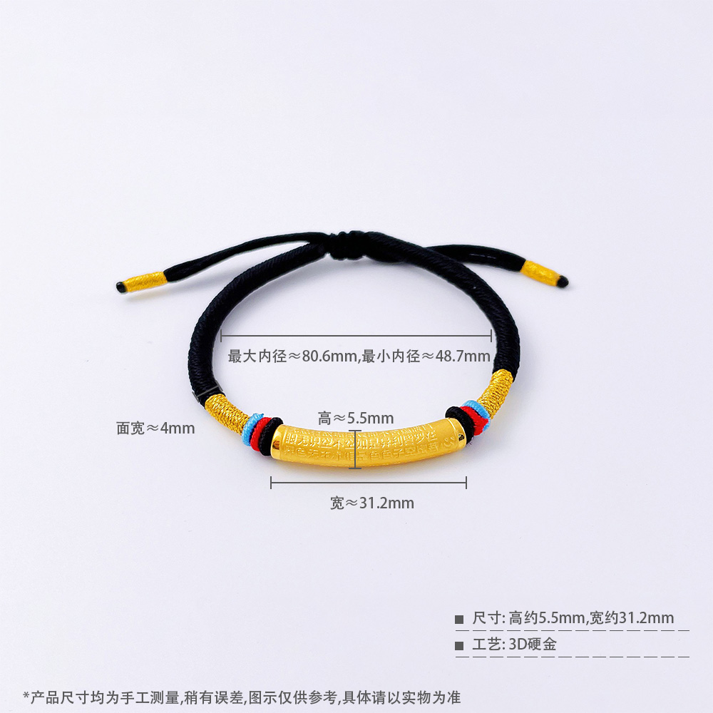 【限时7.5折】【定价黄金】足金 3D硬金空心心经弯管编织绳可调节手链成品手串(AA3DSC00544)(预售产品下单后不退款不退货不换货不补差价)
