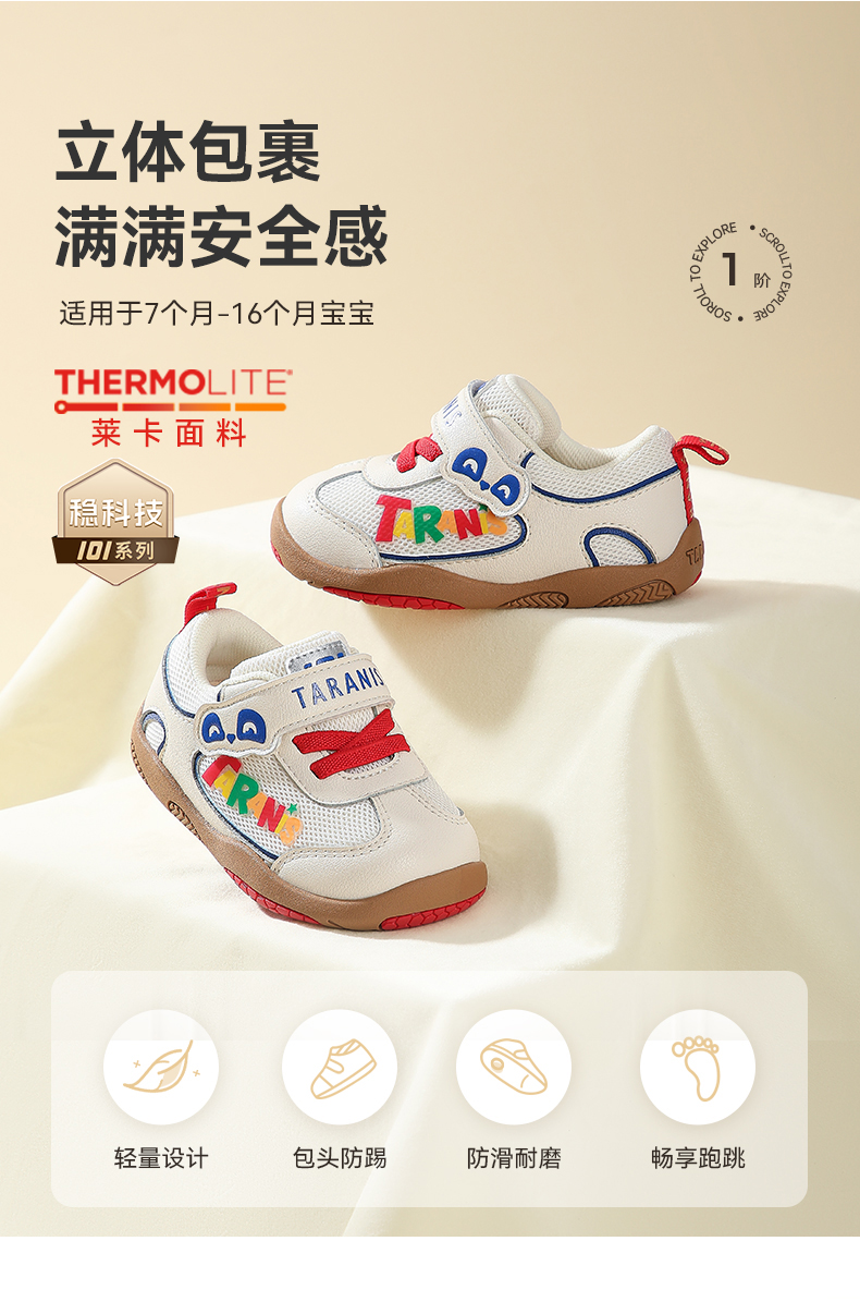 泰兰尼斯101秋季新品女宝宝步前鞋宝宝鞋婴幼儿男宝宝透气赤足鞋 T24B5C6504