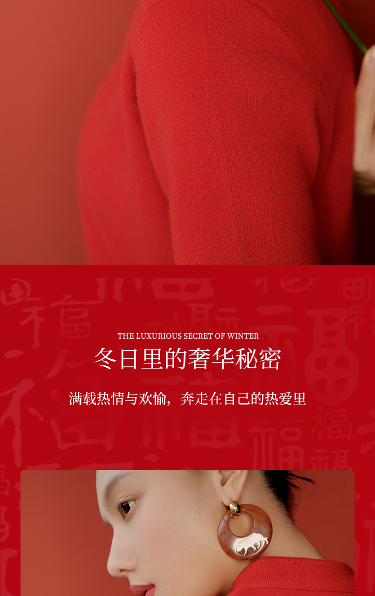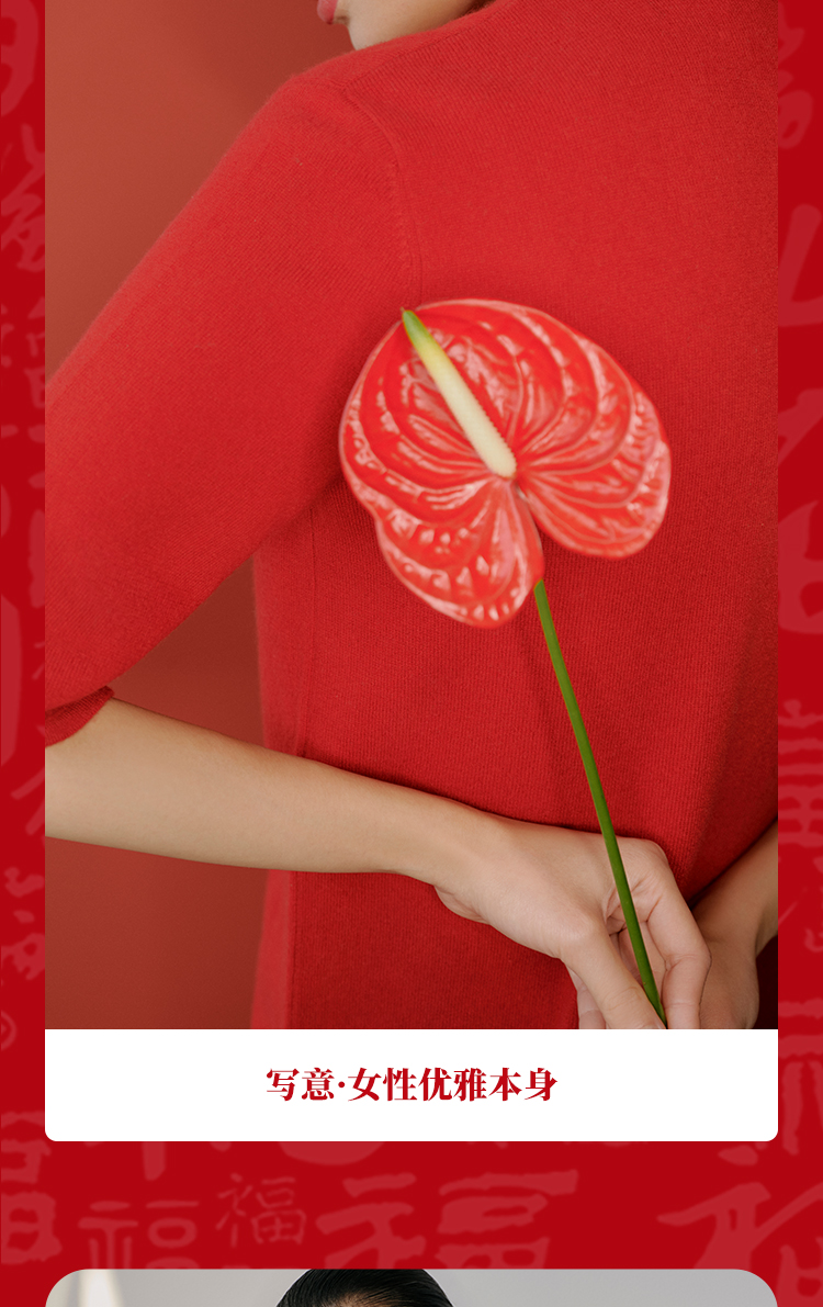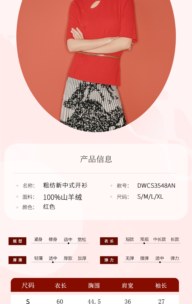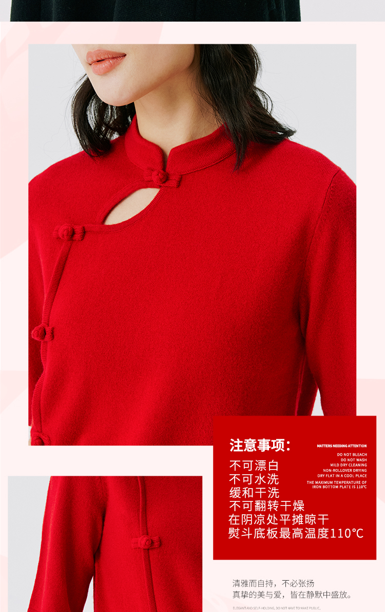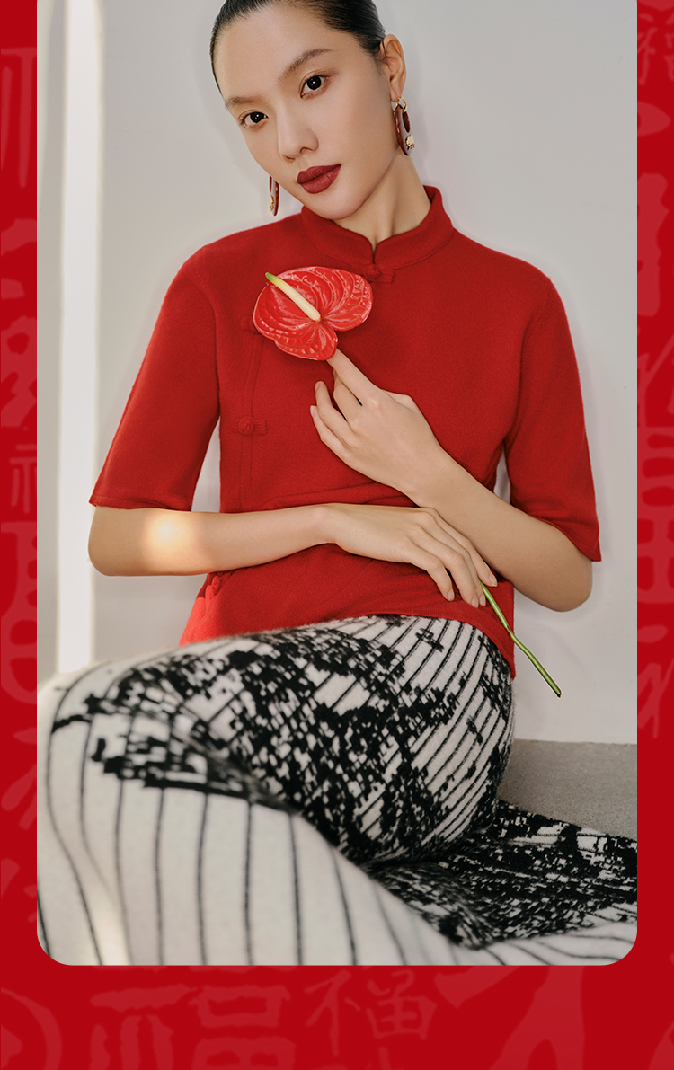 东黎 • 山羊绒 女士秋冬 新中式气质中国风红色短袖 3548