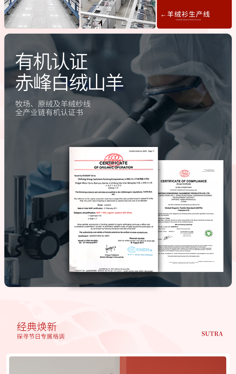 东黎羊绒是赤峰东荣集团自主品牌,自有牧场/羊绒制品全产业链优势,实现了羊绒从“牧场”到“商场”的华丽转变。