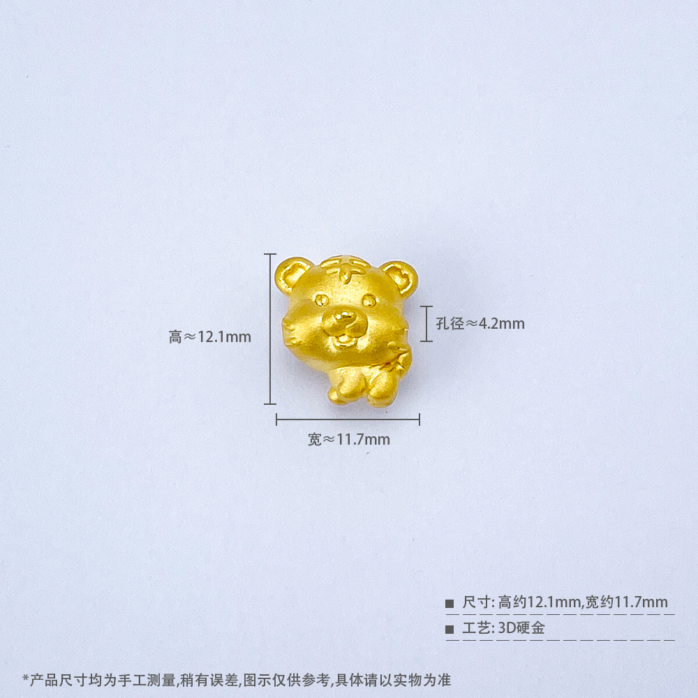 【限时7.5折】【定价黄金】足金 3D硬金虎年生肖老虎手串(V3DSC00290)预售产品下单后不退款不退货不换货不补差价