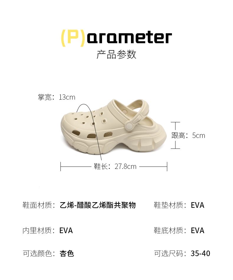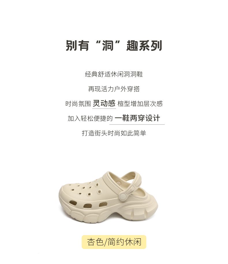 ZHR则则踩屎感增高两穿洞洞鞋女夏季新款凉鞋一脚蹬拖鞋休闲鞋