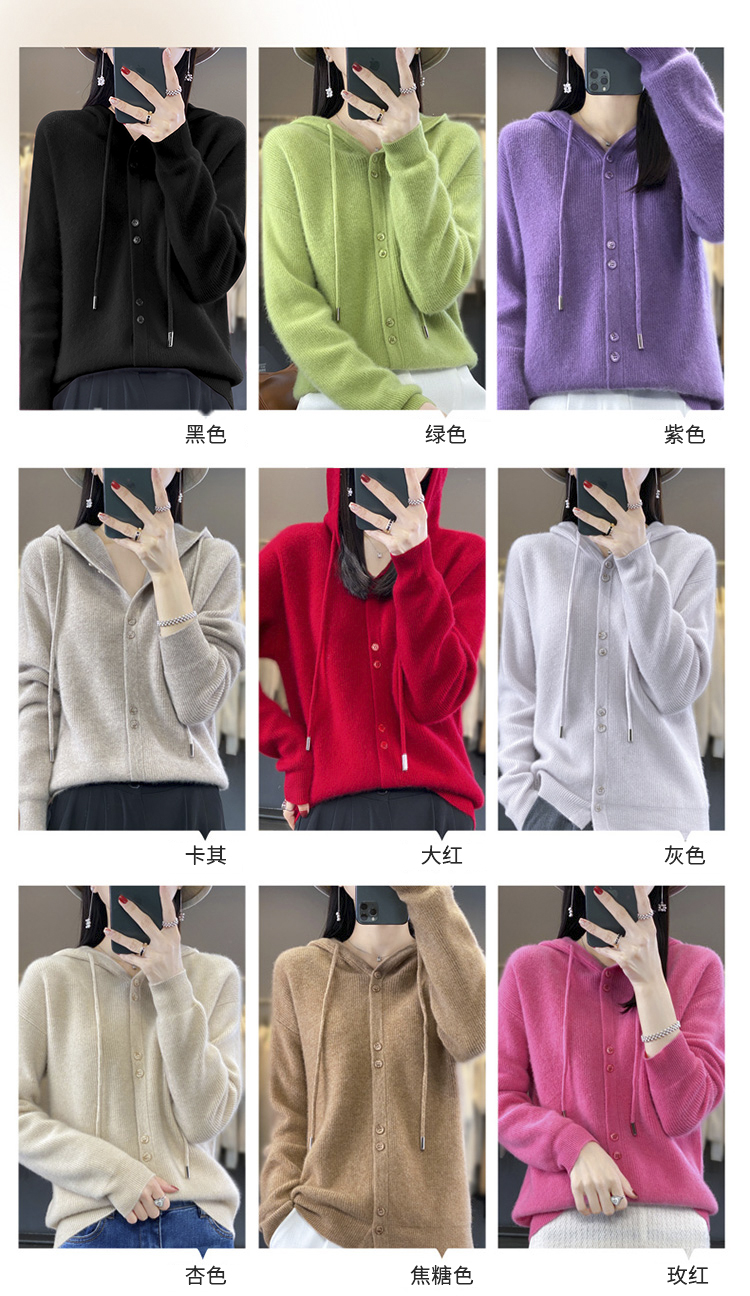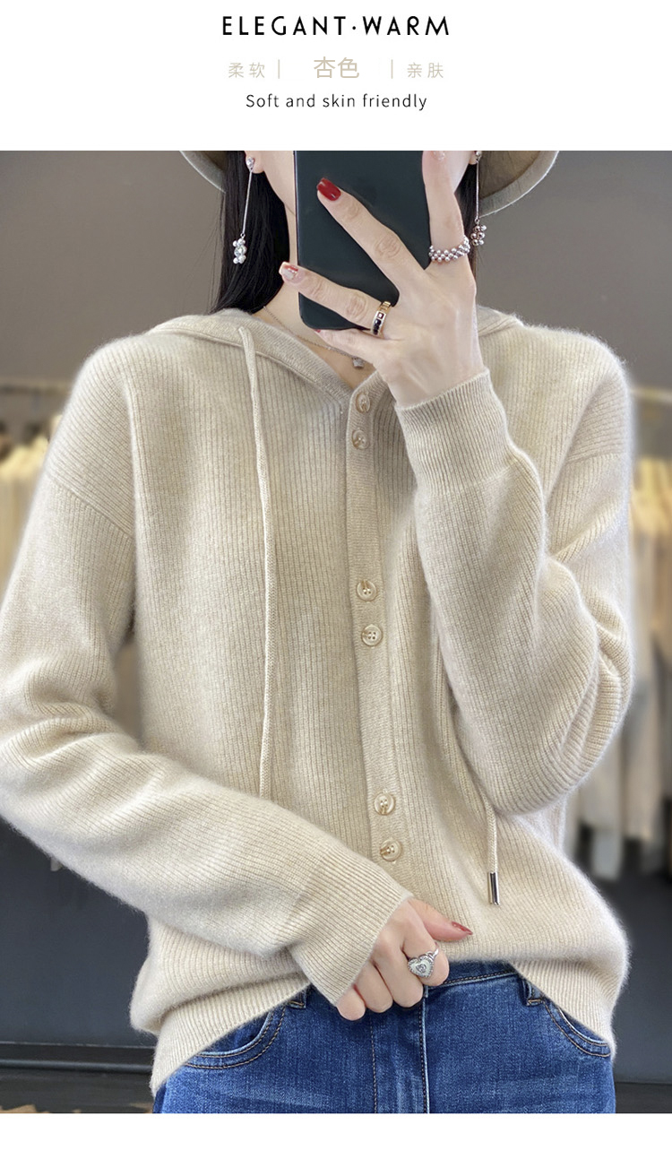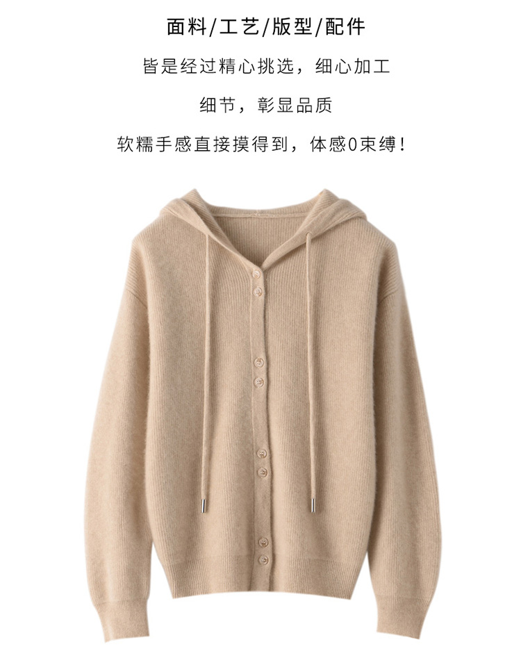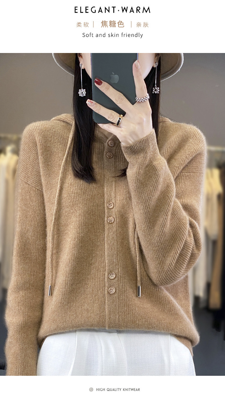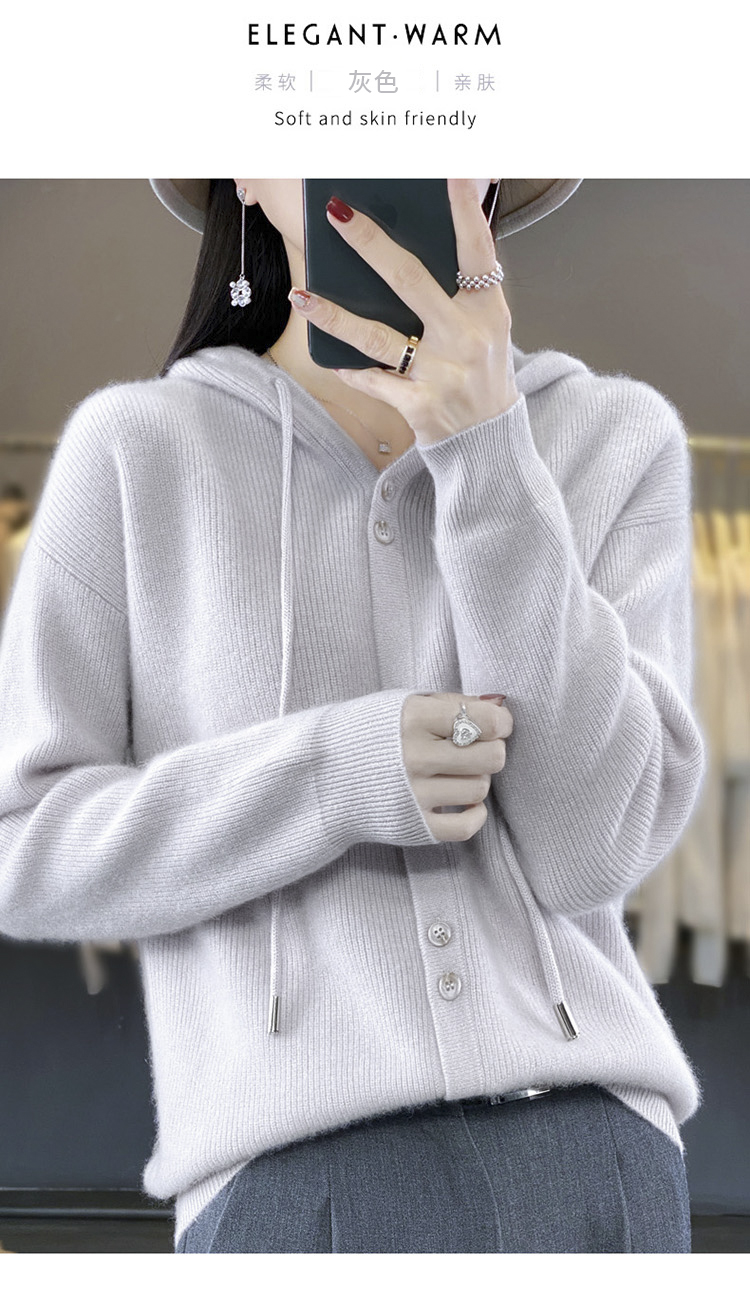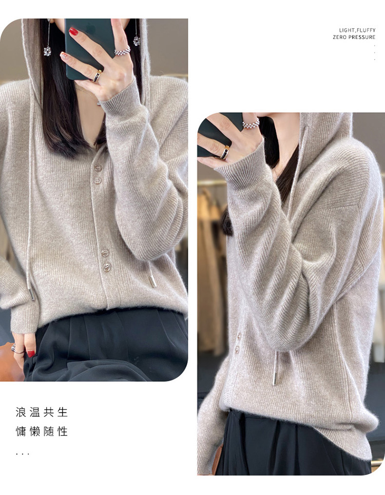 连帽针织开衫女春秋宽松休闲毛衣纯色羊毛衫SZ2715