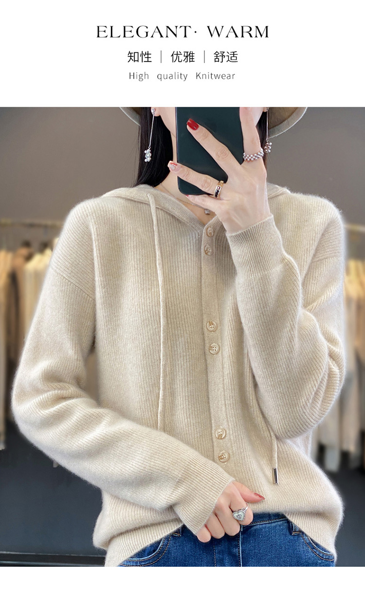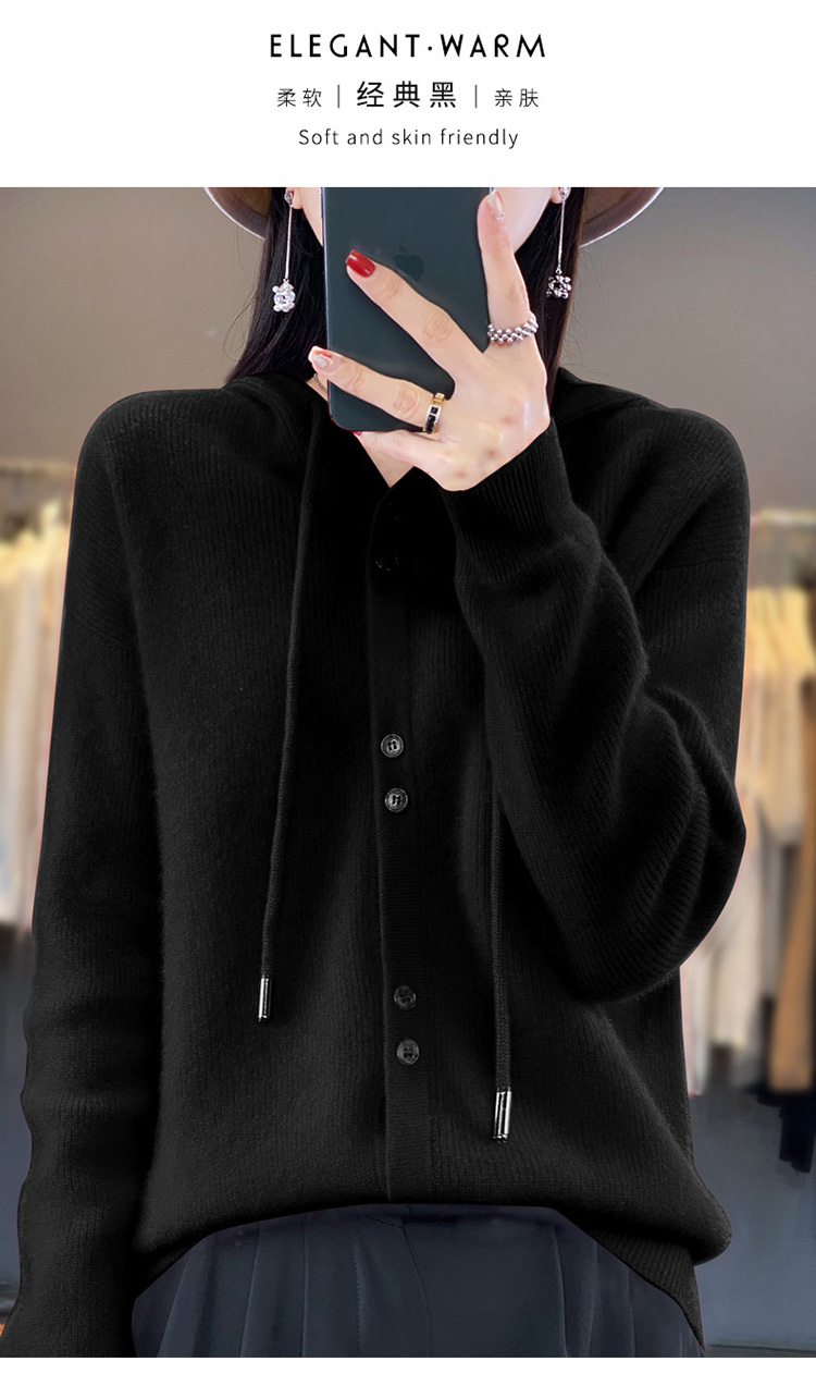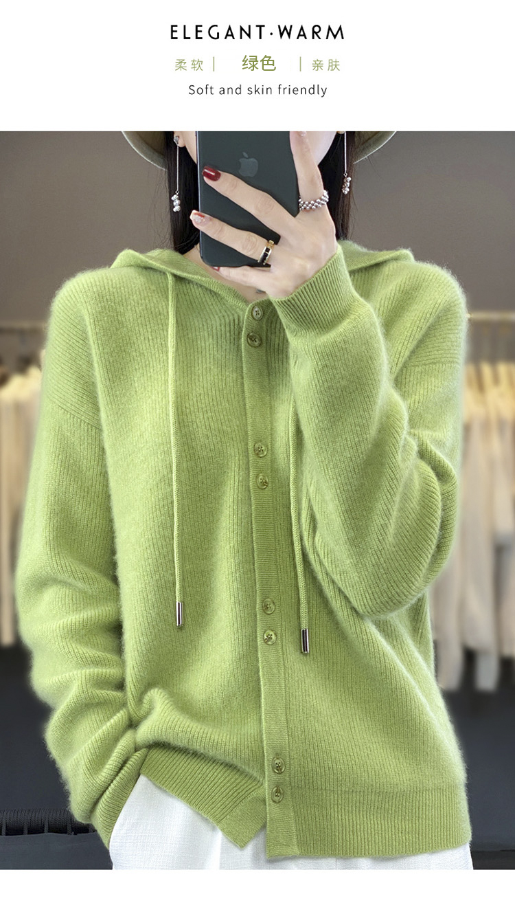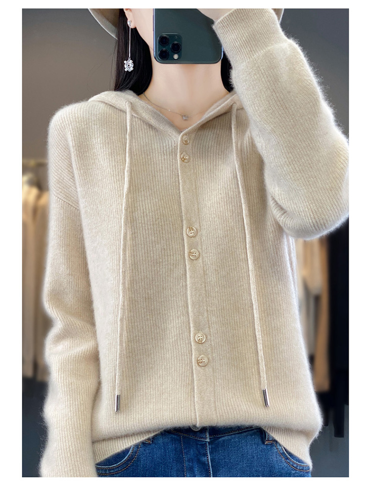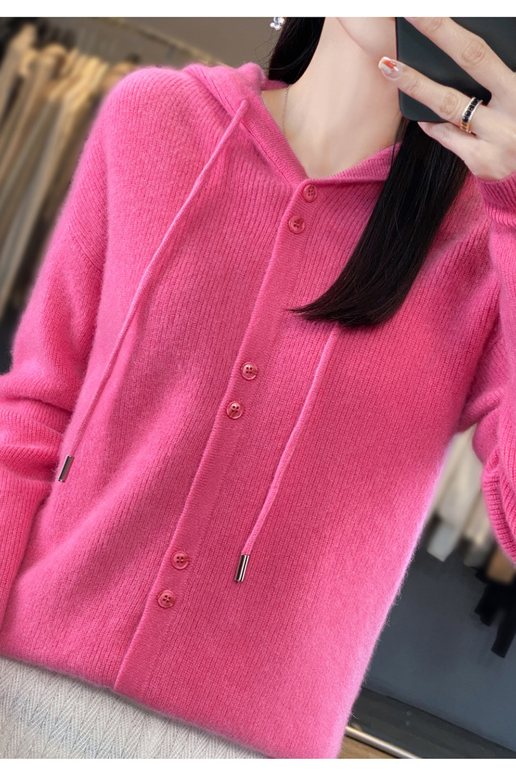 连帽针织开衫女春秋宽松休闲毛衣纯色羊毛衫SZ2715