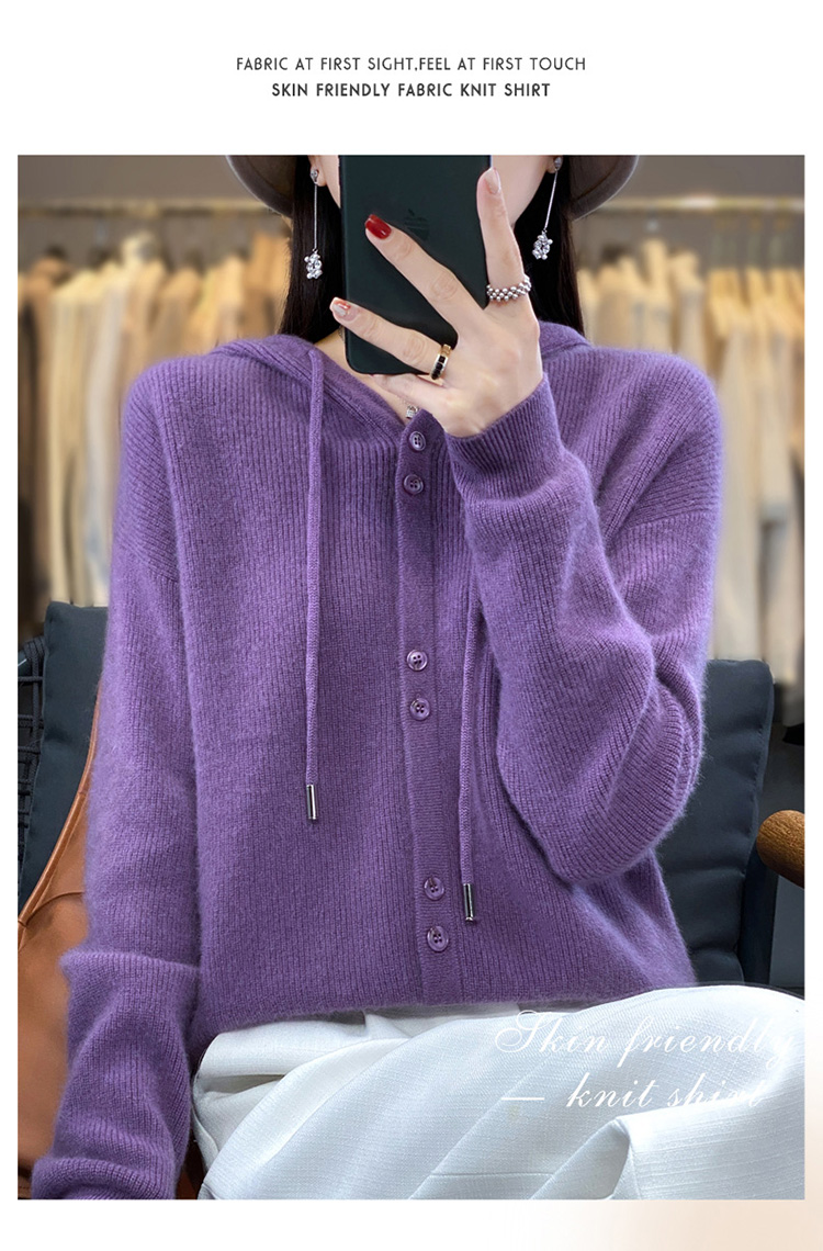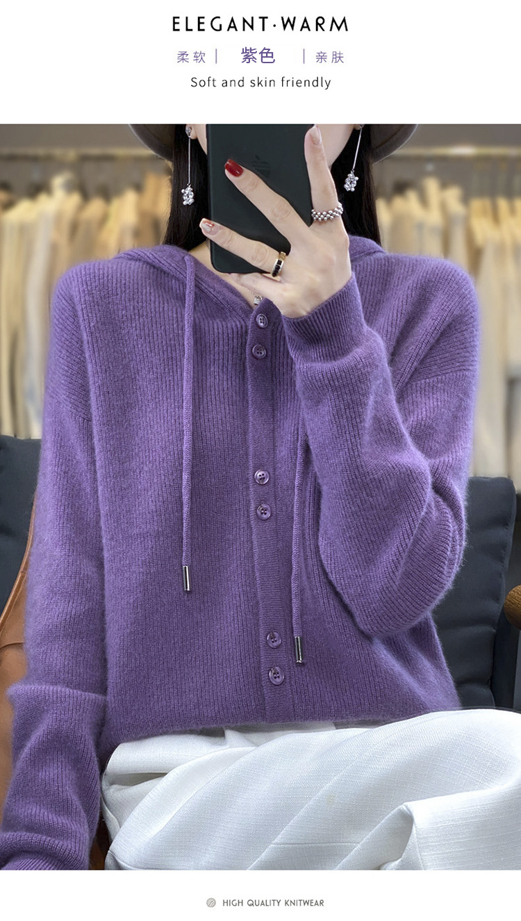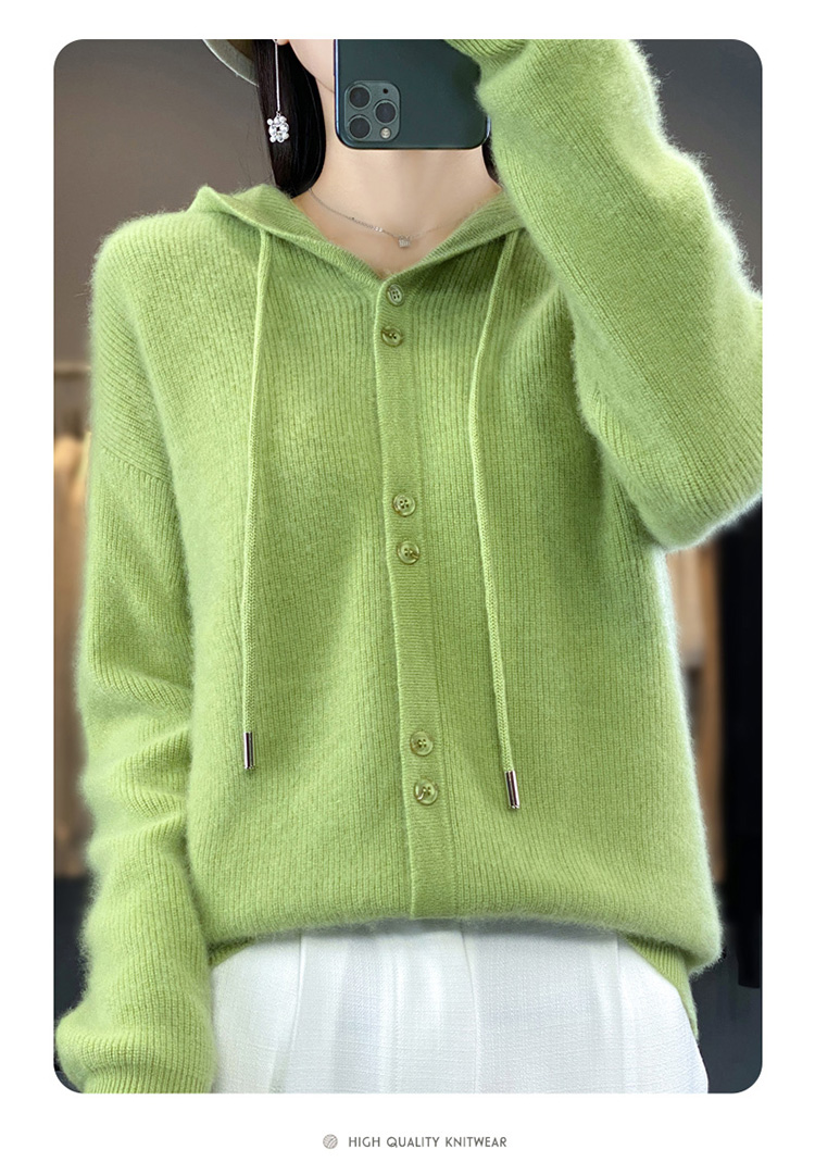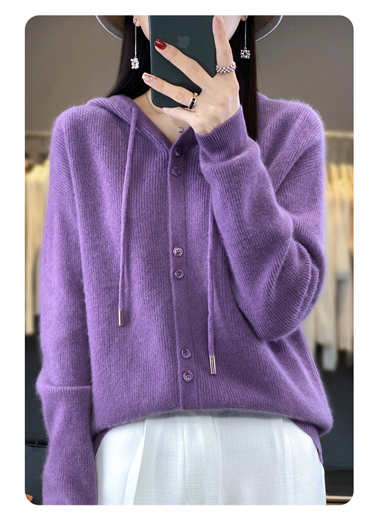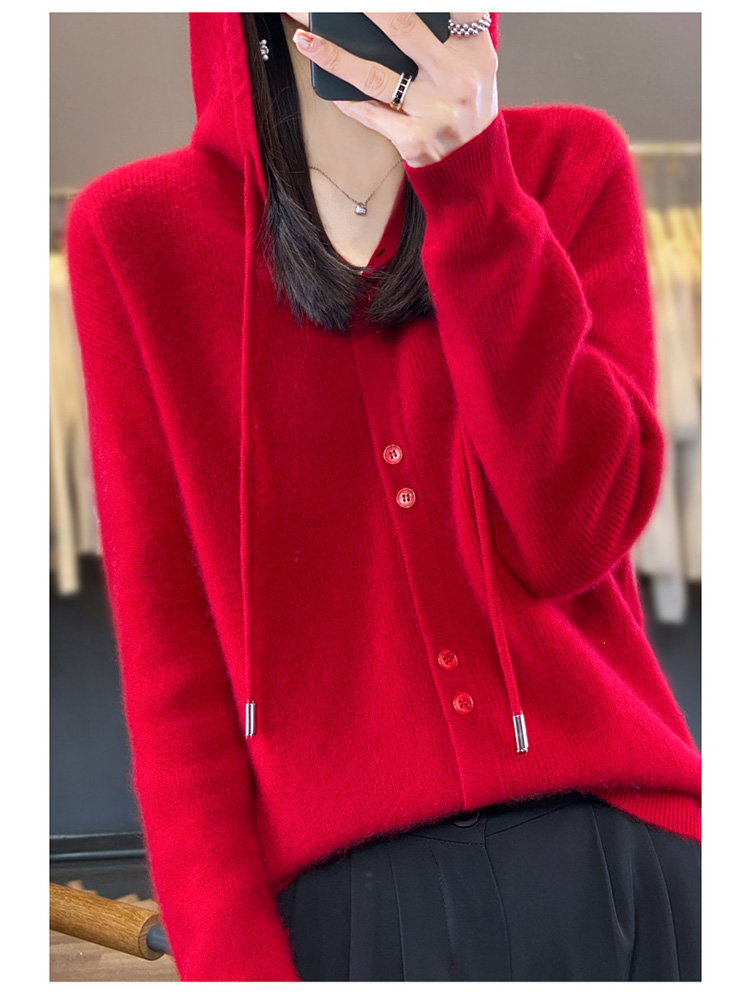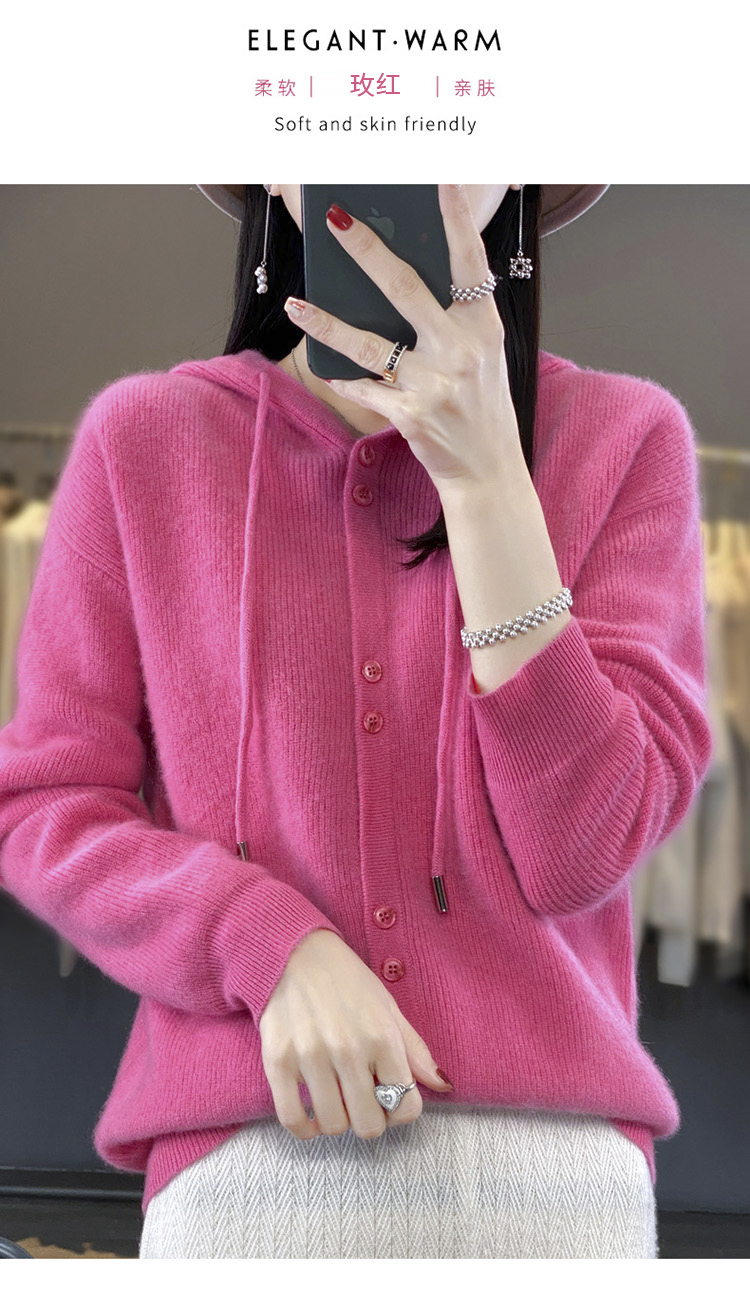 连帽针织开衫女春秋宽松休闲毛衣纯色羊毛衫SZ2715