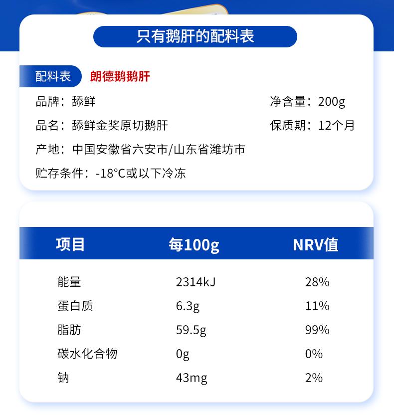 舔鲜5S级原切法式生鲜鹅肝 可做辅食 婴儿独立包装