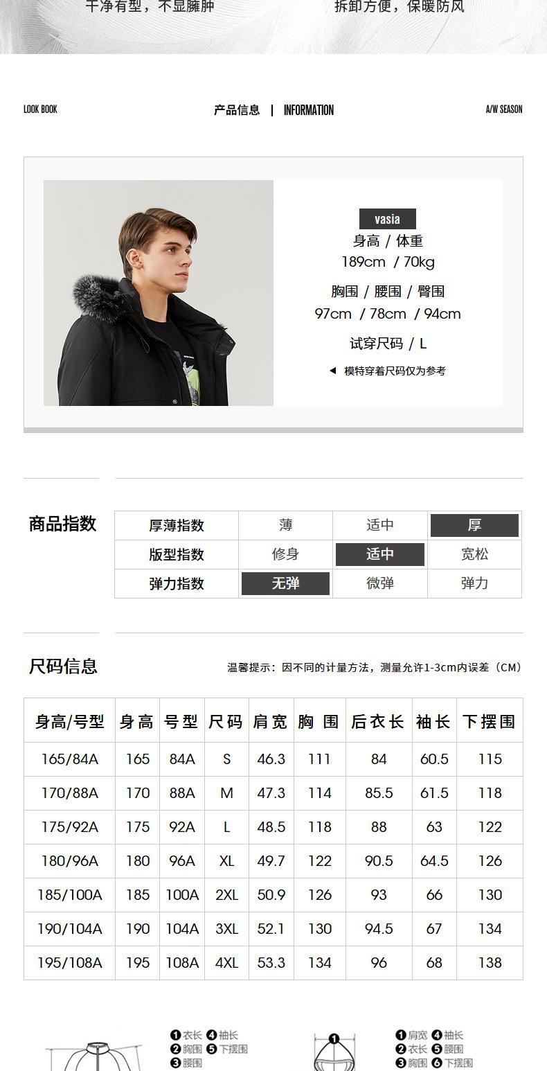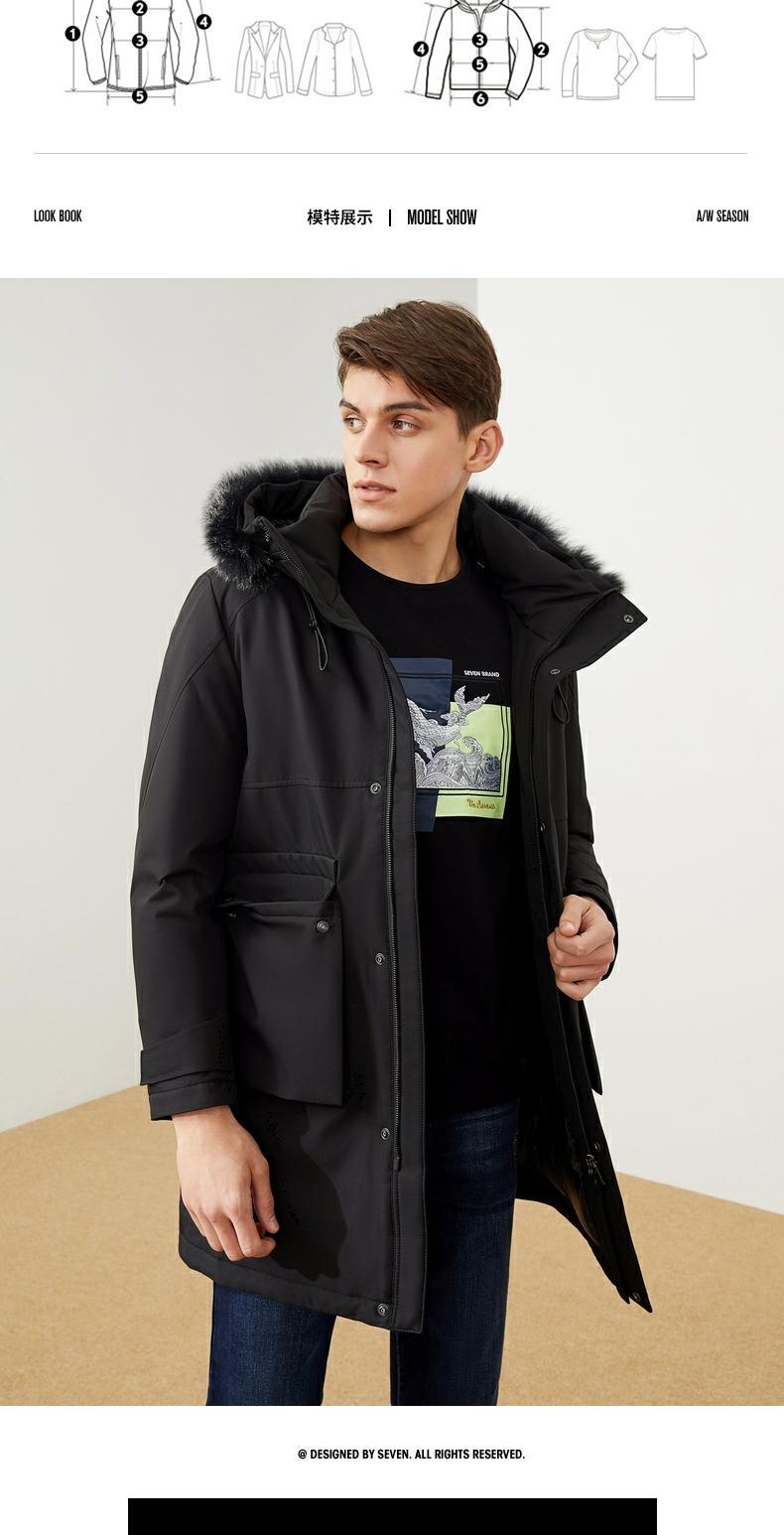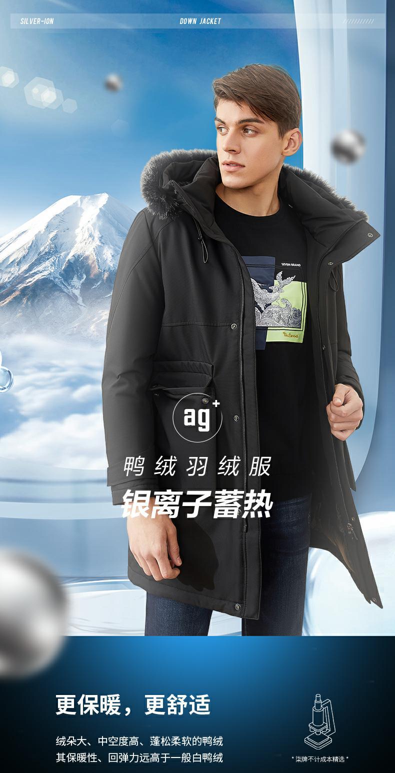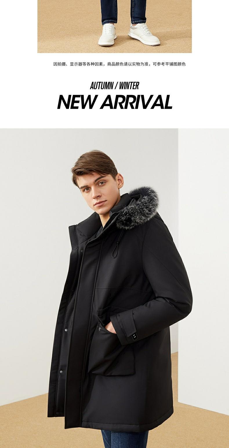 【特价】柒牌男款羽绒服休闲时尚帅气青年可拆卸毛领防风保暖白鸭绒厚外套 121E70260