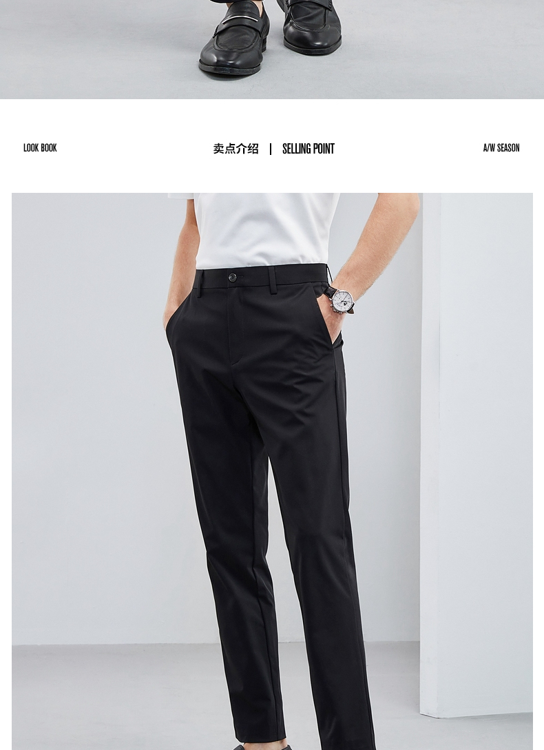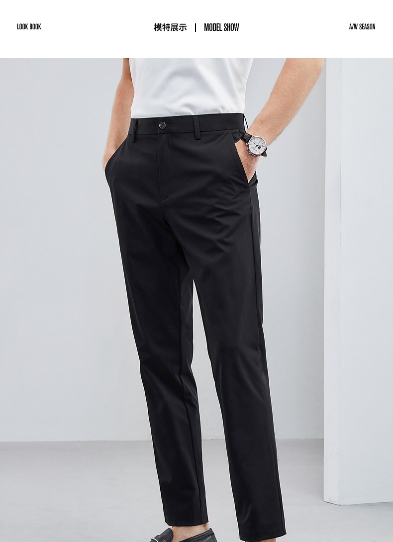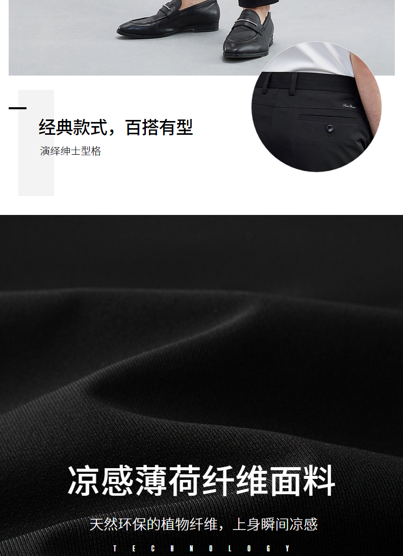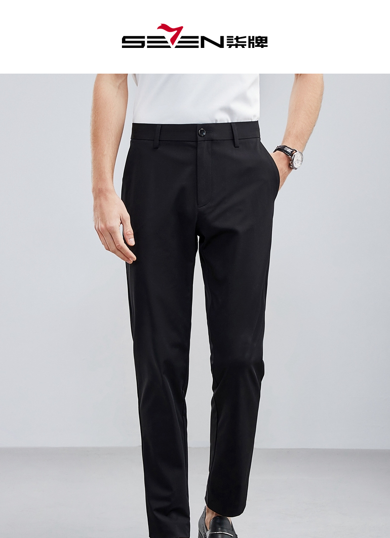 【薄荷纤维】柒牌休闲长裤男夏季新款凉感舒适黑色直筒男裤子 124H71260