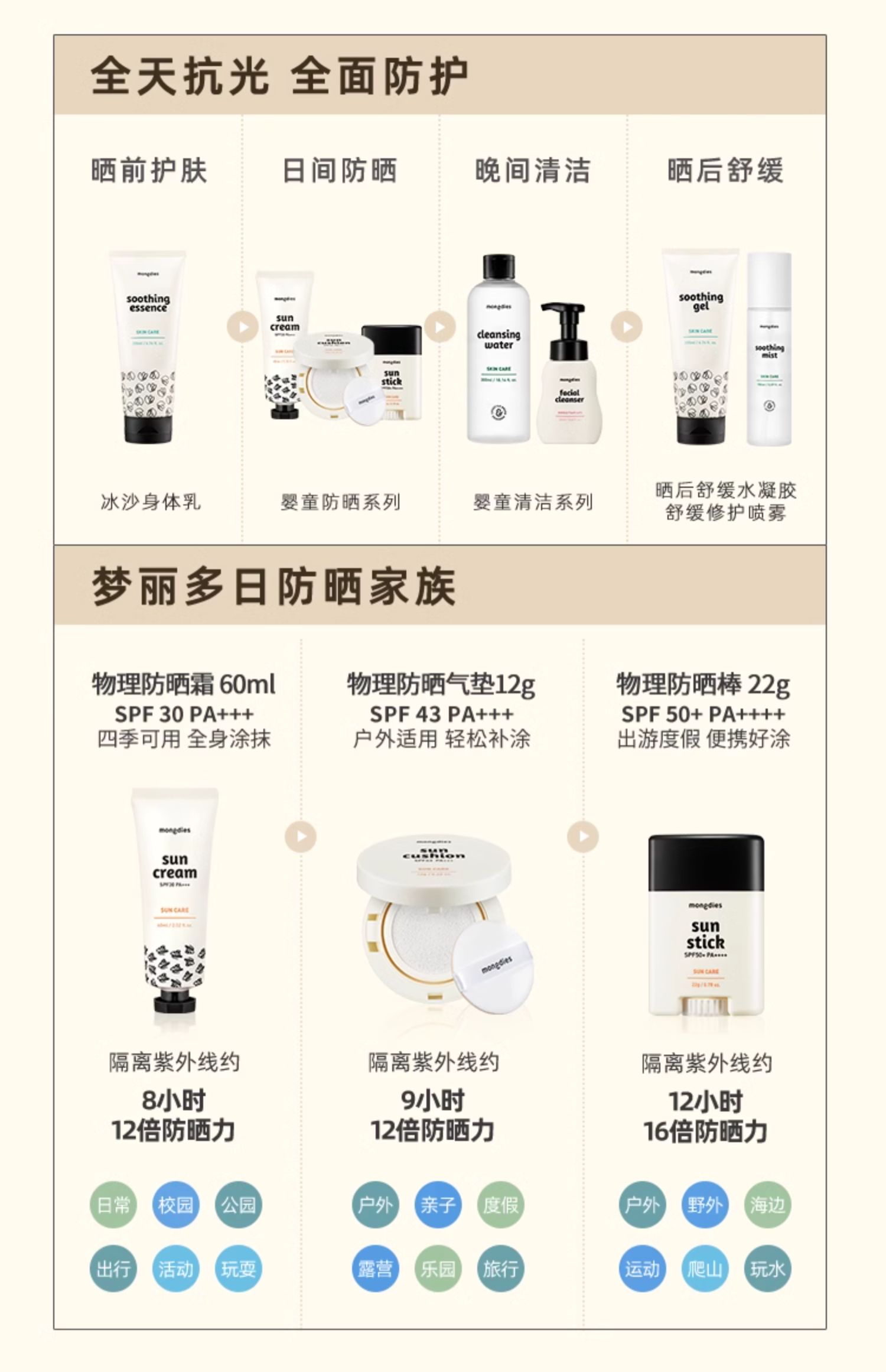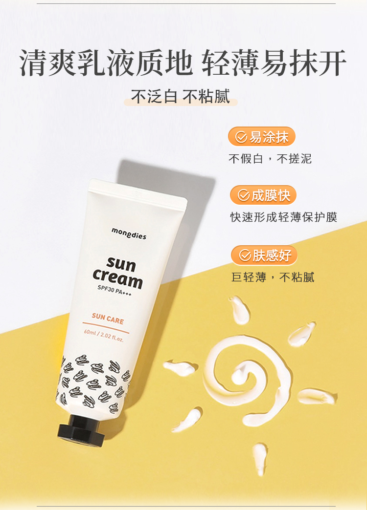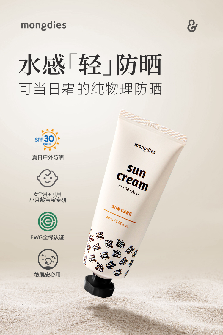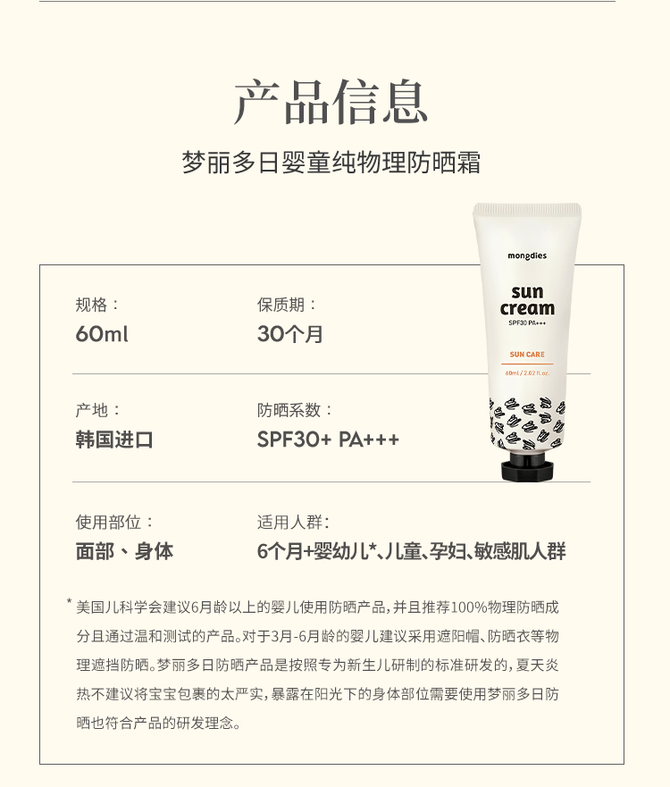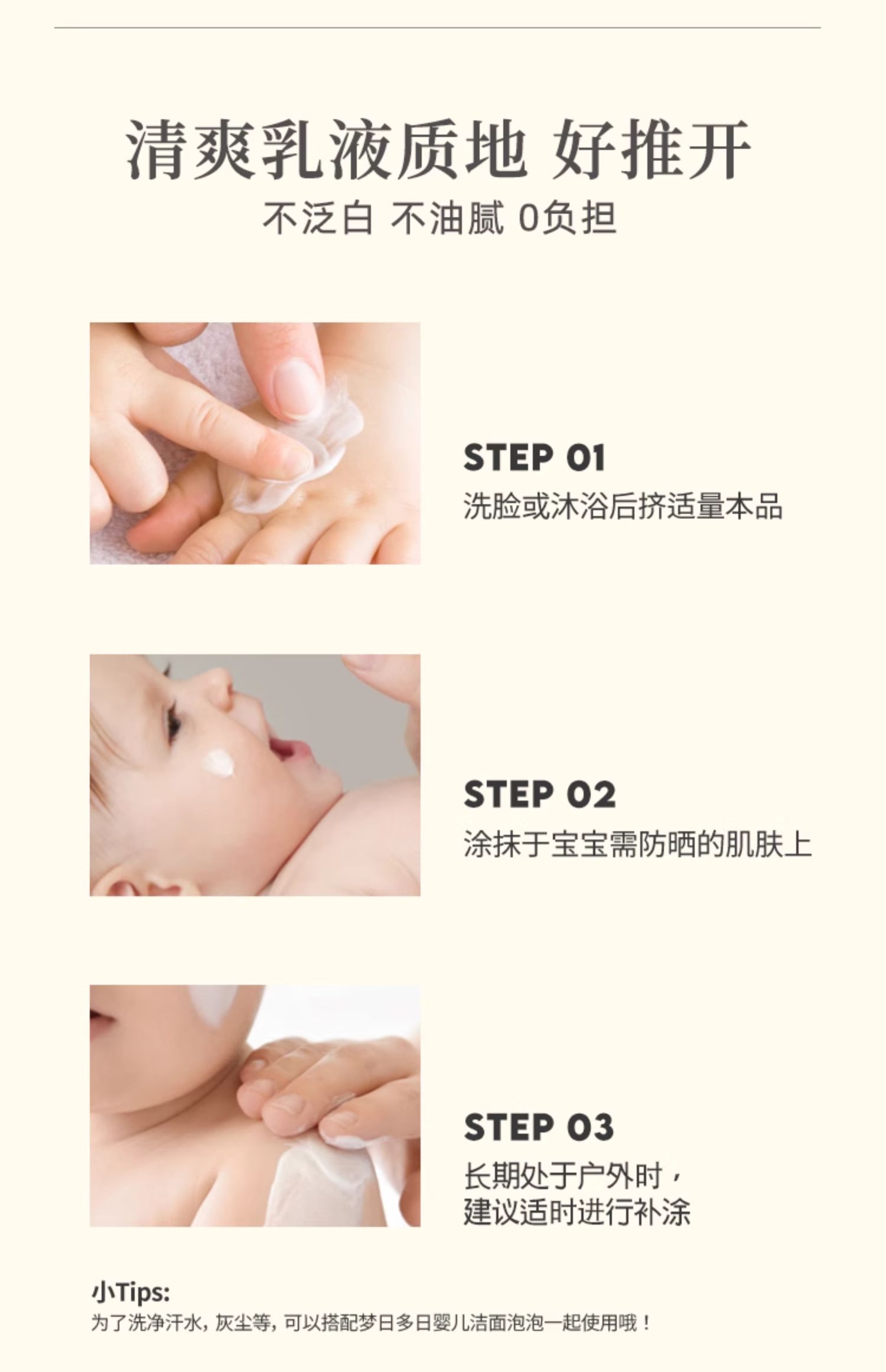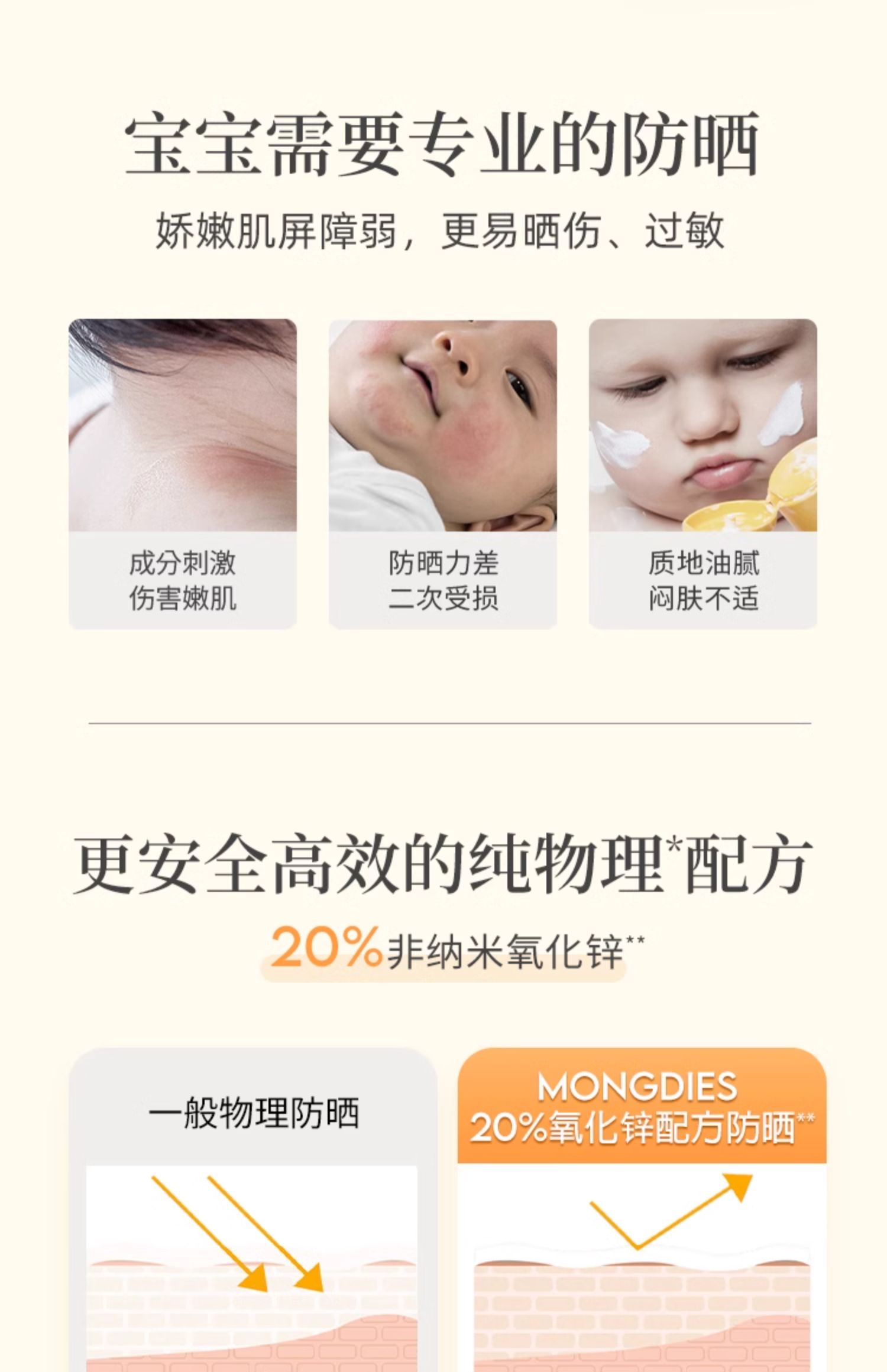 Mongdies梦丽多日3秒防晒霜 婴儿童纯物理防晒乳液 SPF30宝宝专用