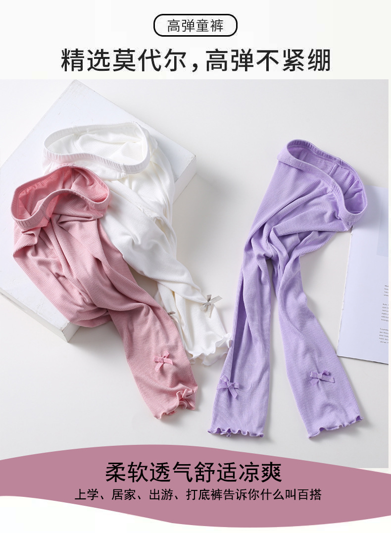 【夏季打底裤,精选莫代尔,高弹不紧绷】女童七分裤 夏季薄款打底裤 儿童莫代尔 宝宝百搭防蚊裤 夏天修身裤子 透气舒适凉爽-QQ