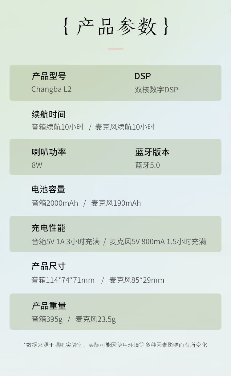 唱吧 迷你K歌音箱 L2 蓝牙无线表克风音响一体机(双麦版)