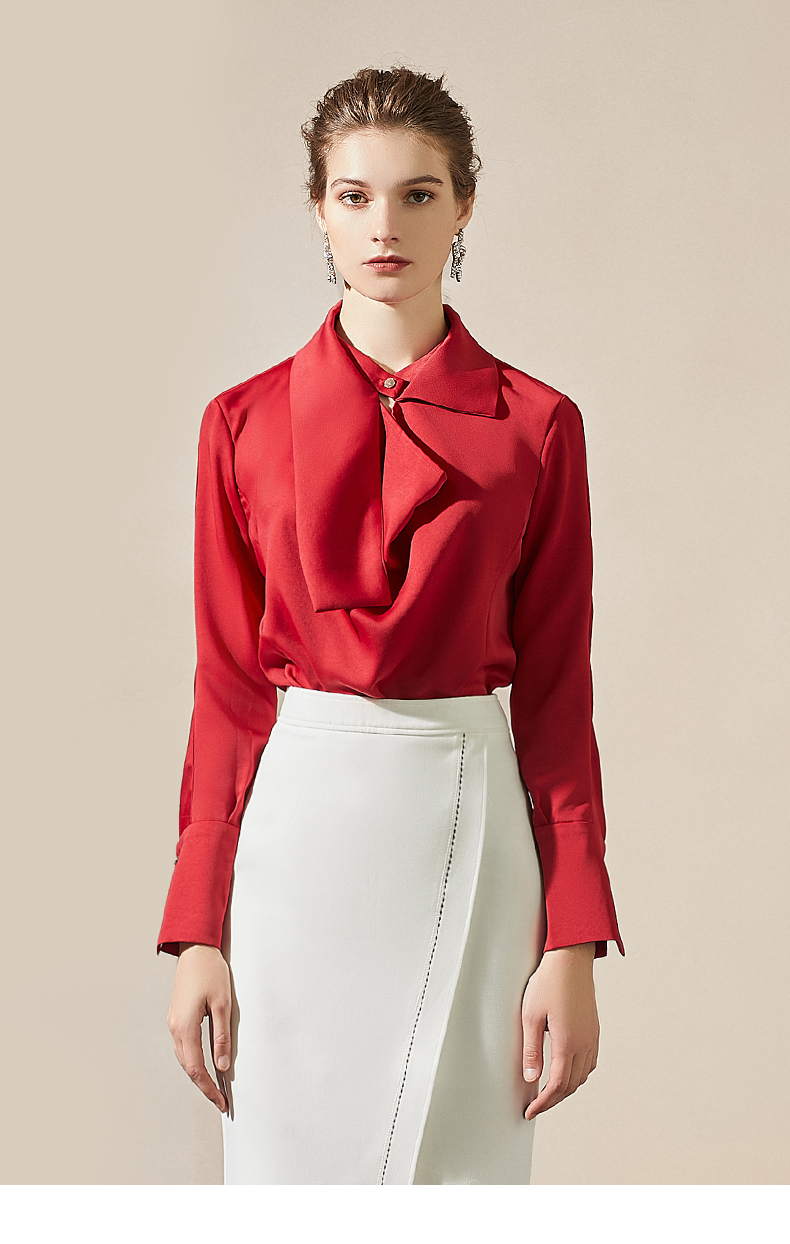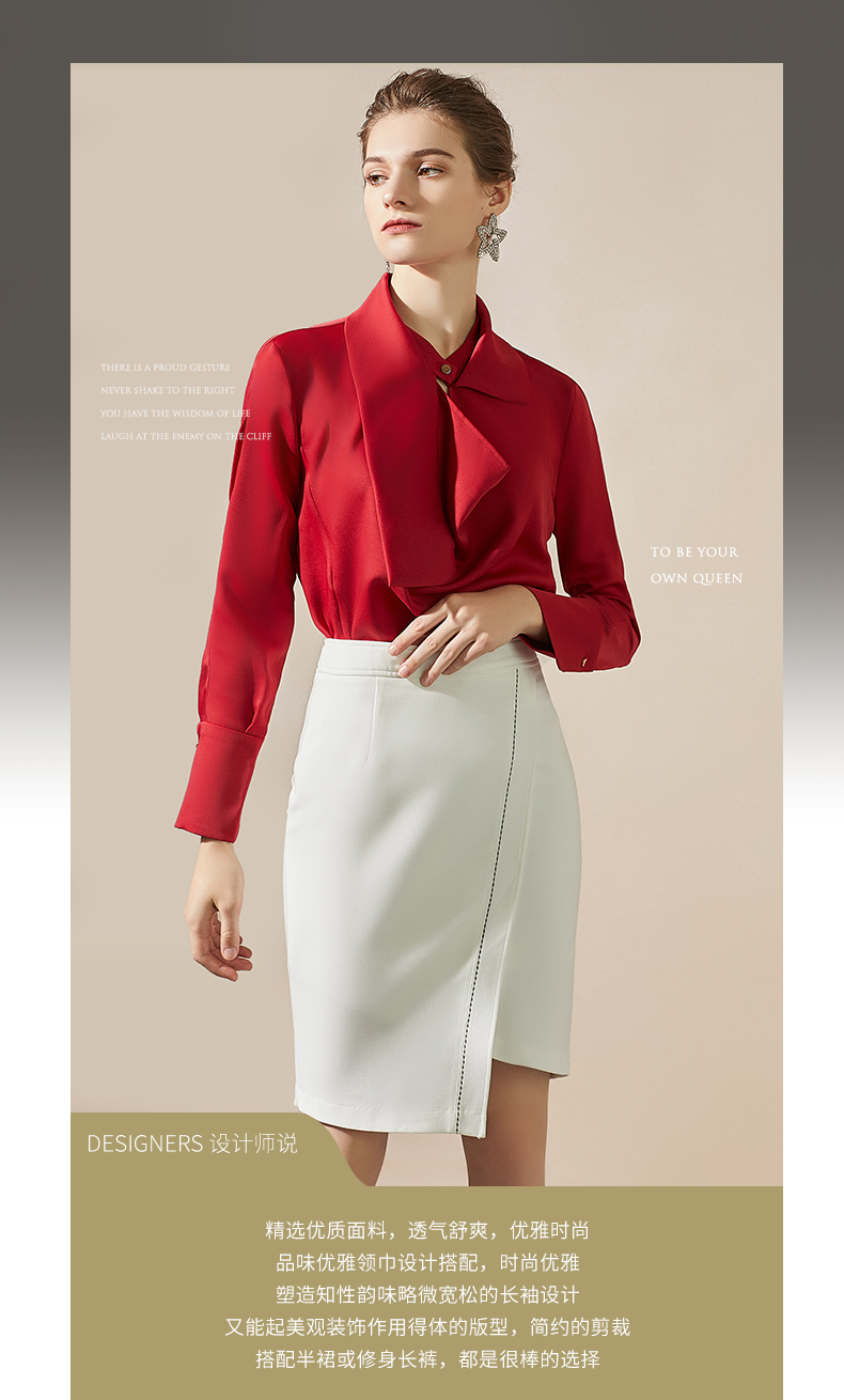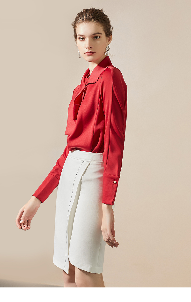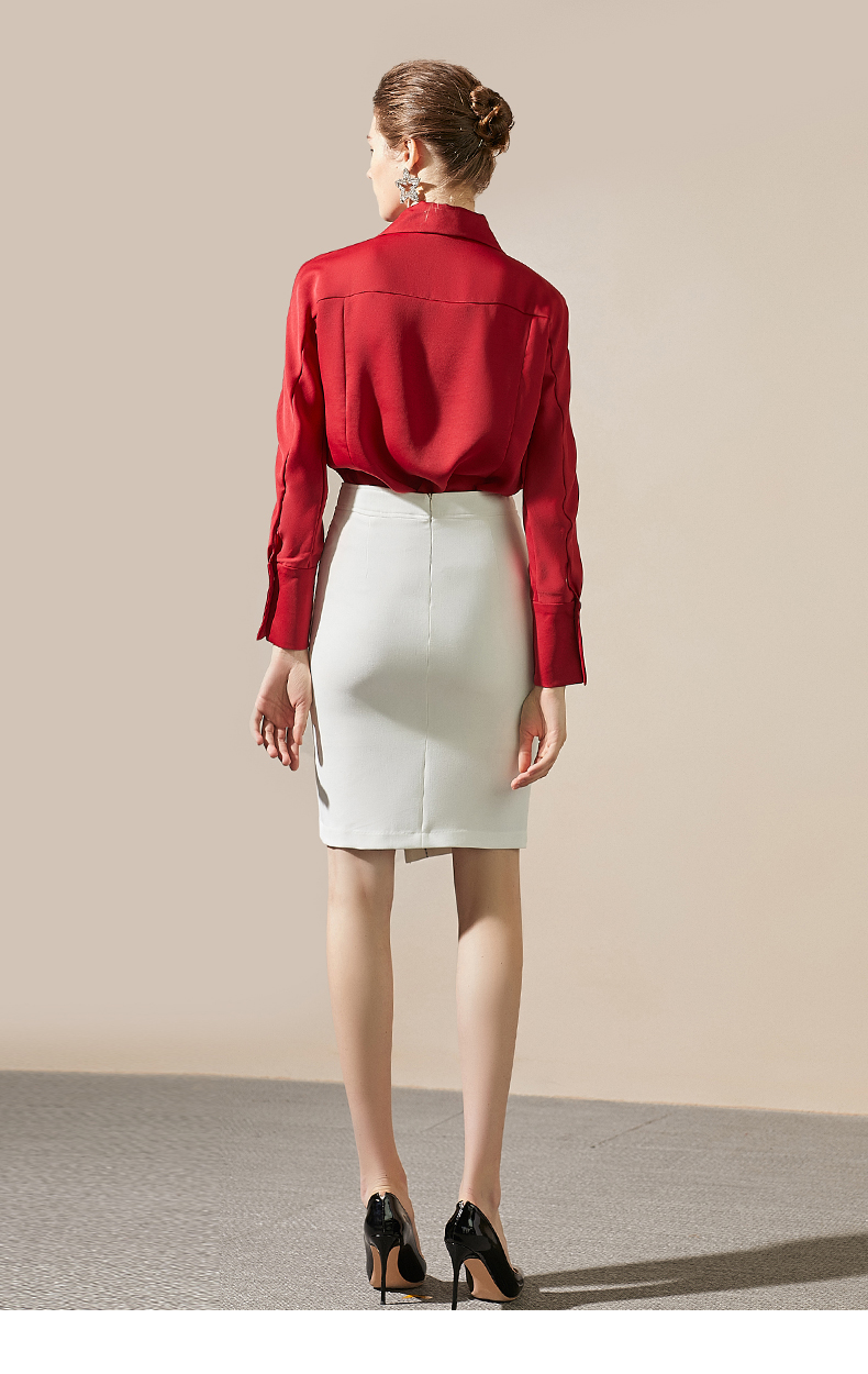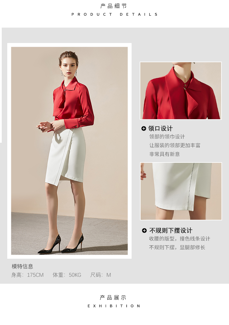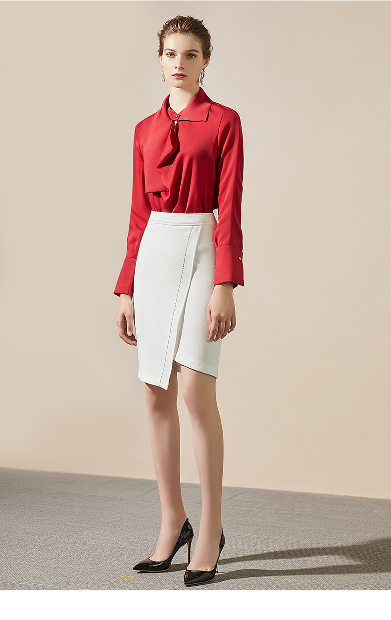 IWY/修身红色衬衫女长袖套头红衬衣职业装ol上衣女打底衫白色半裙3B18311+S8308
