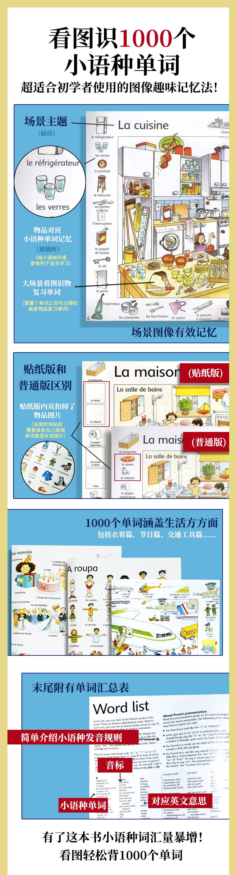 📎书后还附有英文+小语种对照词汇表,同时还简单介绍了每个小语种的发音规则,方便大家了解每个单词的意思,进而牢牢掌握初学小语种1000词,为以后的小语种学习打下坚实的基础。