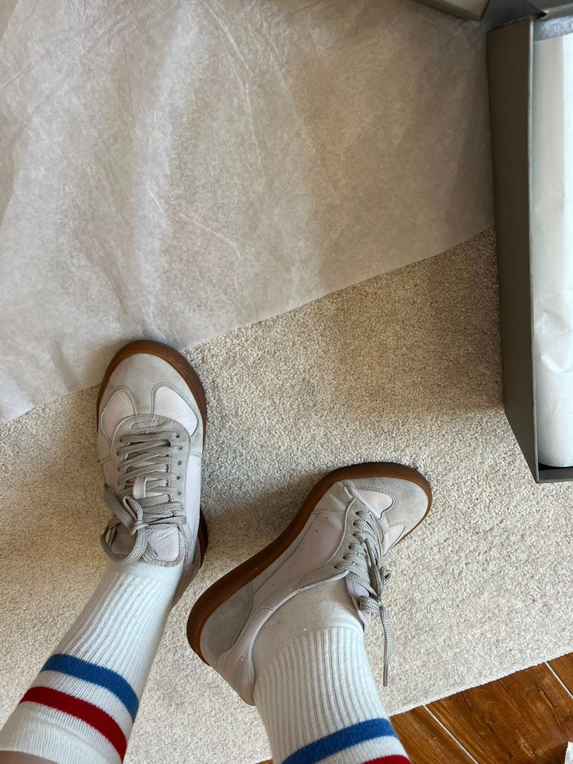 整个色调都是冷淡高级,温和含蓄,全皮鞋垫,踩下去QQ回弹,这才是手工鞋的踩shi感觉,亲肤度一定超过运动鞋的。