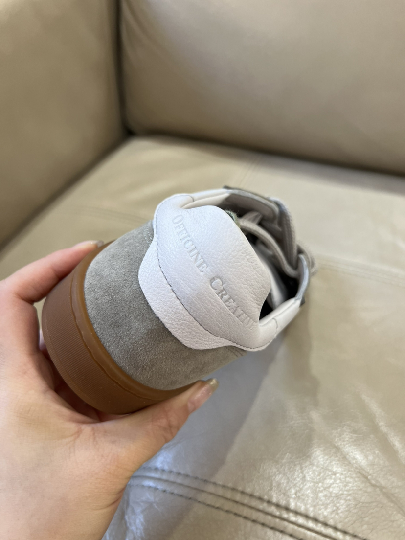 off高端手工德训鞋,可能是你穿过醉舒适得德训鞋,脚感拿捏得死死得,麂皮拼接小牛皮,手工攀楦,特殊蹂躏的皮质,整个脚面软糯如斯,整个鞋面跟纯橡胶大底,用的是空胶工艺,所以你闻不到一丝丝胶水的以为。上脚轻,柔,软,弹。舒适到完全不想换别的鞋子。