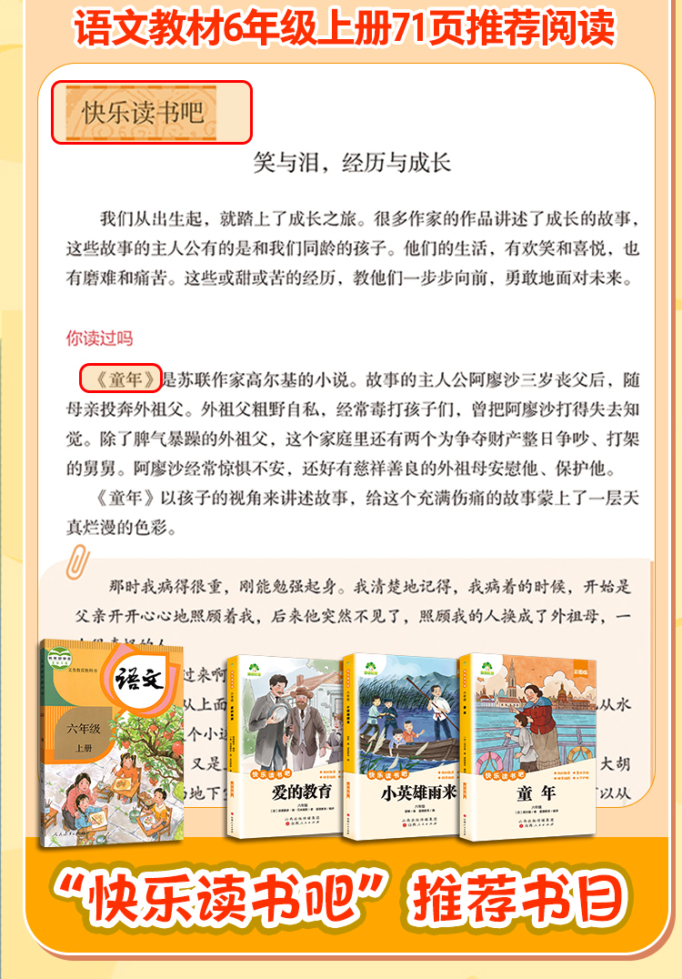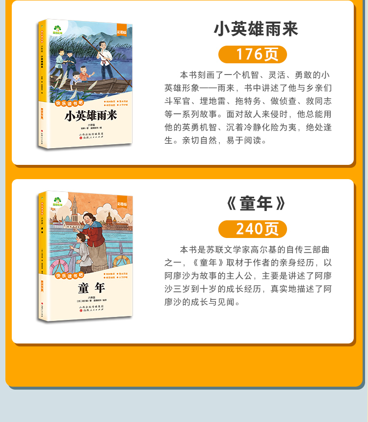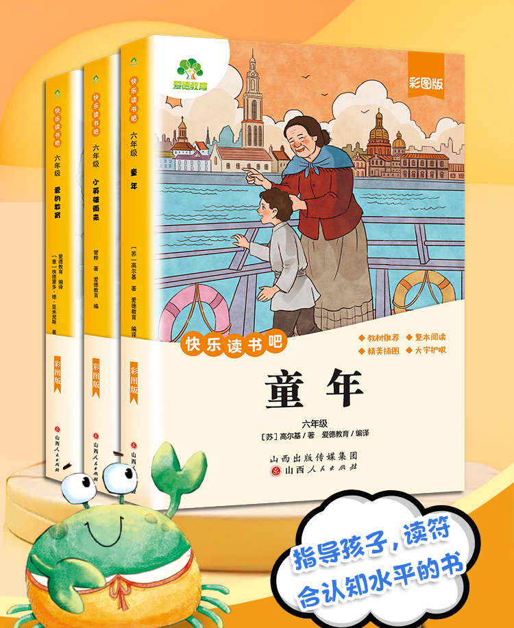 爱德少儿 快乐读书吧六年级 全套3册小英雄雨来童年爱的教育6上必读课外书目小学生部编人教版语文老师推荐经典阅读名著书籍