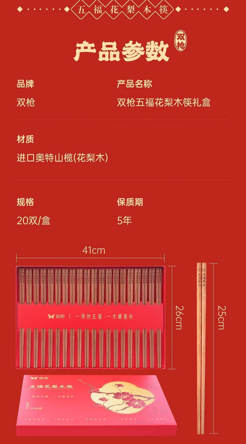 双枪五福梨花木礼盒筷子 进口花梨木 无漆无蜡 天然木香 新年用福筷添福气
